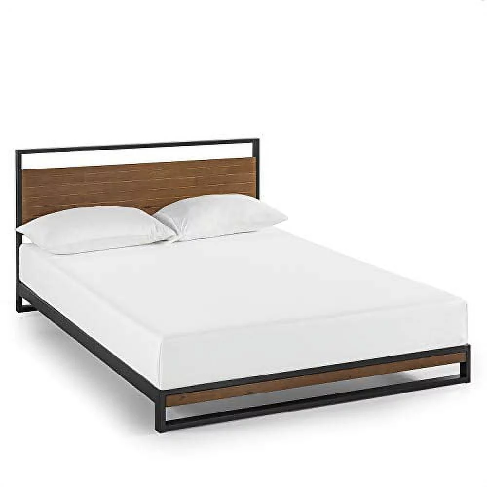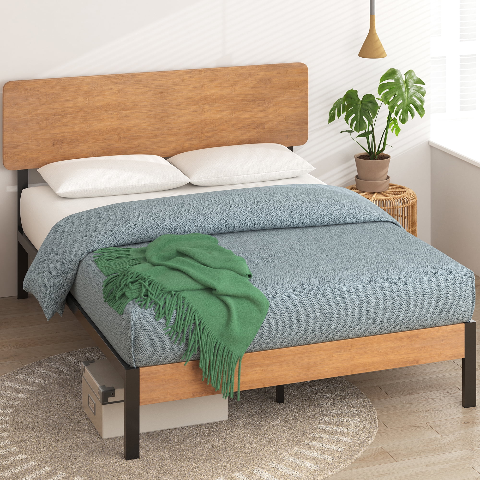 Zinus Suzanne 39" Bamboo and Metal Platform Bed Frame with Shelf and USB Ports, Adult, Queen