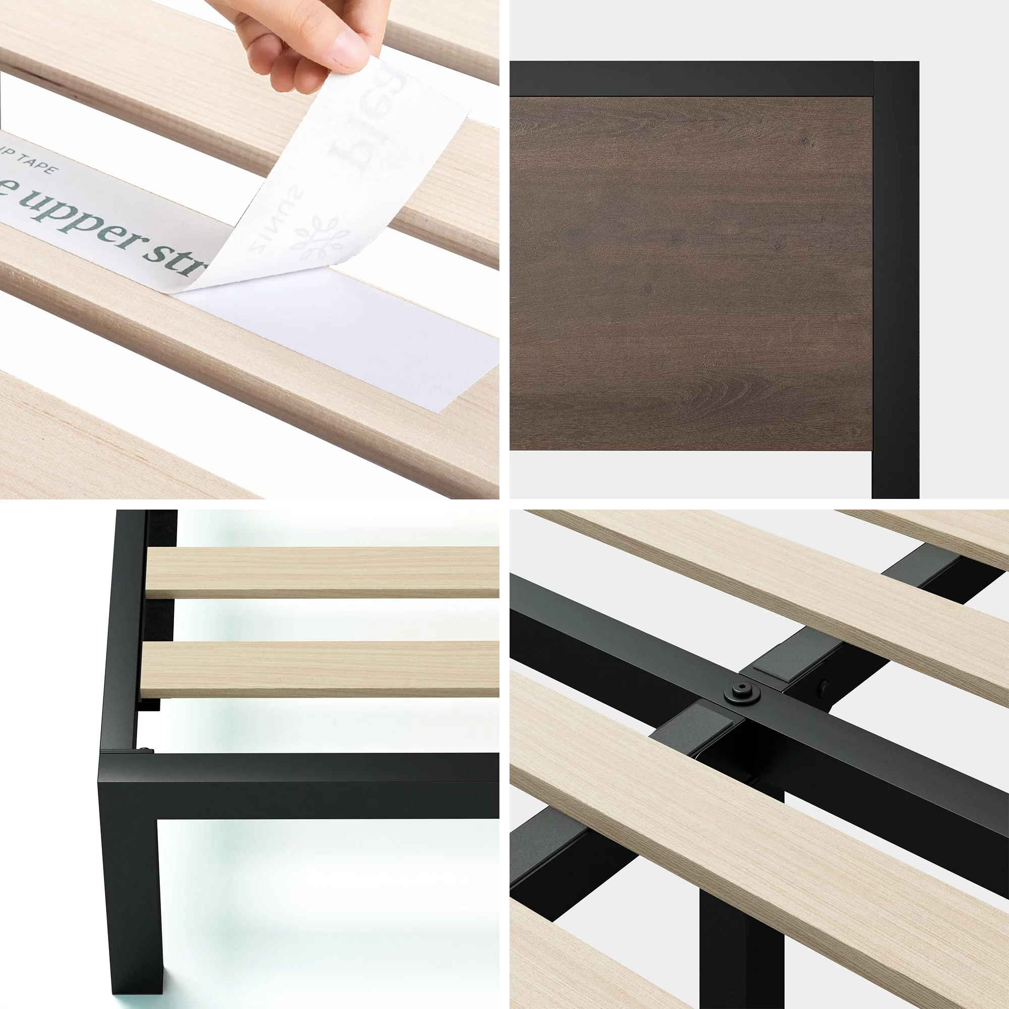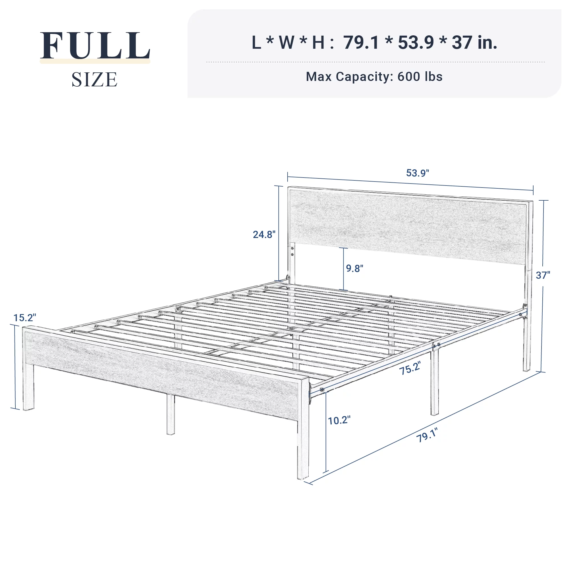 Allewie Full Size Heavy Duty Bed Frame with Black Oak Headboard, Engineered Wood, 12'' Under Bed Storage