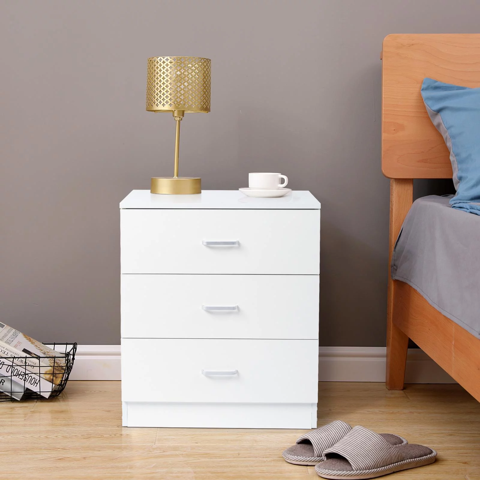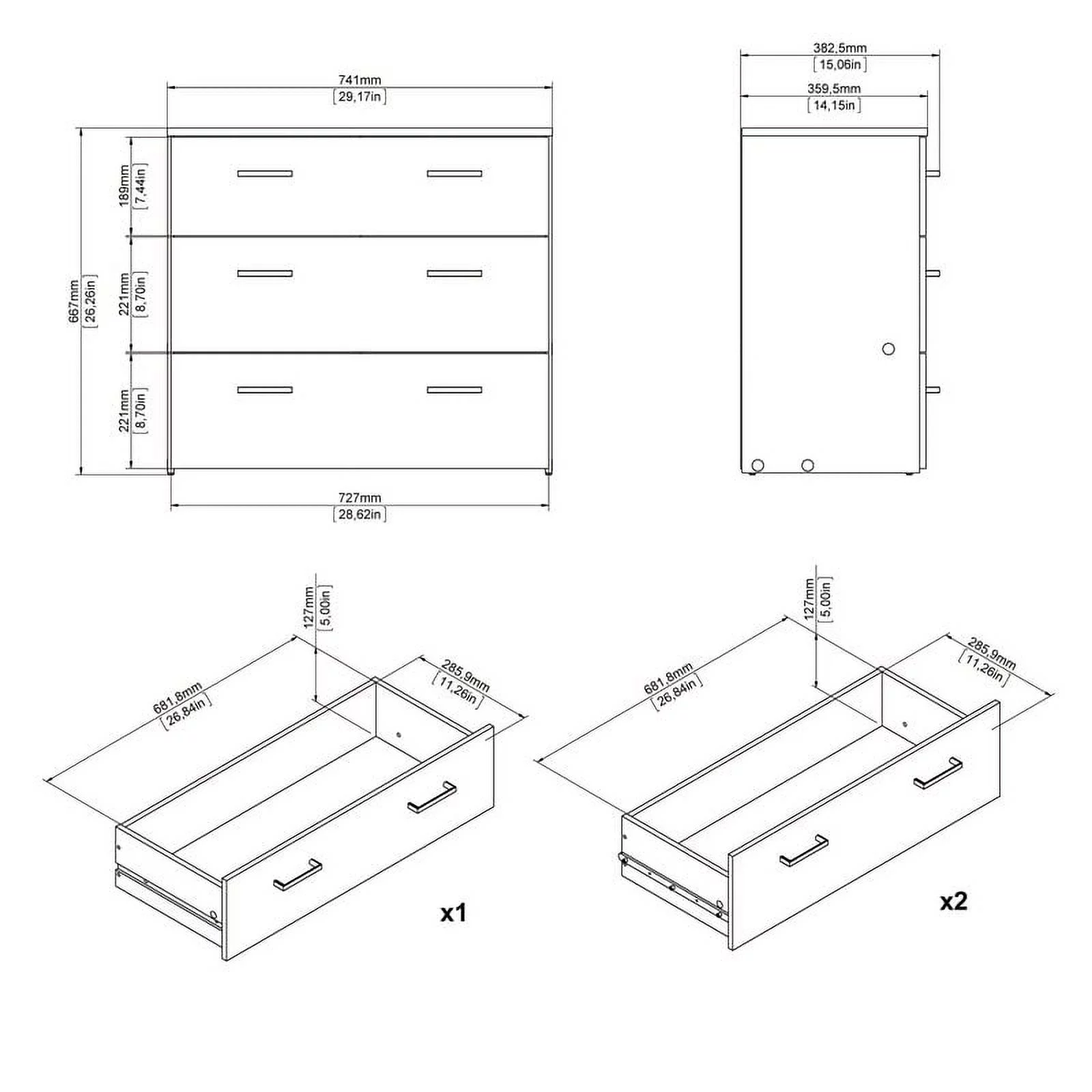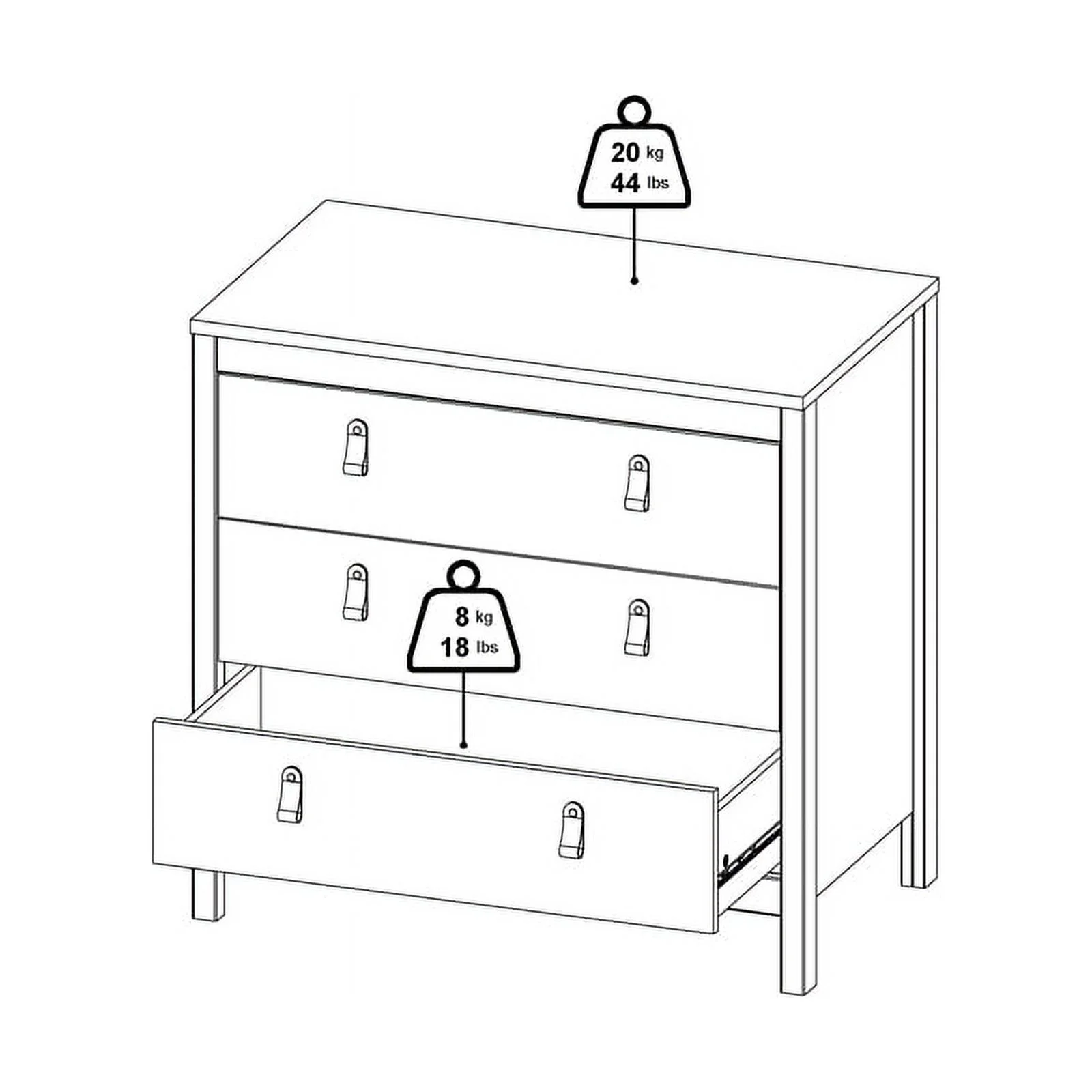 Furinno Tidur Simple Design 3-Drawer Dresser with Handle, French Oak Grey