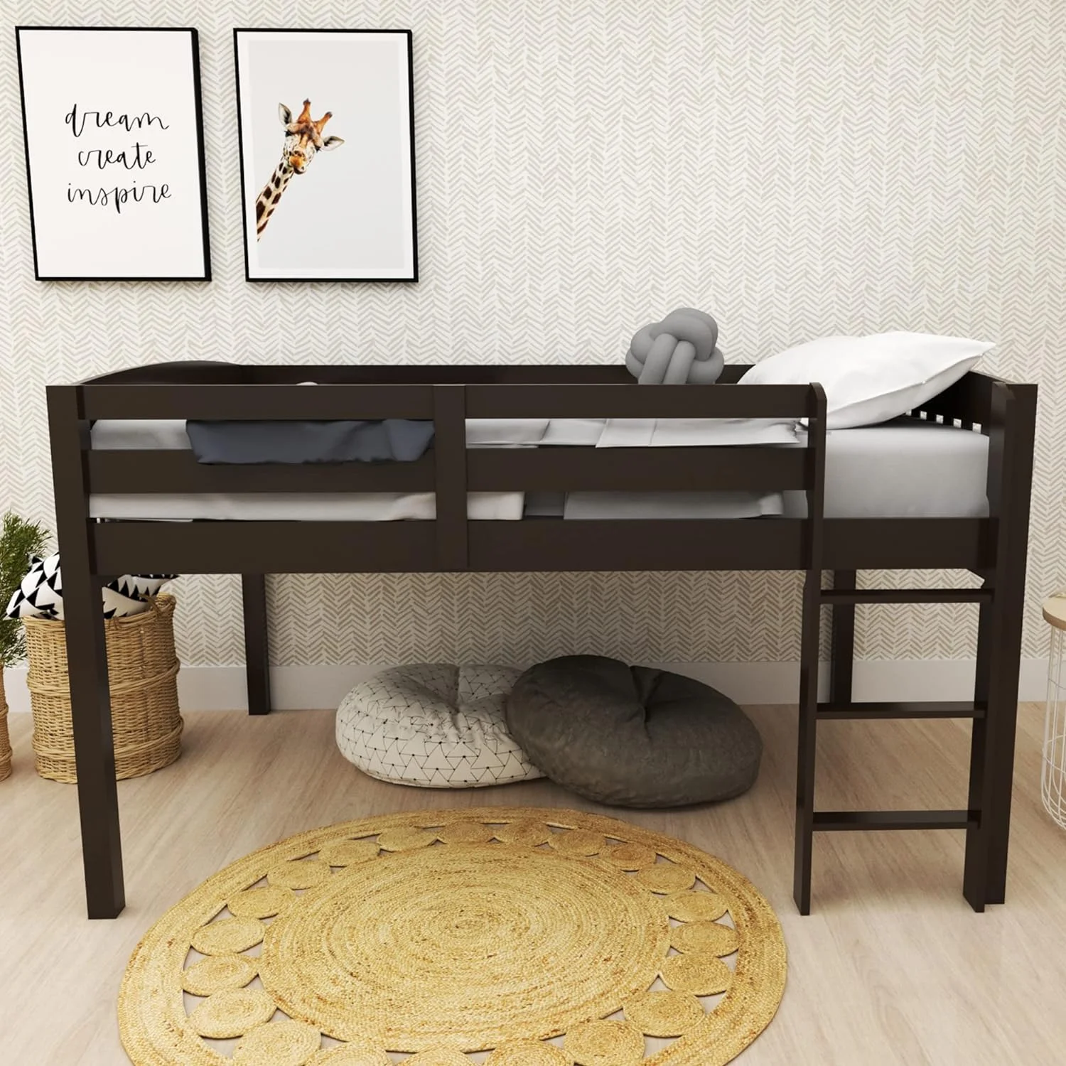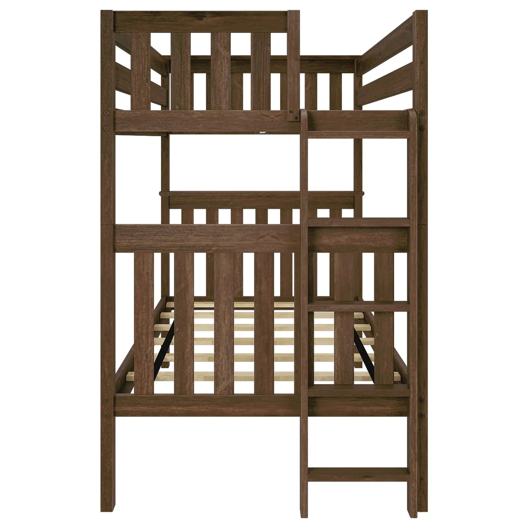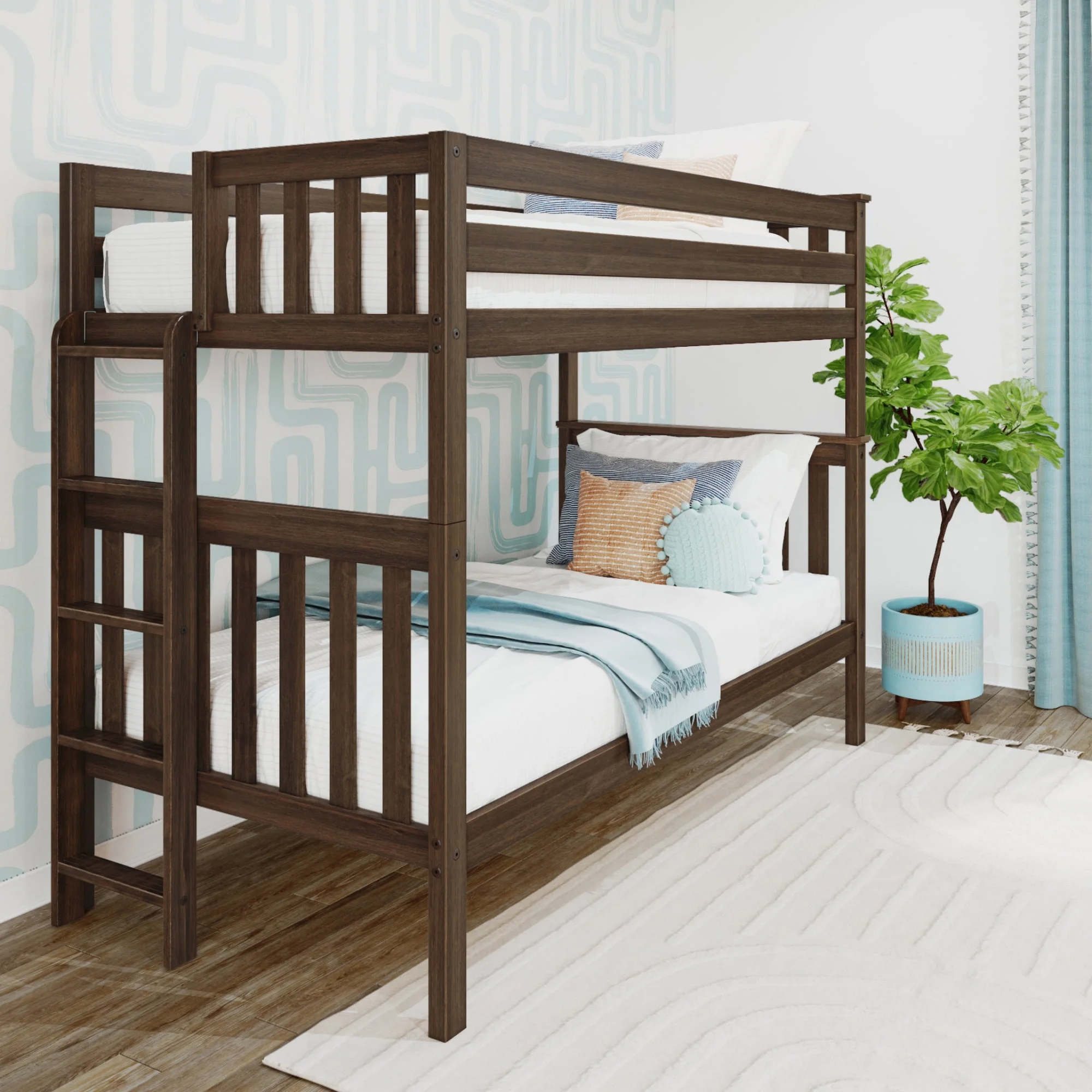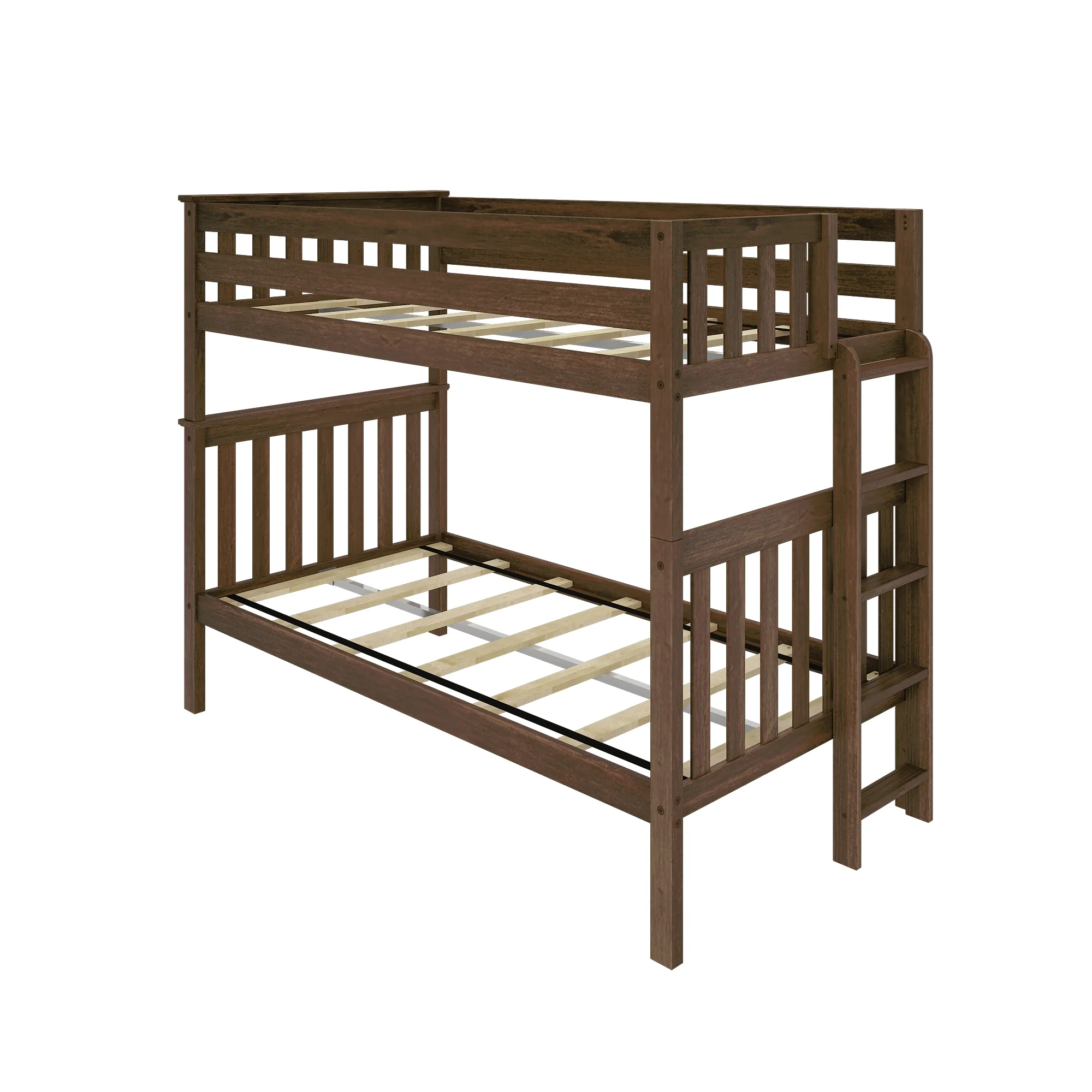 Max & Lily Twin over Twin Bunk Bed with Ladder on End For Kids, Walnut