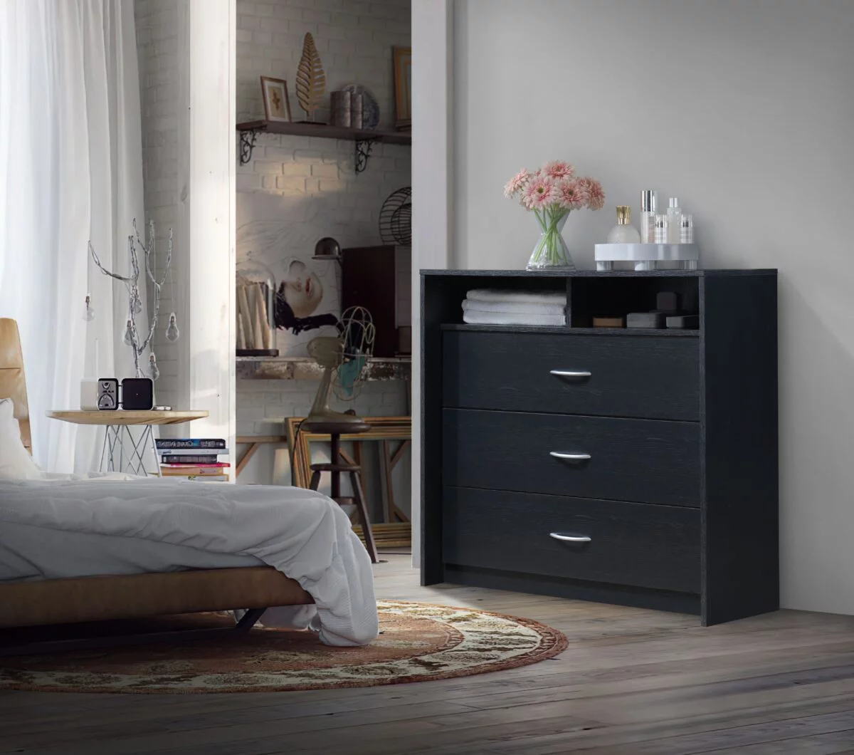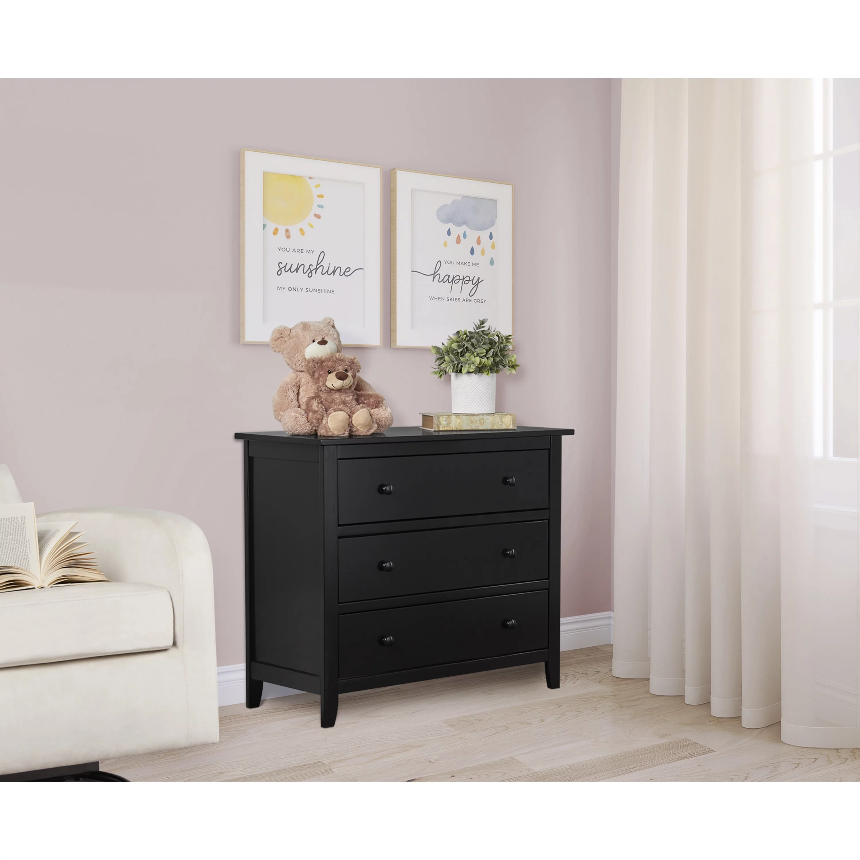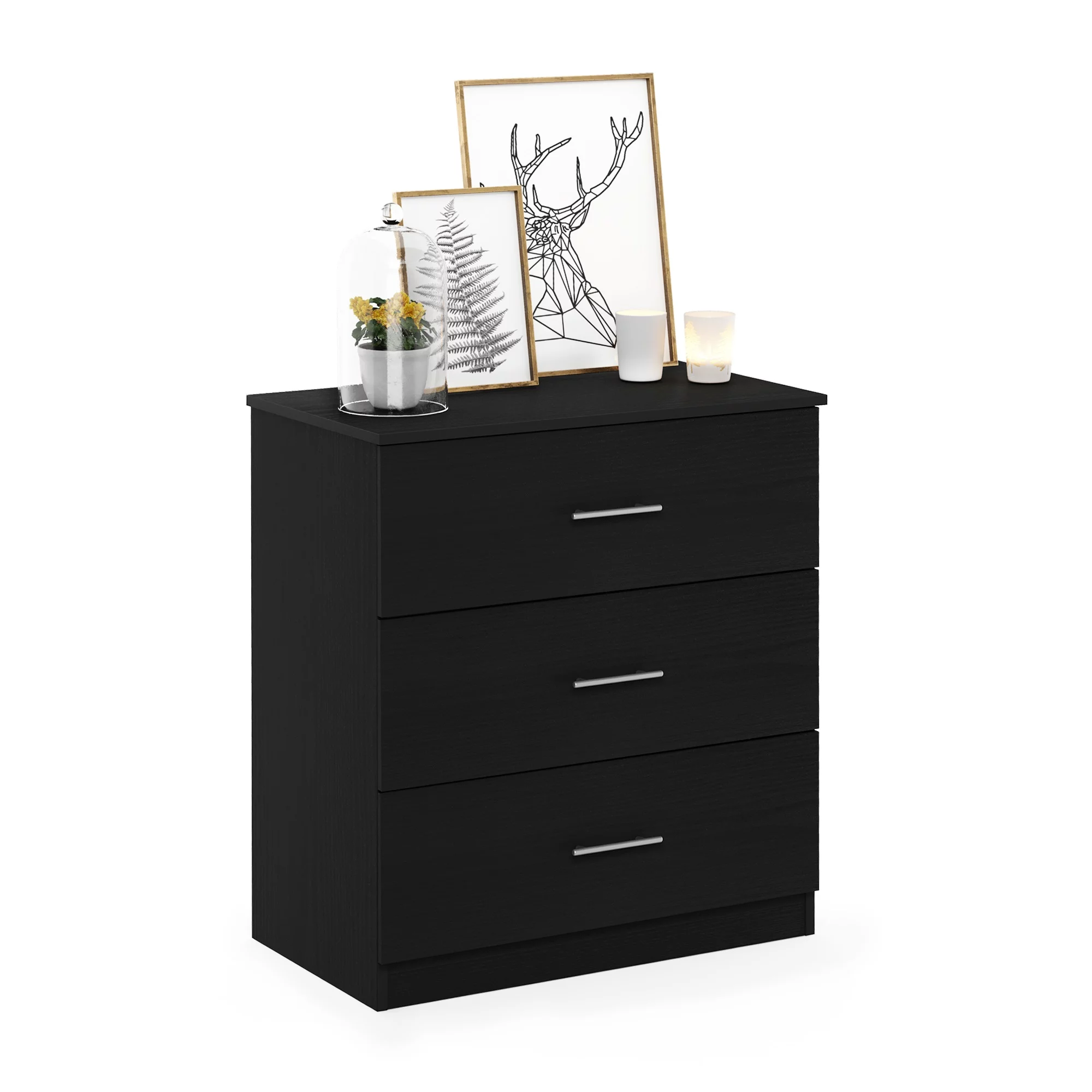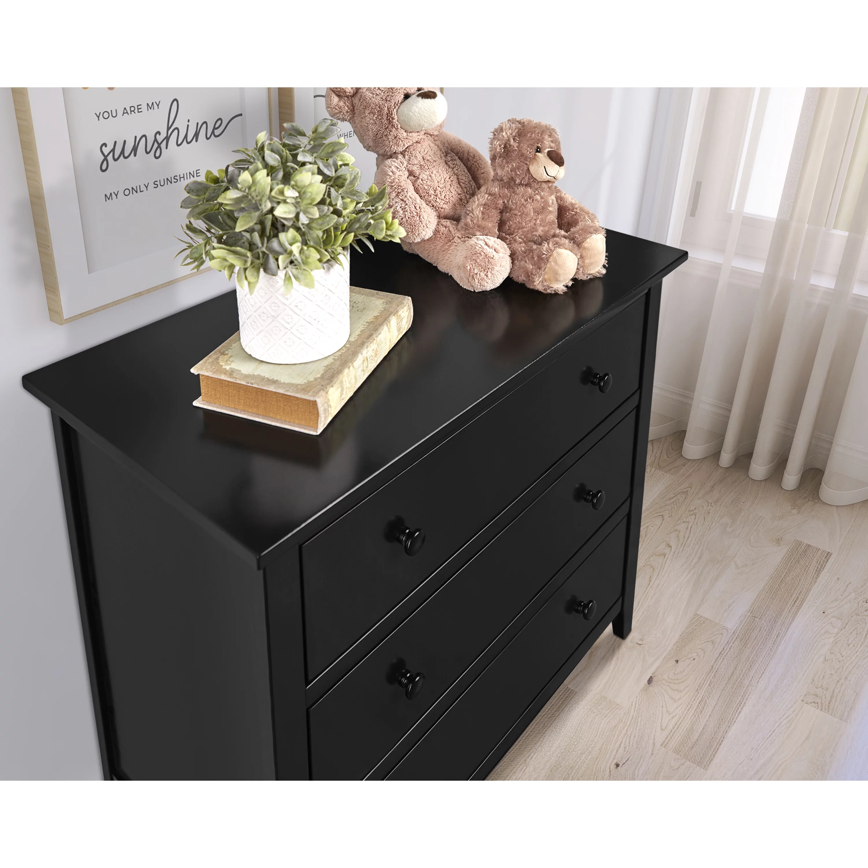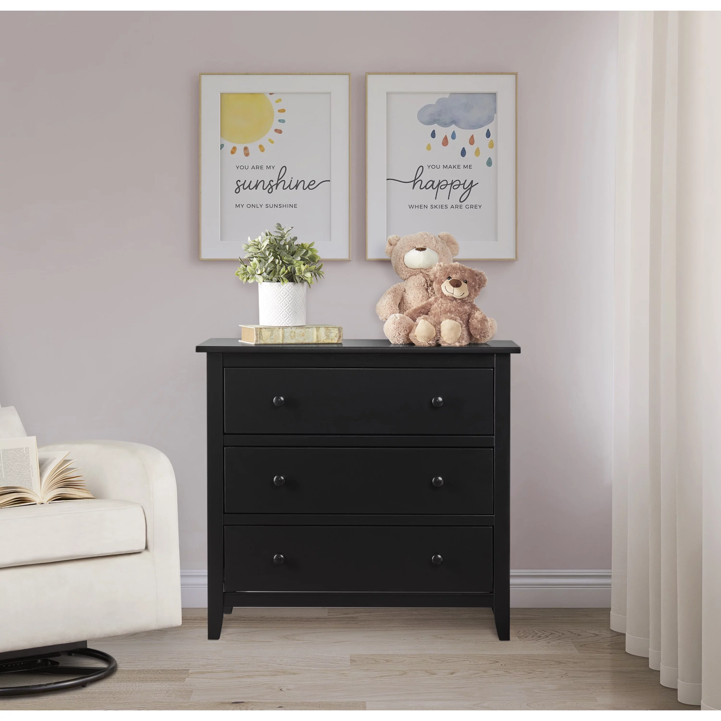 Farmhouse Basics 3 Drawer Chest in Rustic Black by OSP Home Furnishings