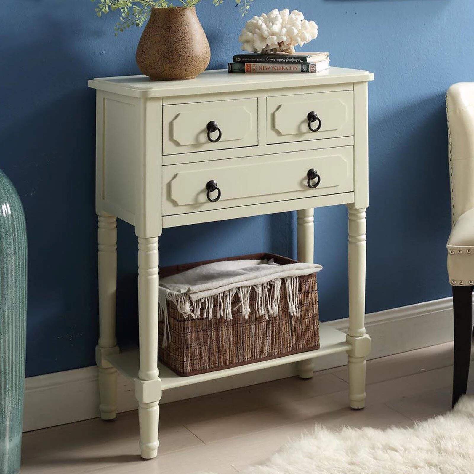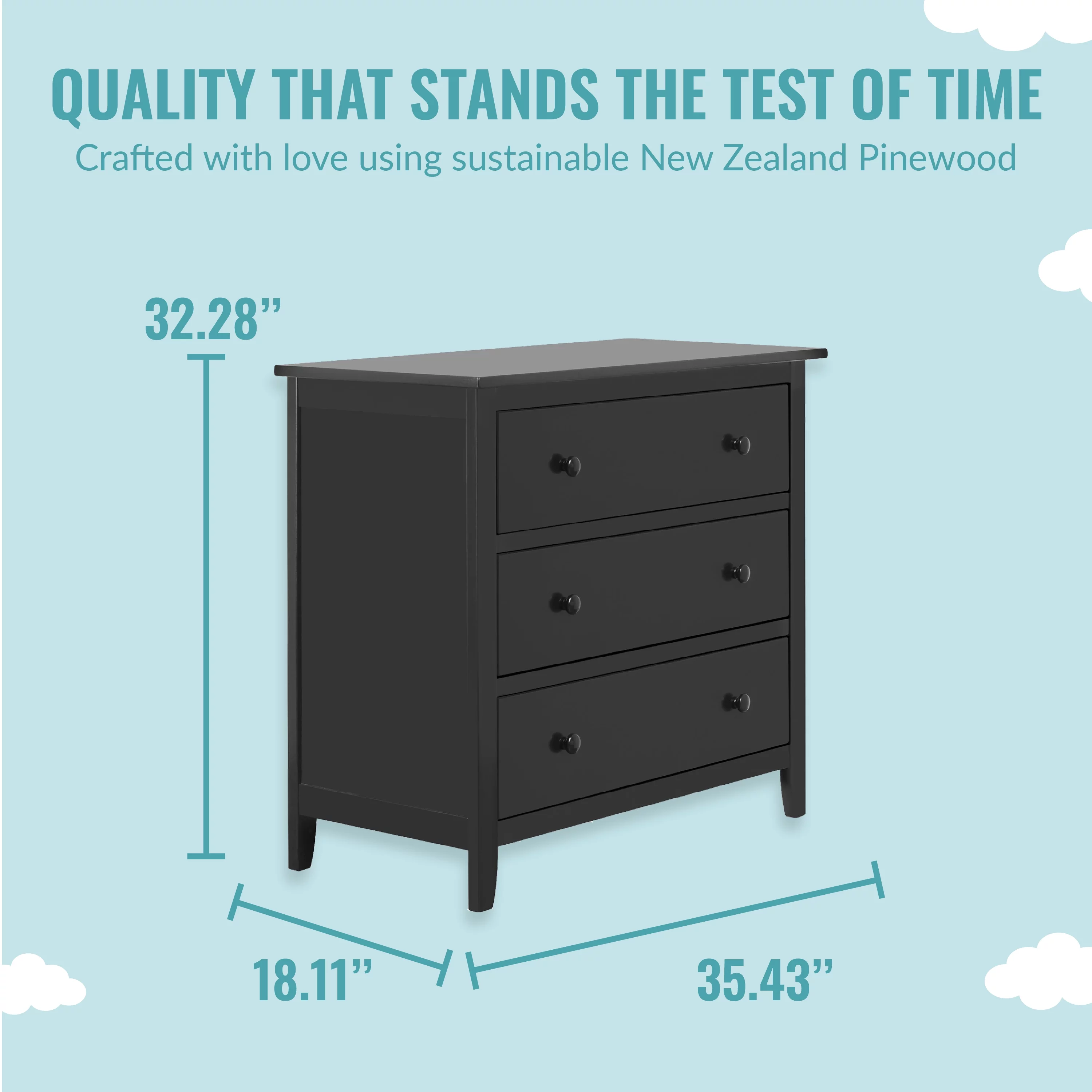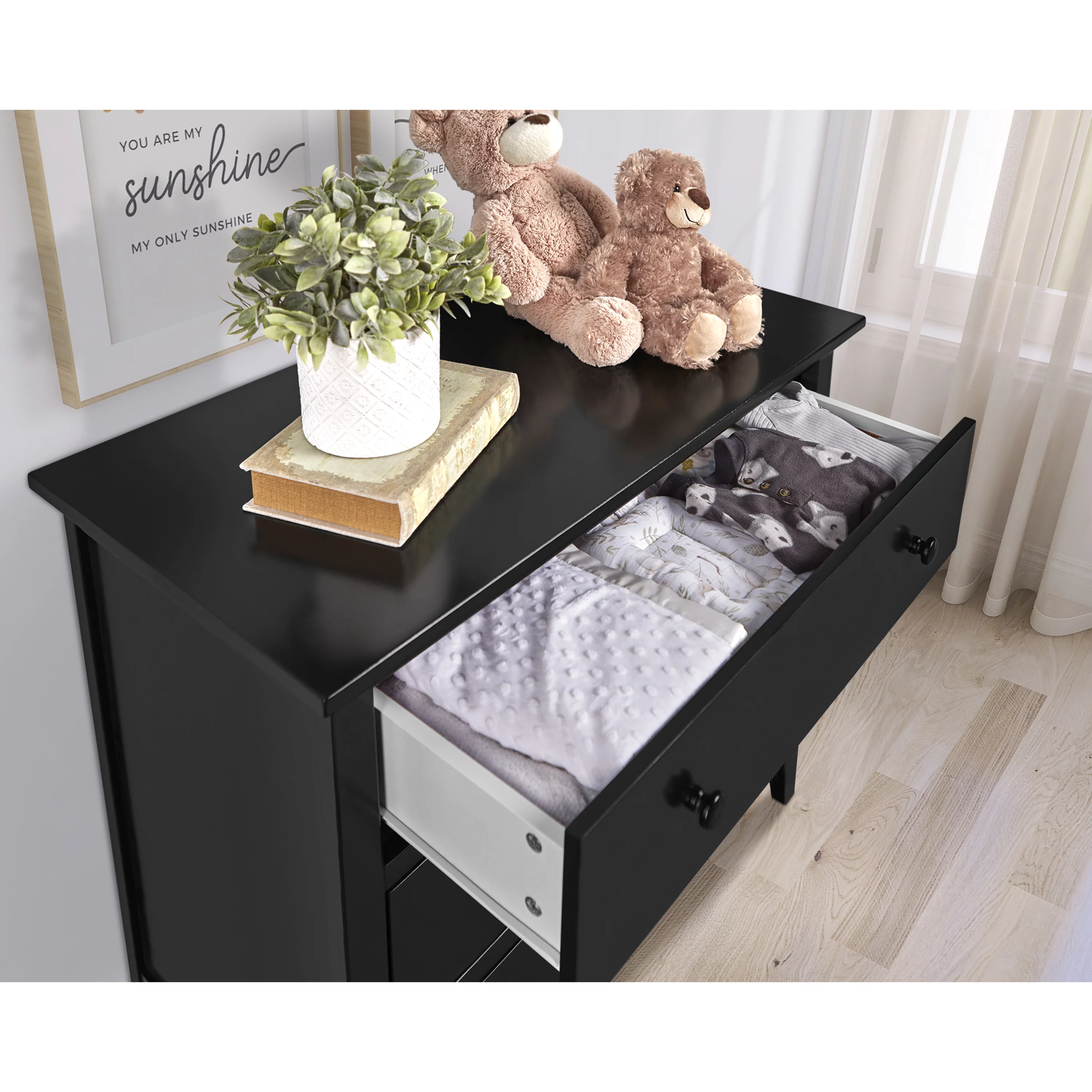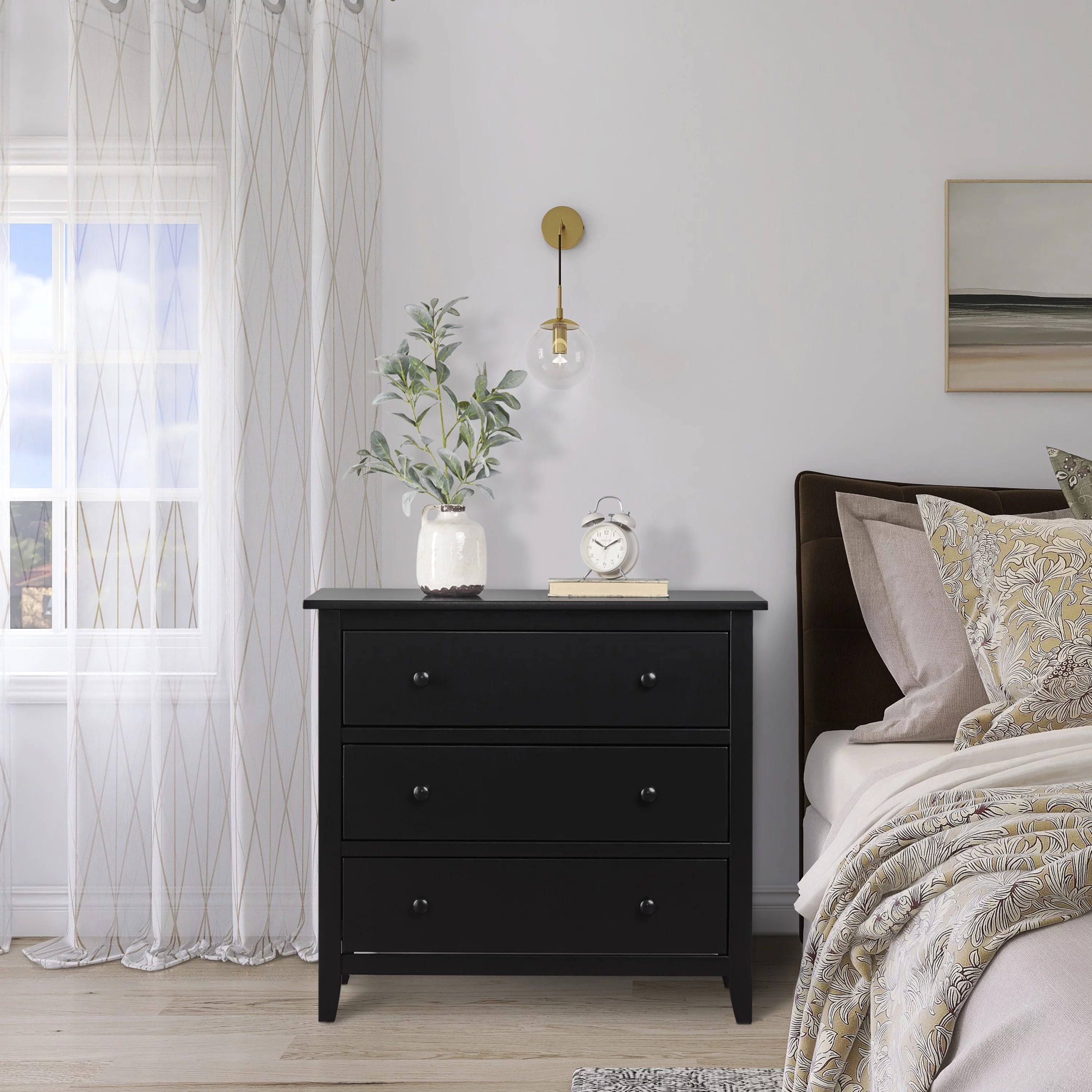 Farmhouse Basics 3 Drawer Chest in Rustic Black by OSP Home Furnishings
