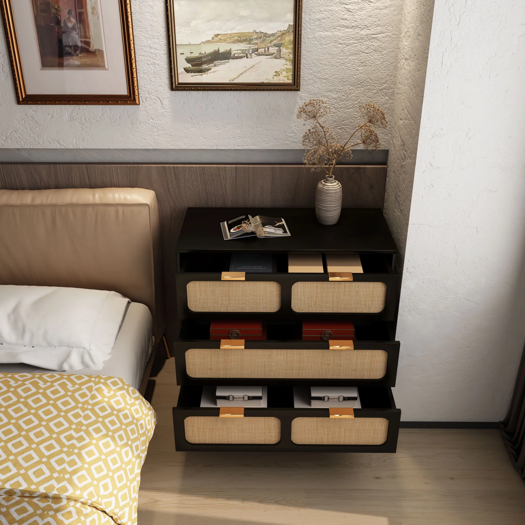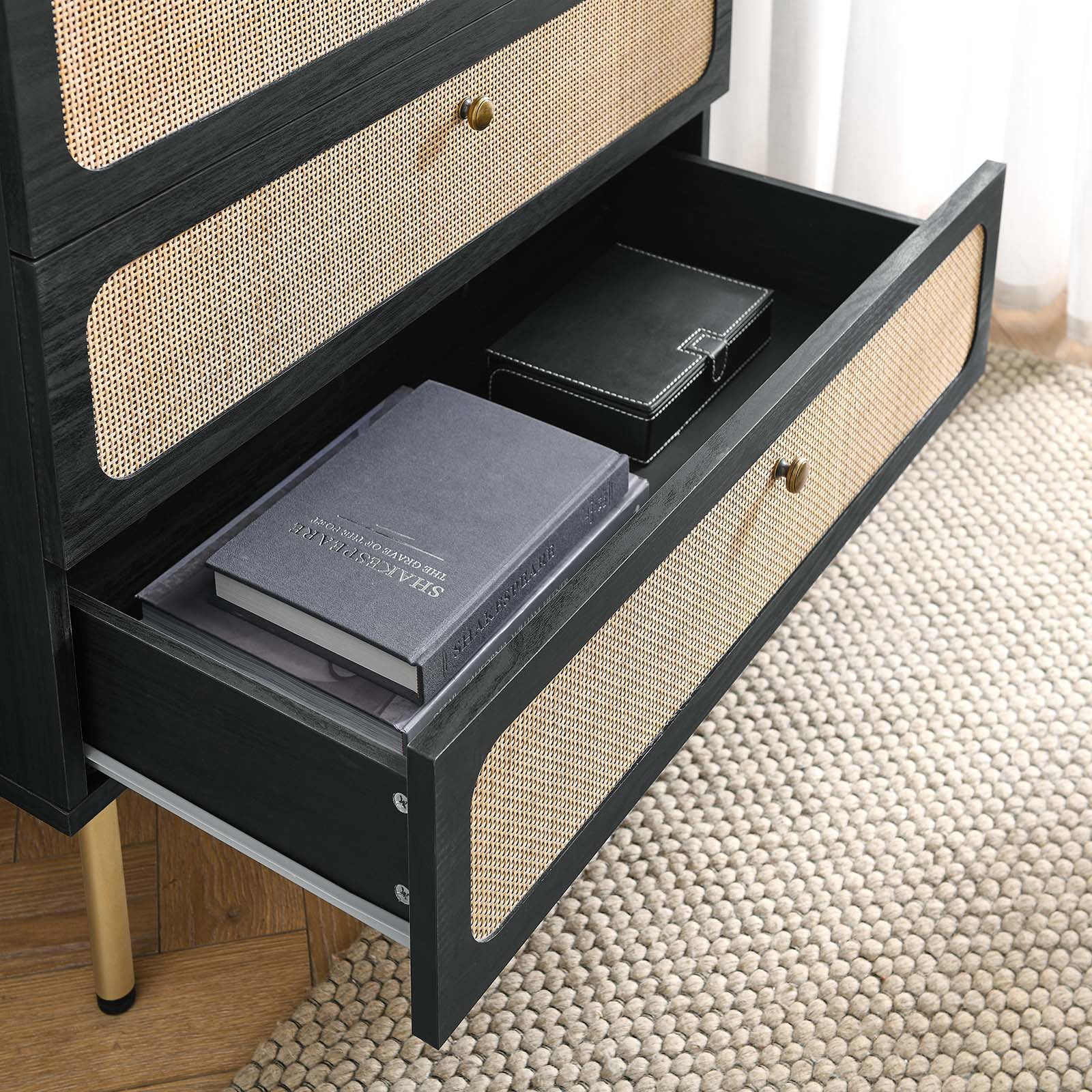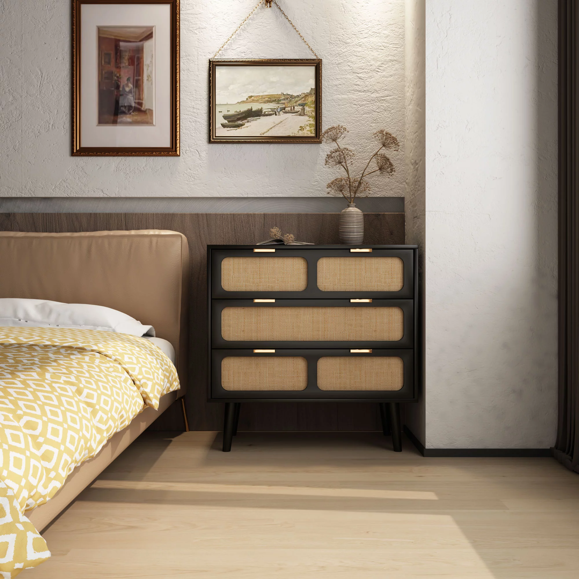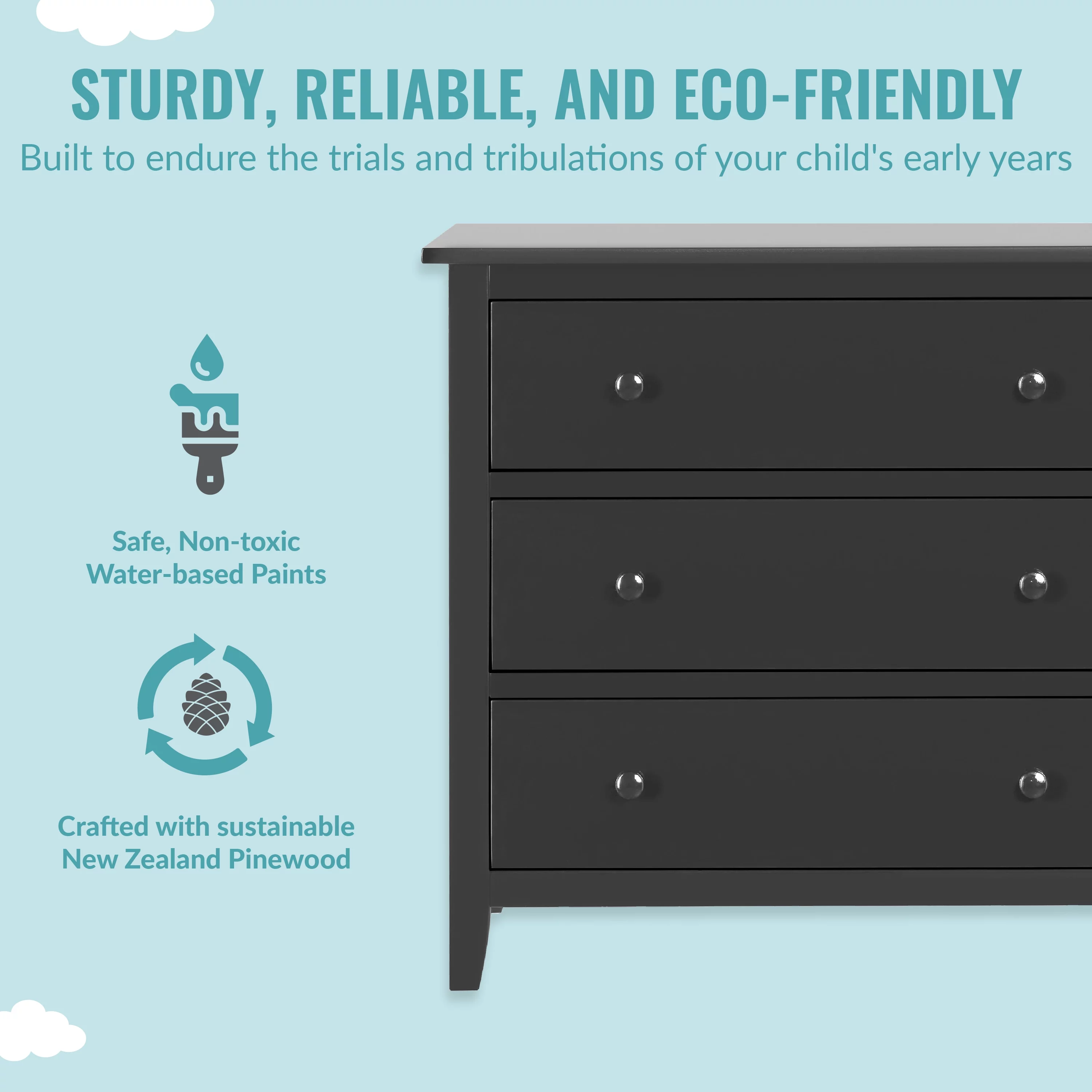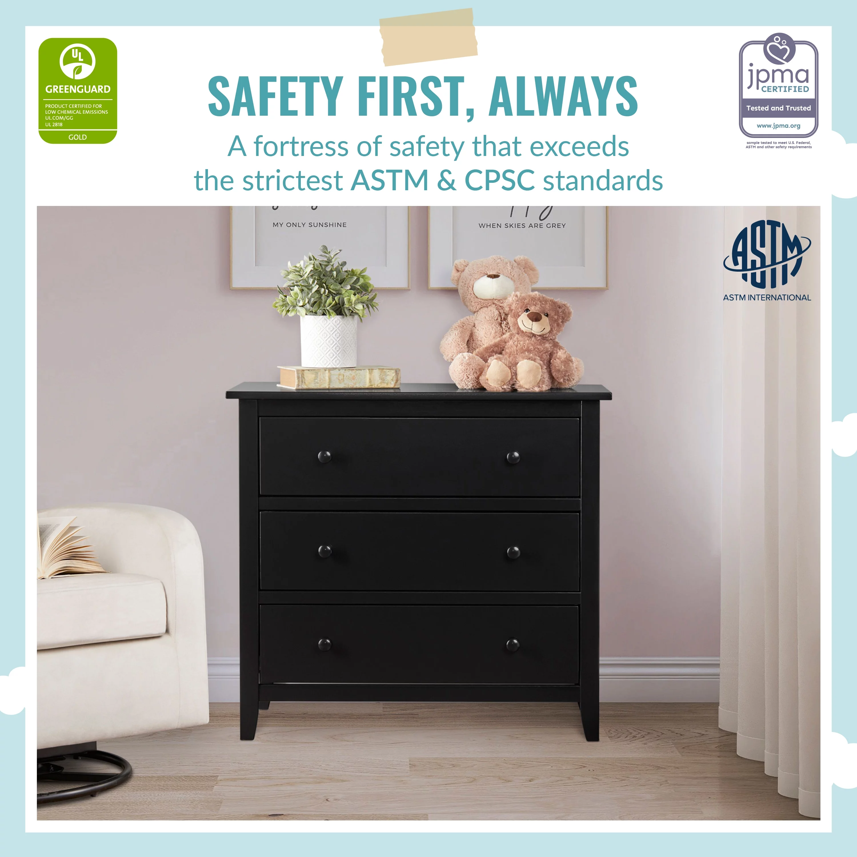 Farmhouse Basics 3 Drawer Chest in Rustic Black by OSP Home Furnishings