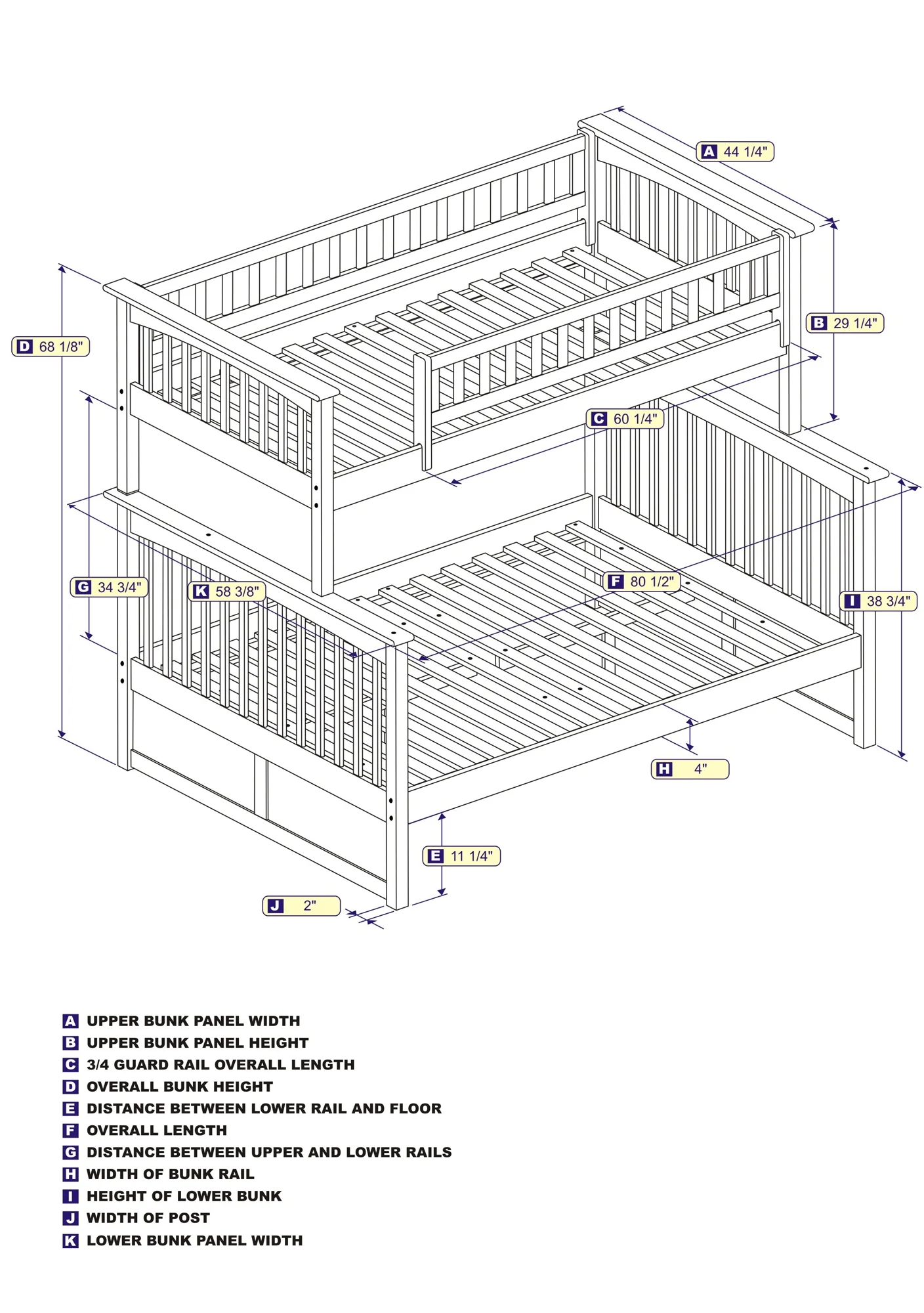Columbia Bunk Bed Twin over Twin in Multiple Colors and Configurations