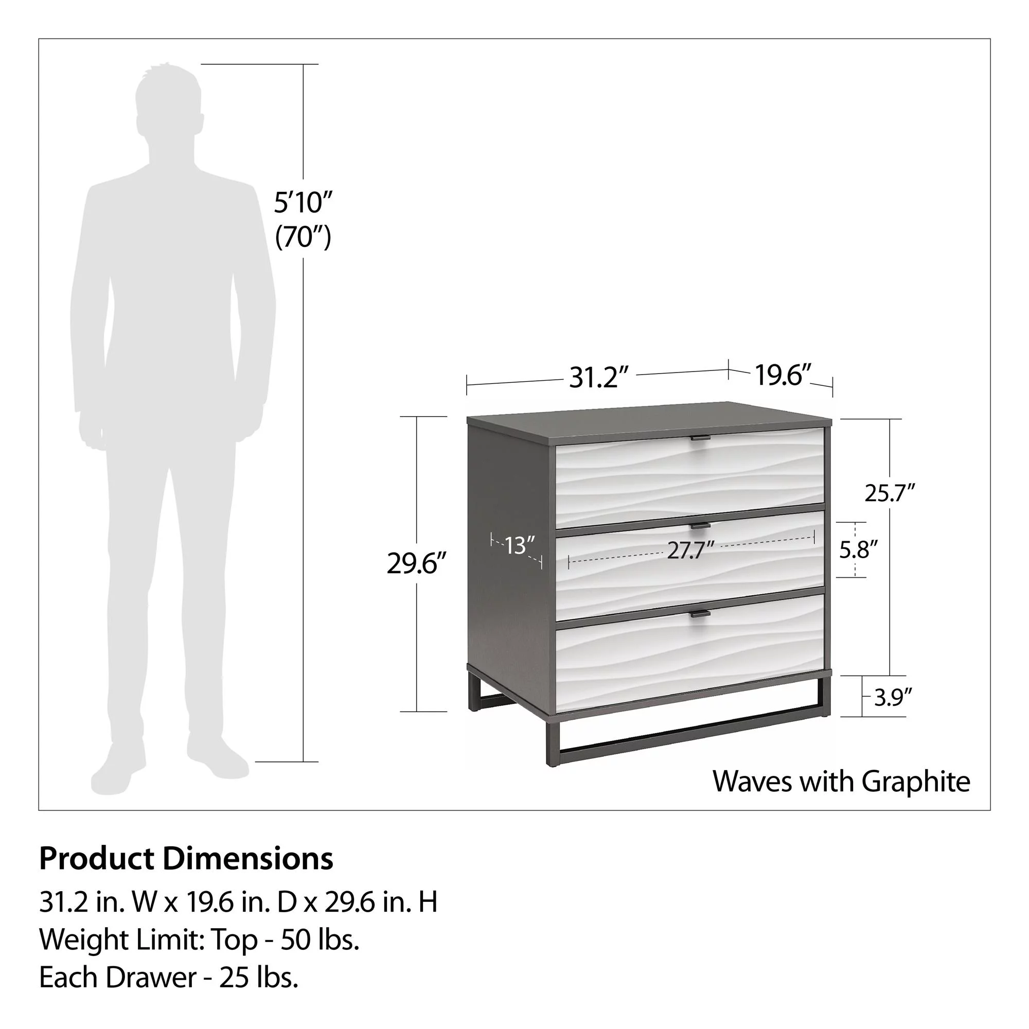 Ameriwood Home Monterey 3 Drawer Dresser, Faux Wave Pattern with Graphite