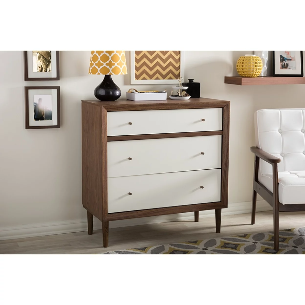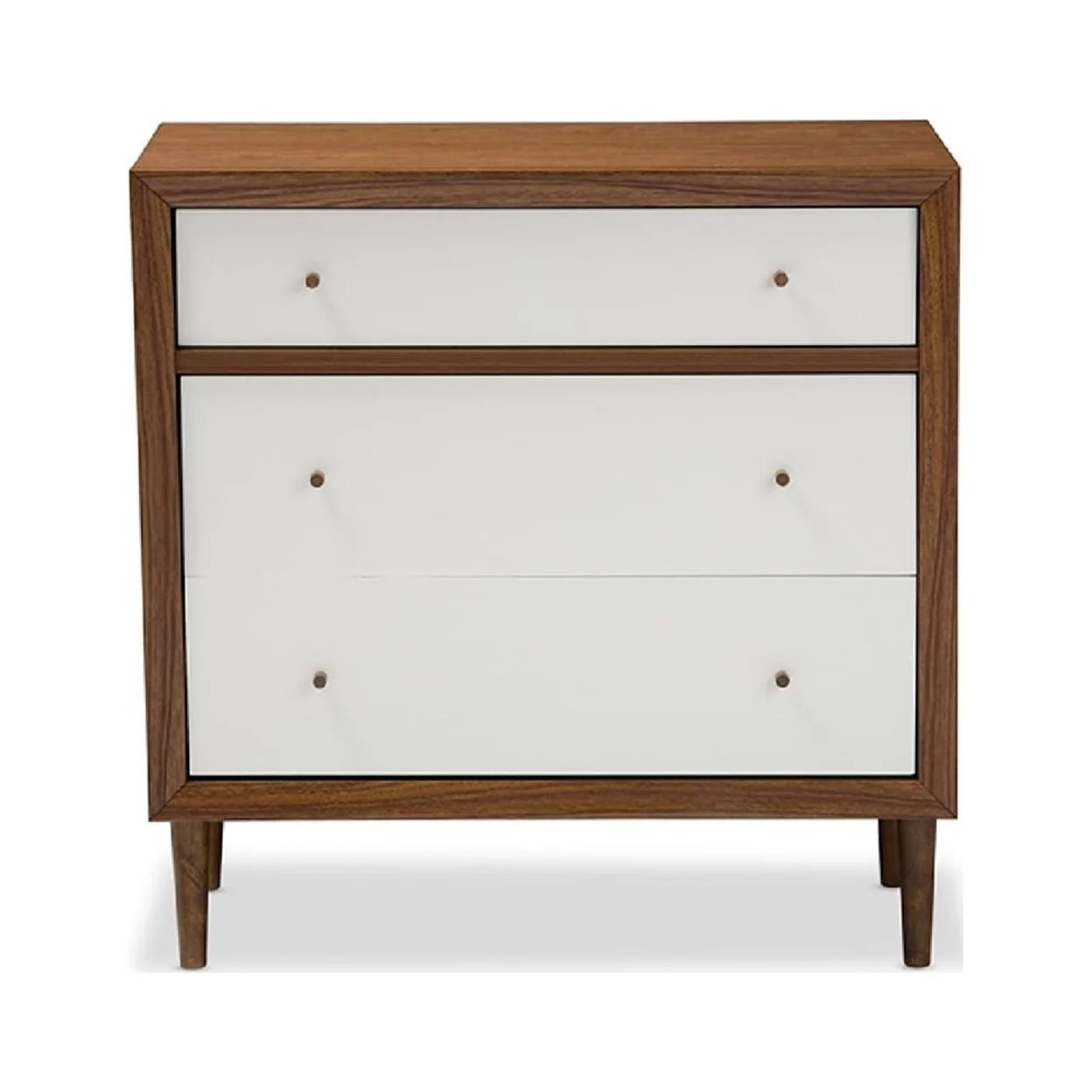 Baxton Studio Harlow Mid-century Modern Scandinavian Style White and Walnut Wood 3-drawer Chest