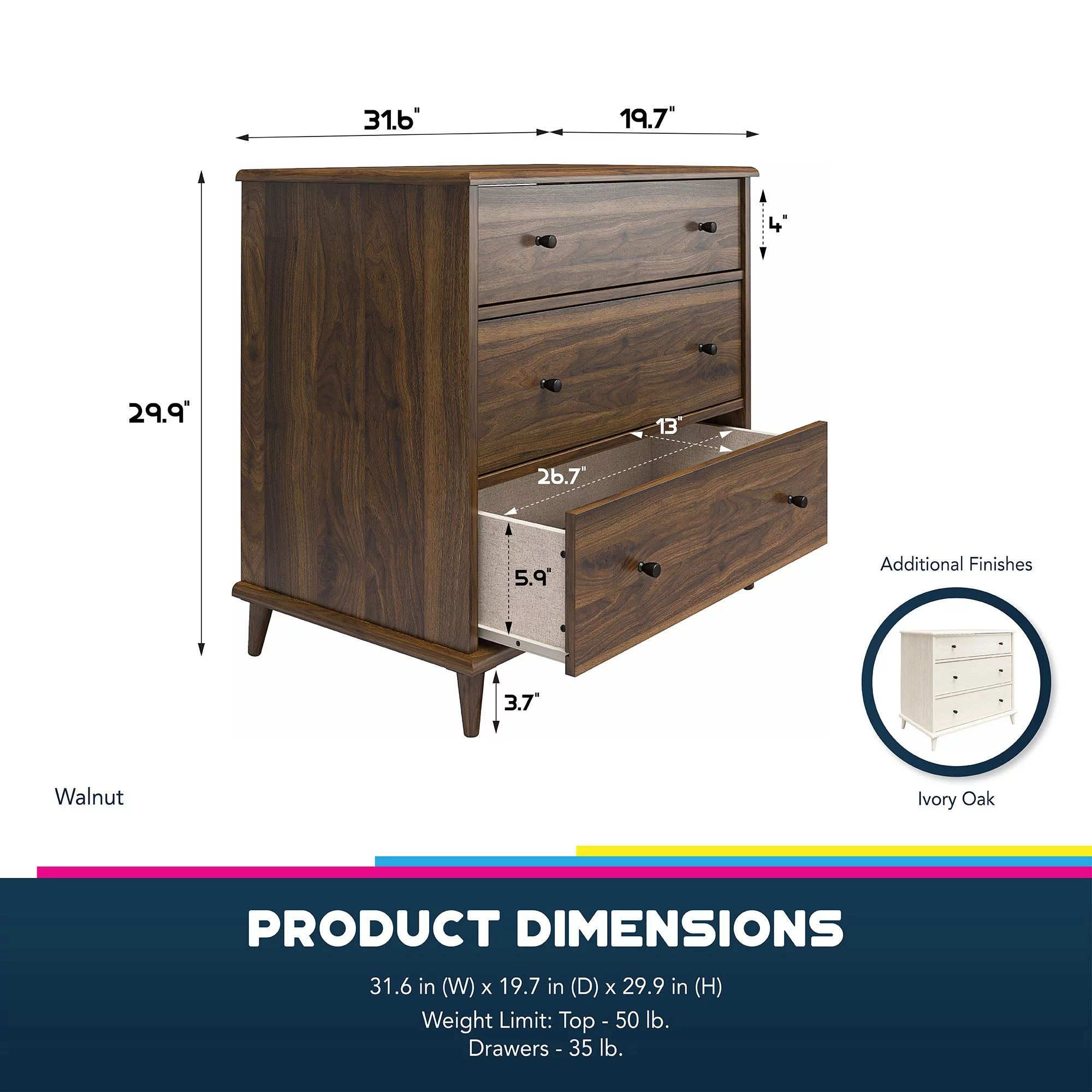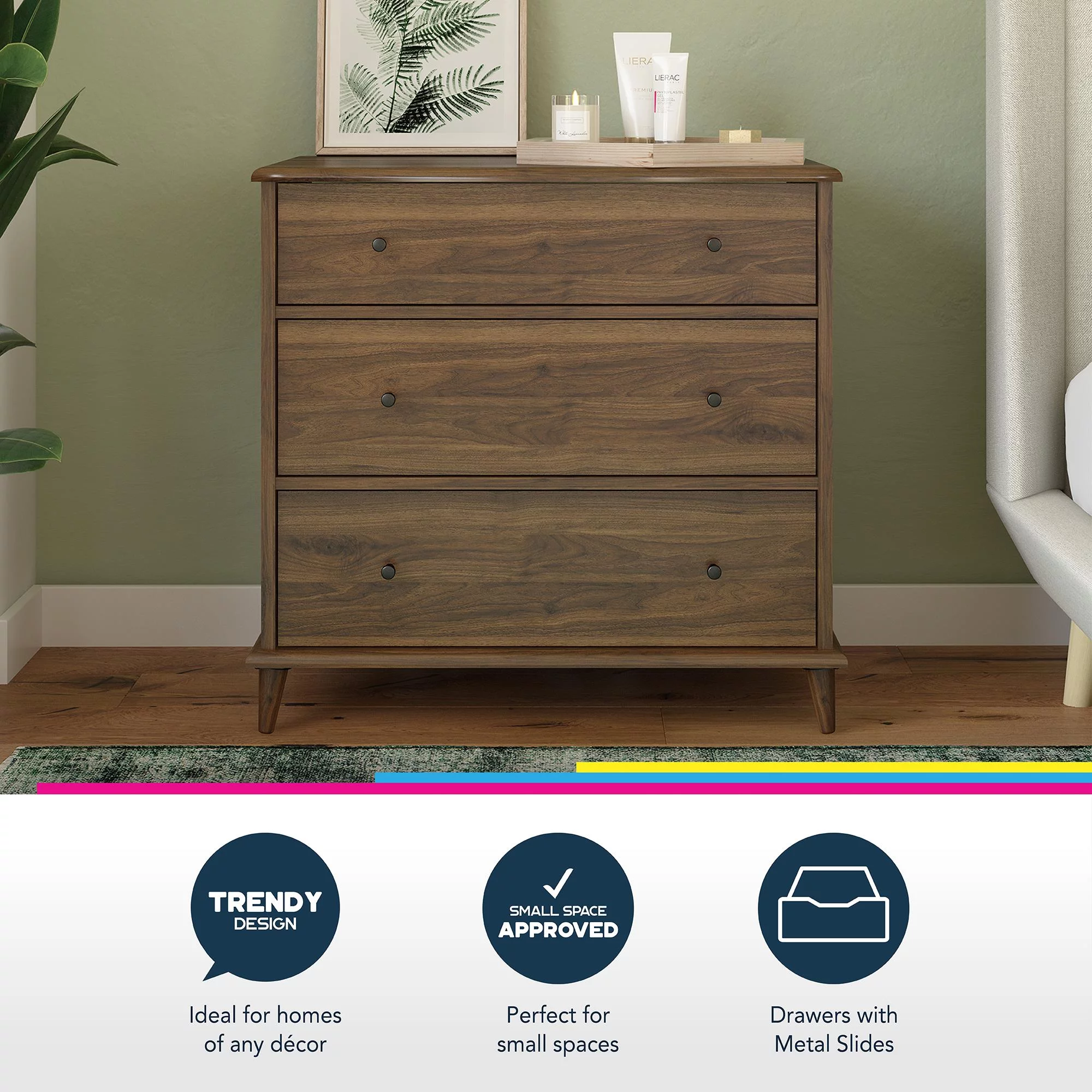 SAFAVIEH Katia Contemporary Retro Three Drawer Chest, Brown (31.9 in. W x 16 in. D x 29 in. H)