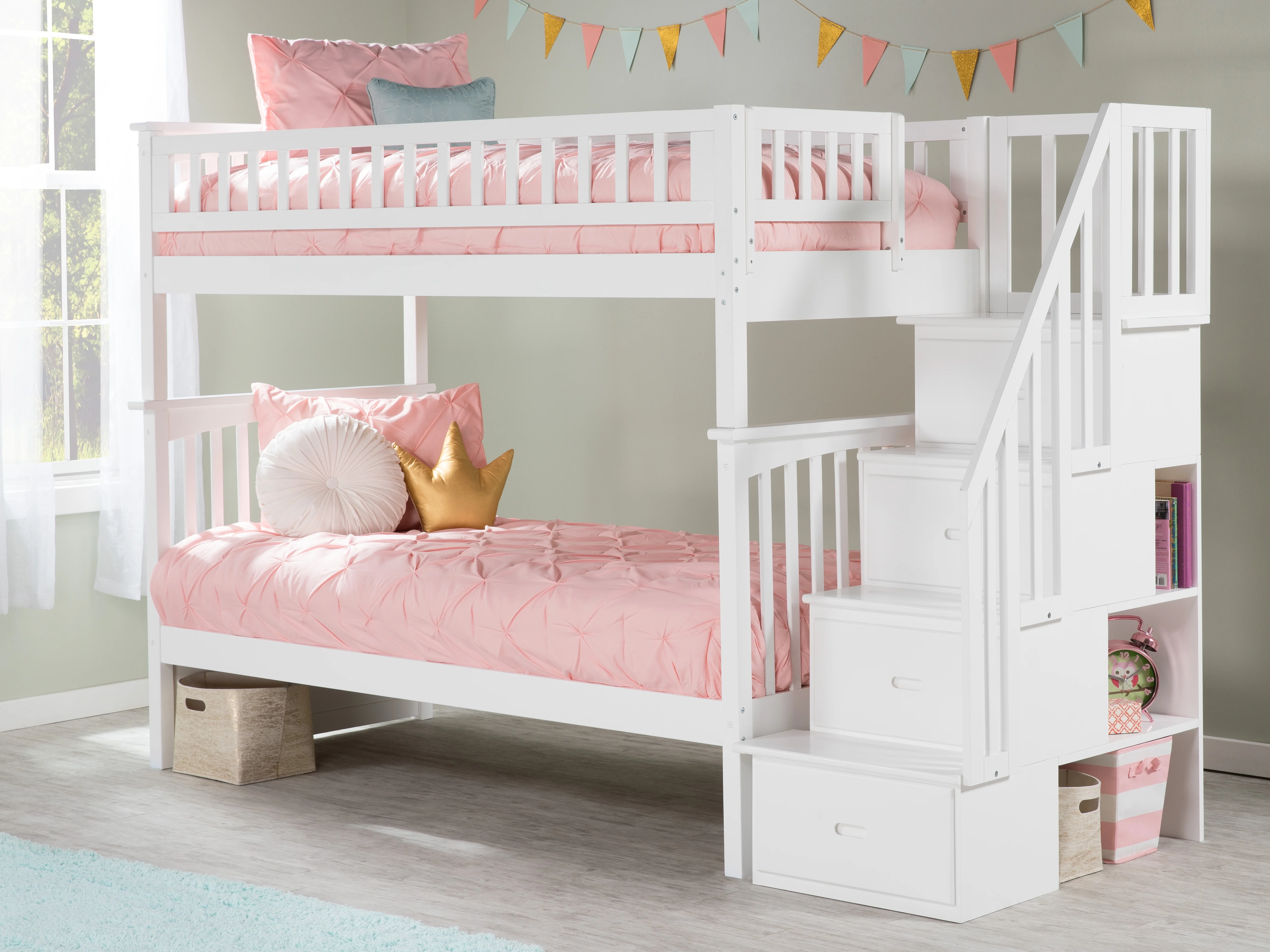 Columbia Staircase Bunk Bed Twin over Twin in Multiple Colors and Configurations