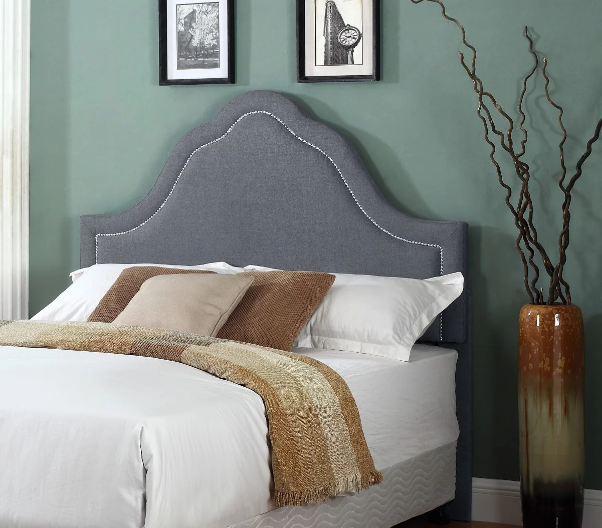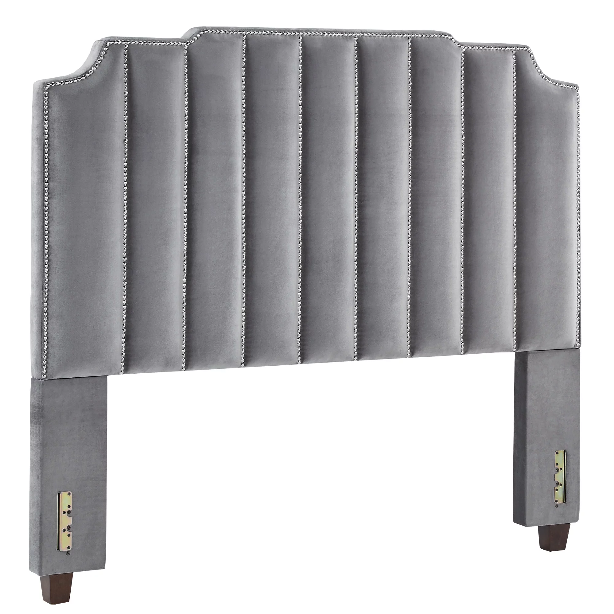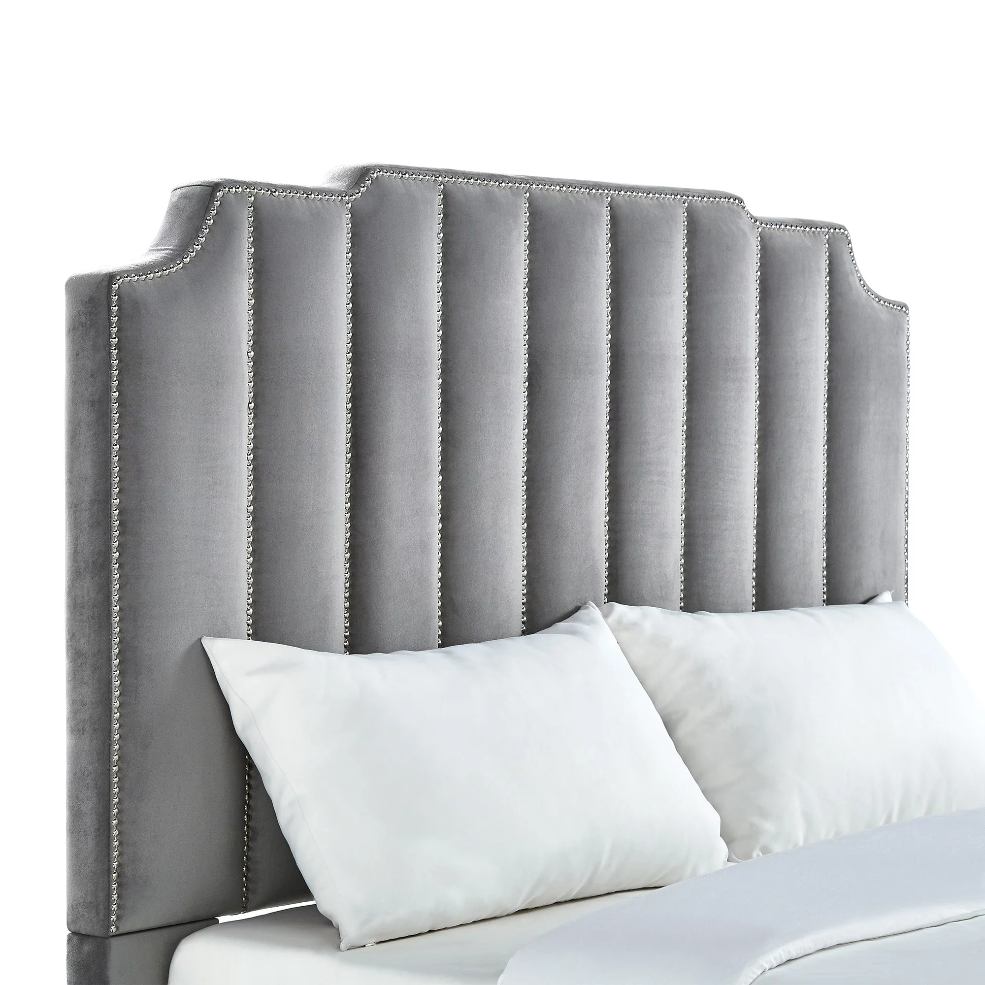 Weston Home Armenthine Velvet Upholstered Nailhead Queen Headboard, Gray Finish