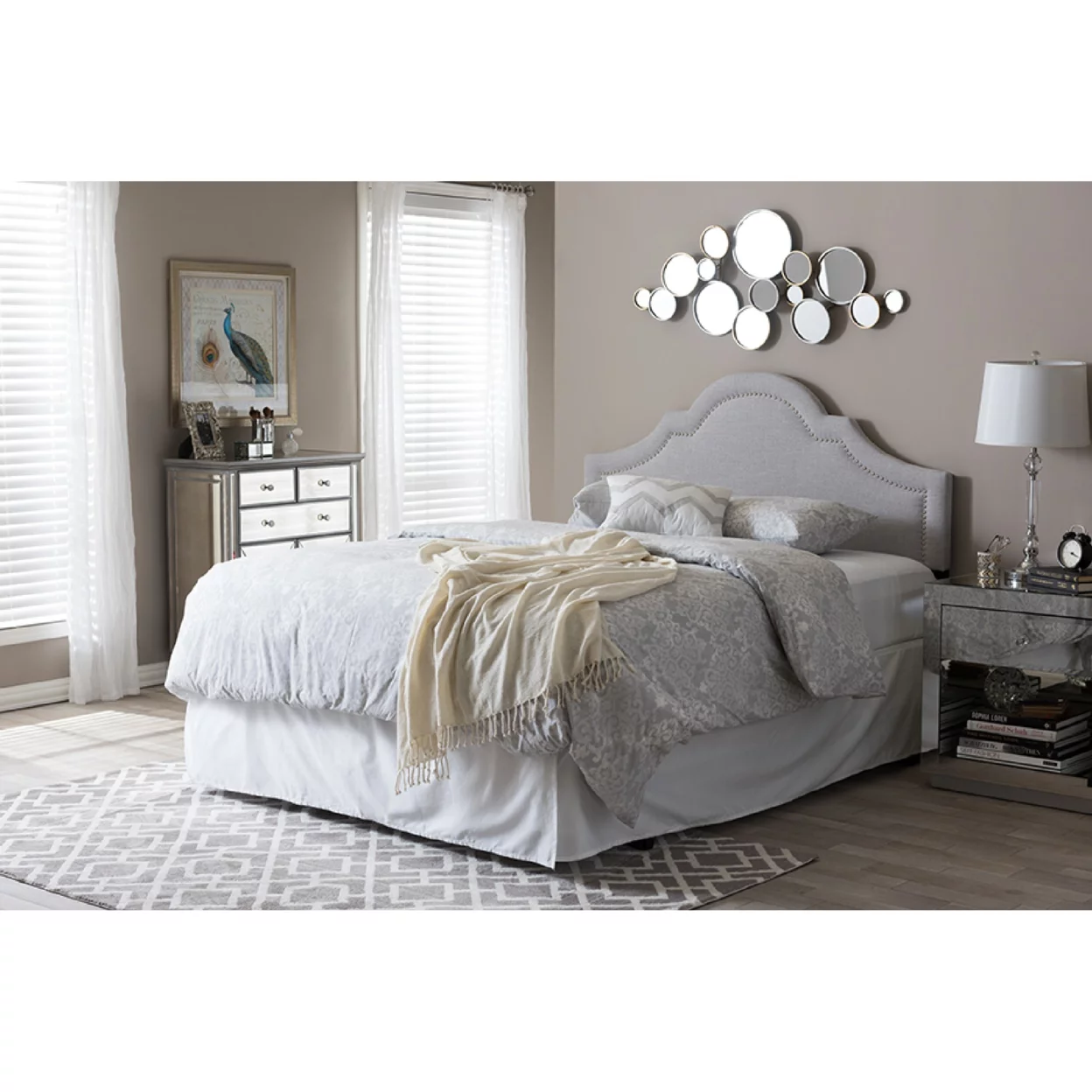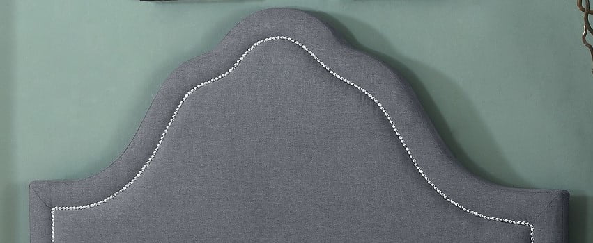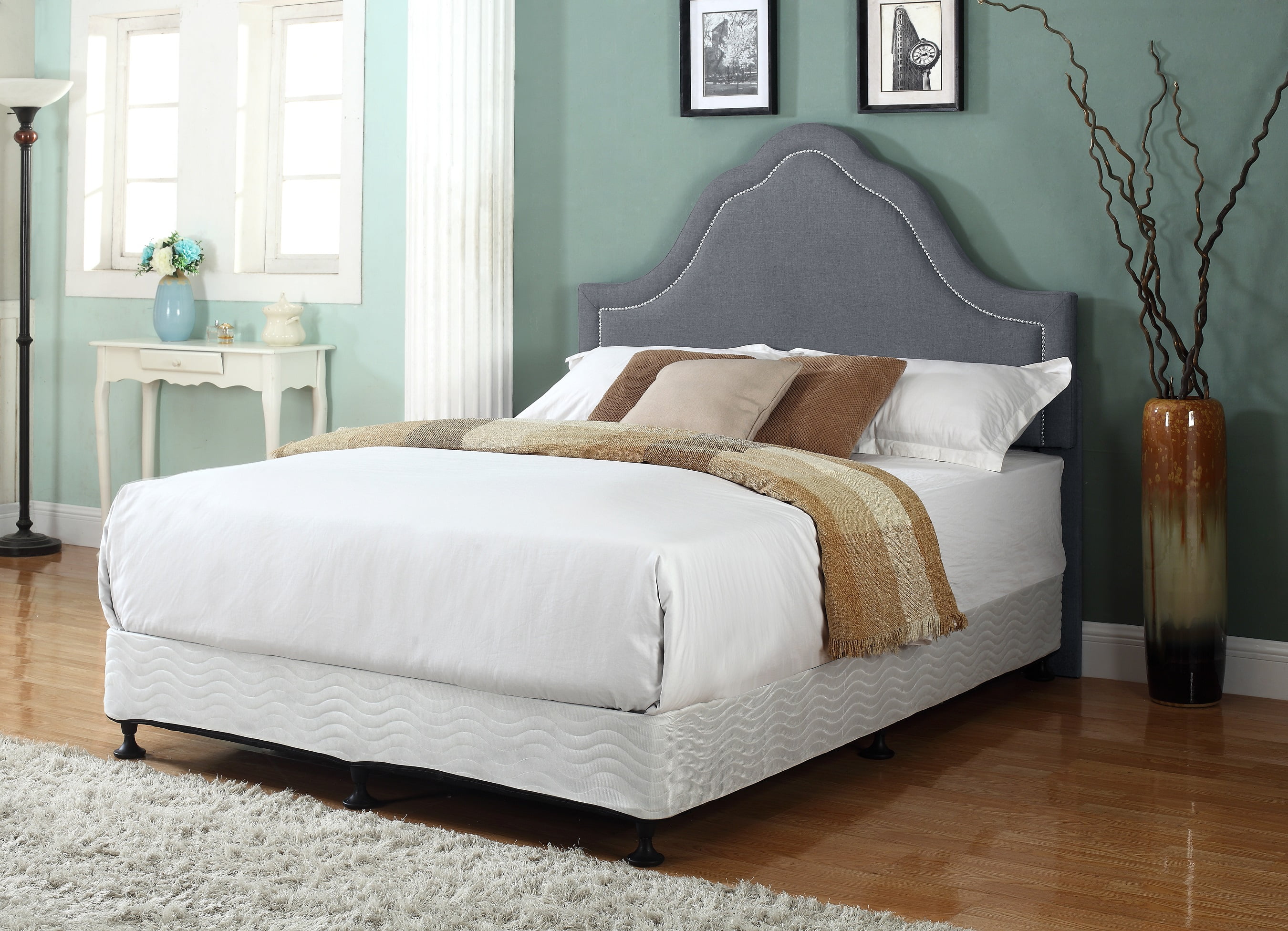 Weston Home Armenthine Velvet Upholstered Nailhead Queen Headboard, Gray Finish
