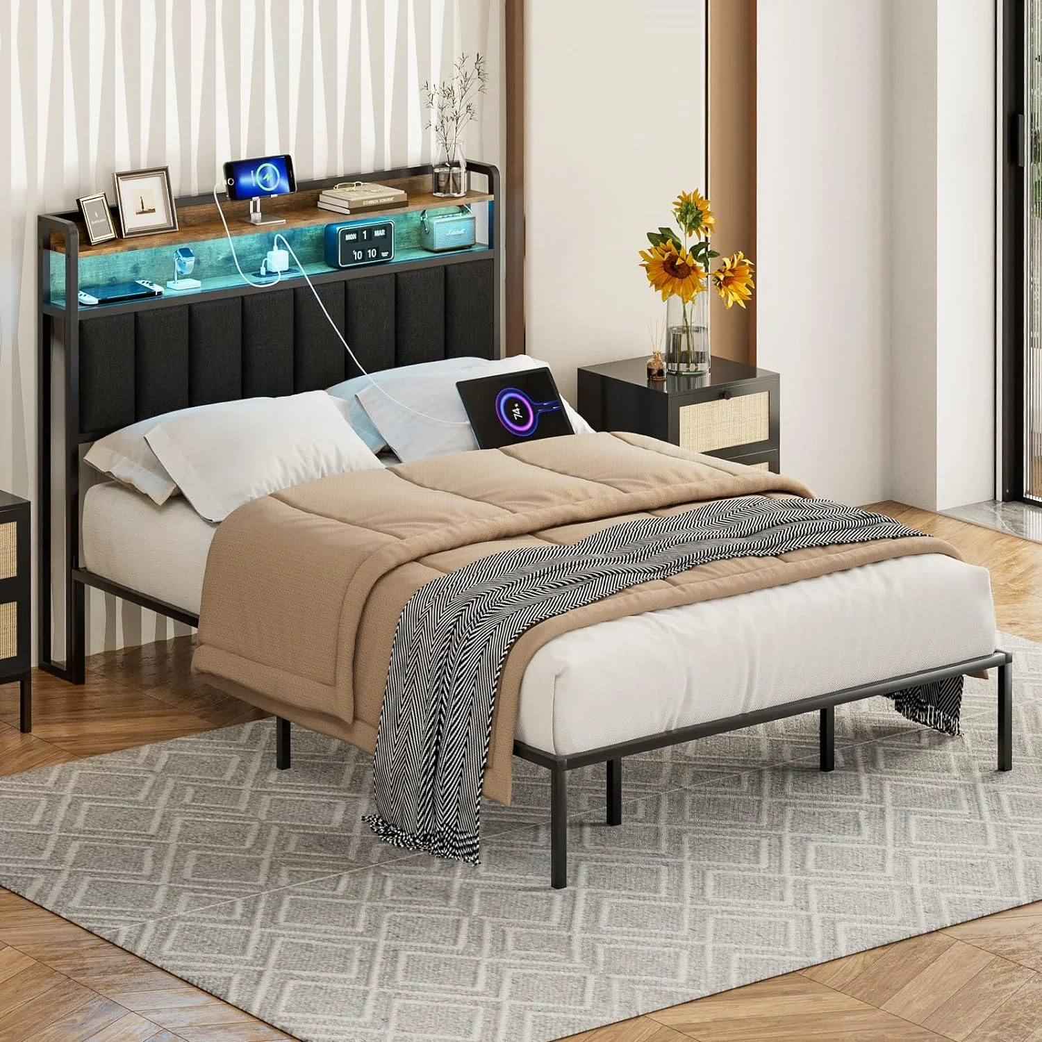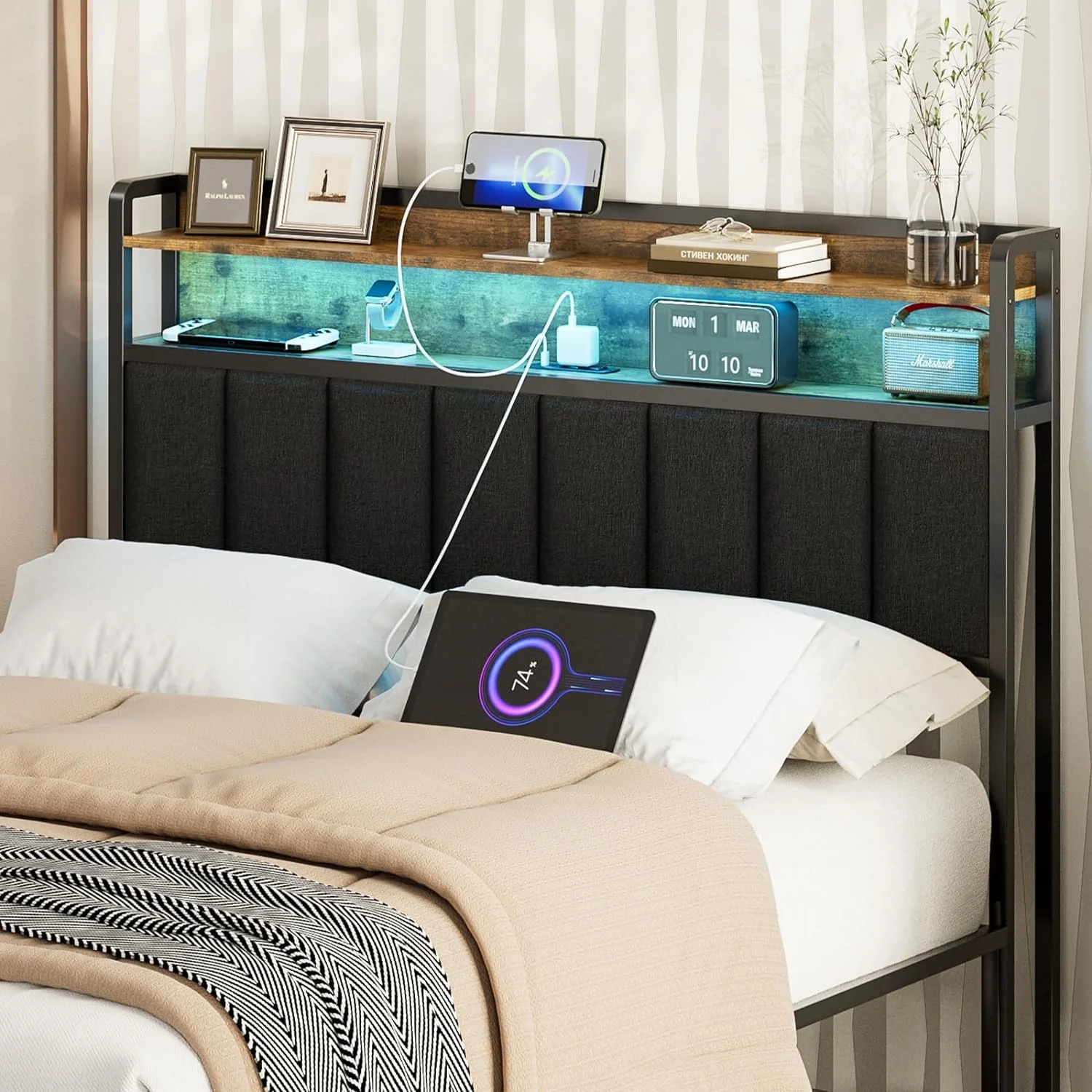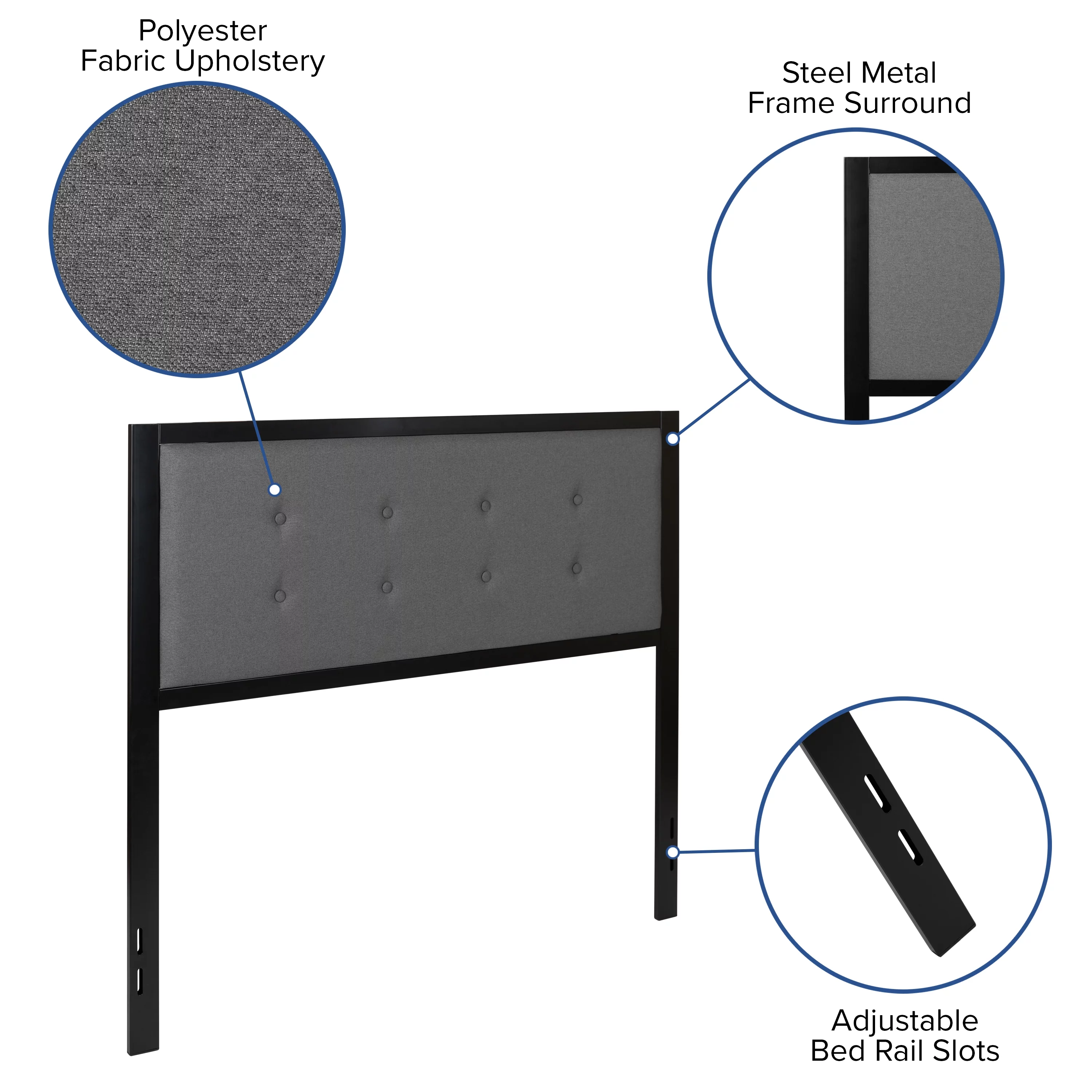 BizChair Metal Tufted Upholstered Full Size Headboard in Dark Gray Fabric