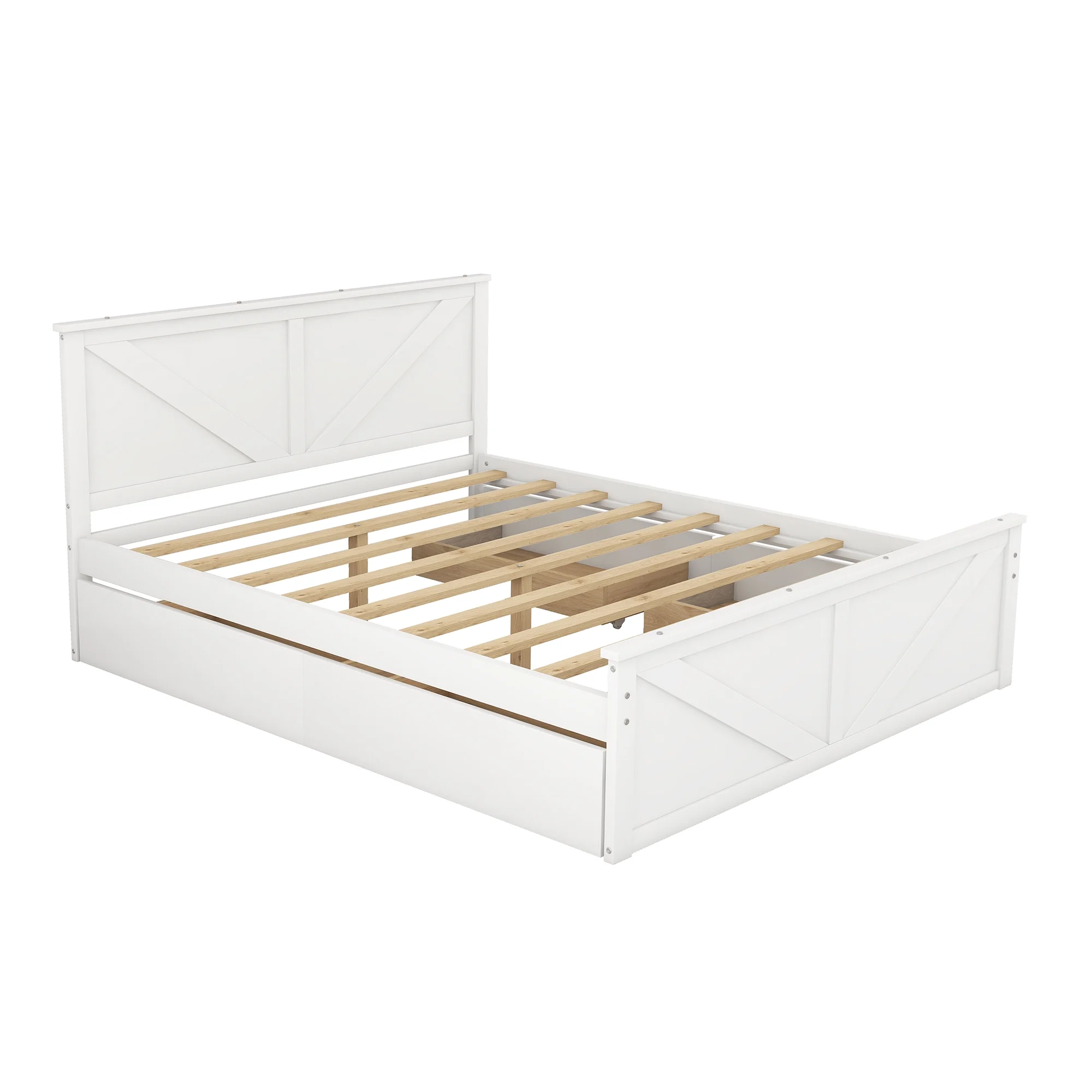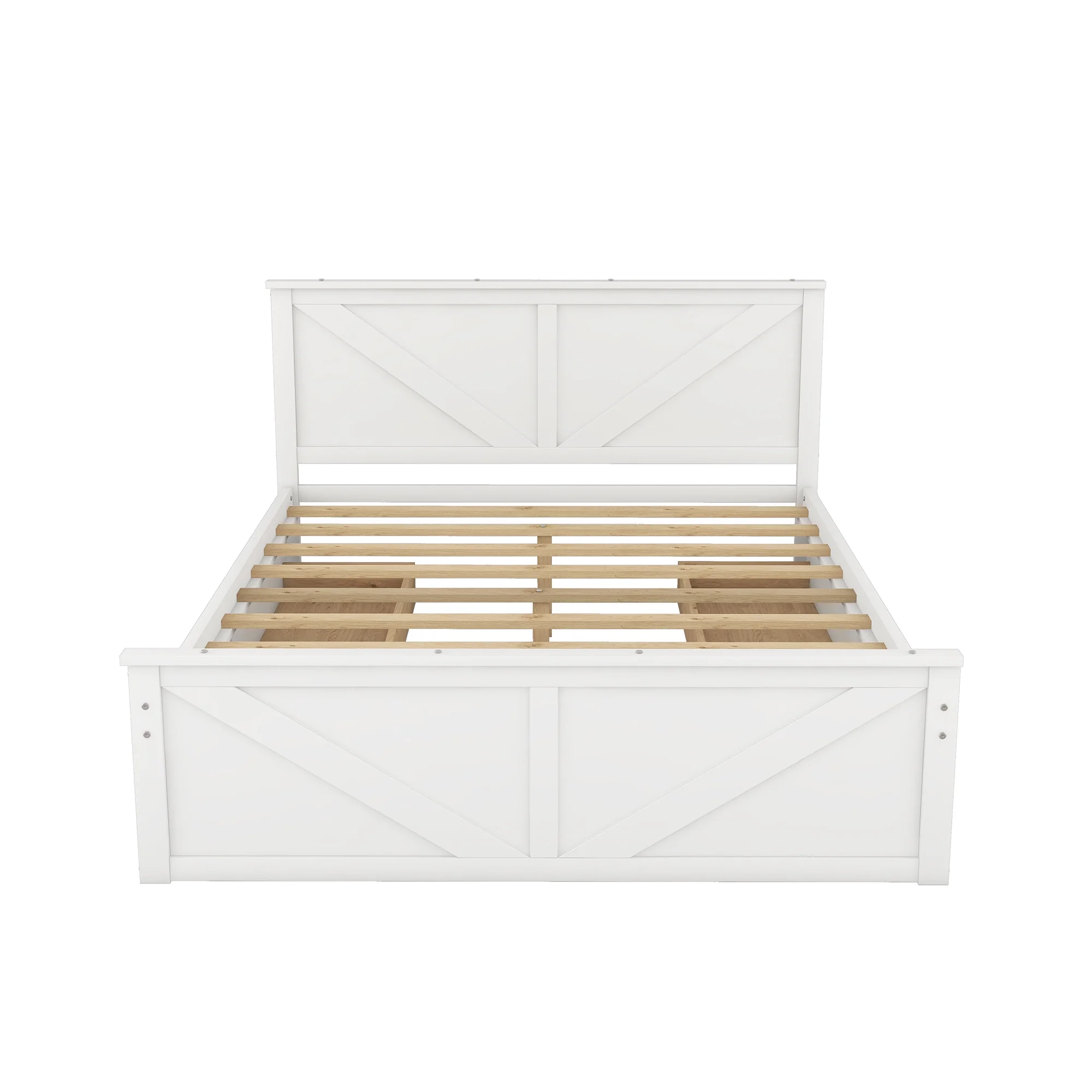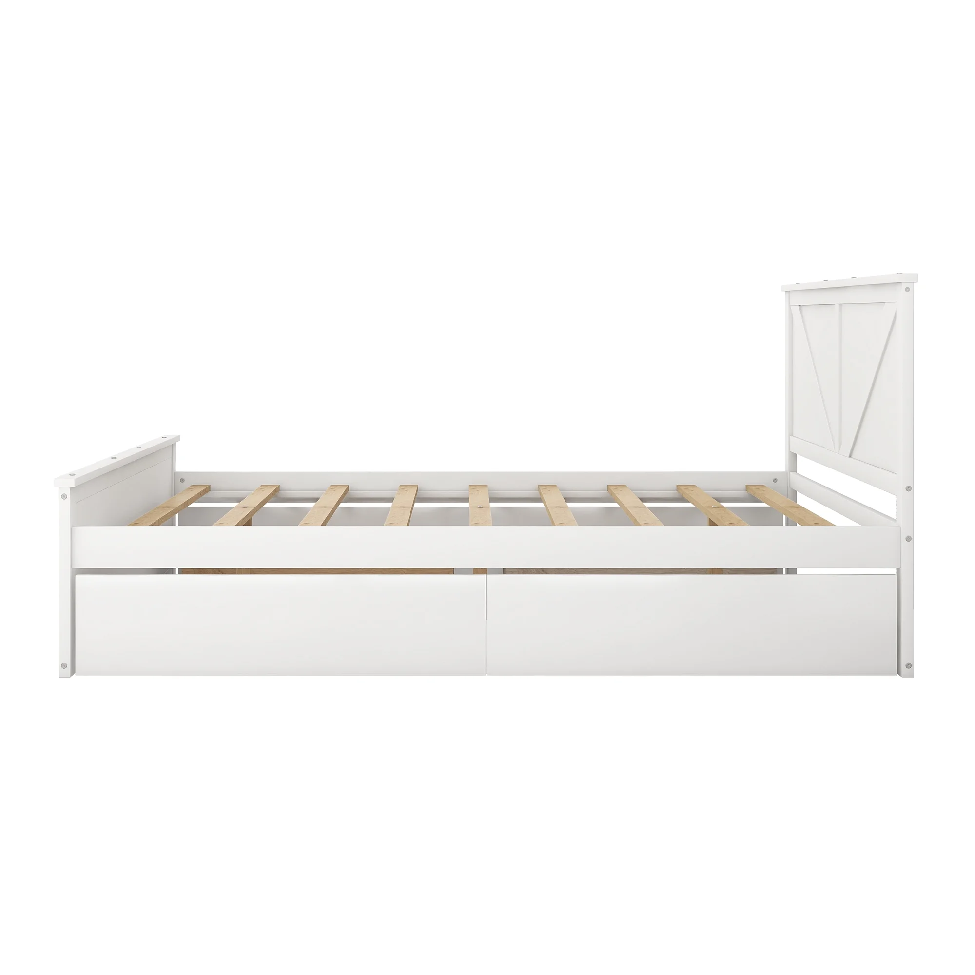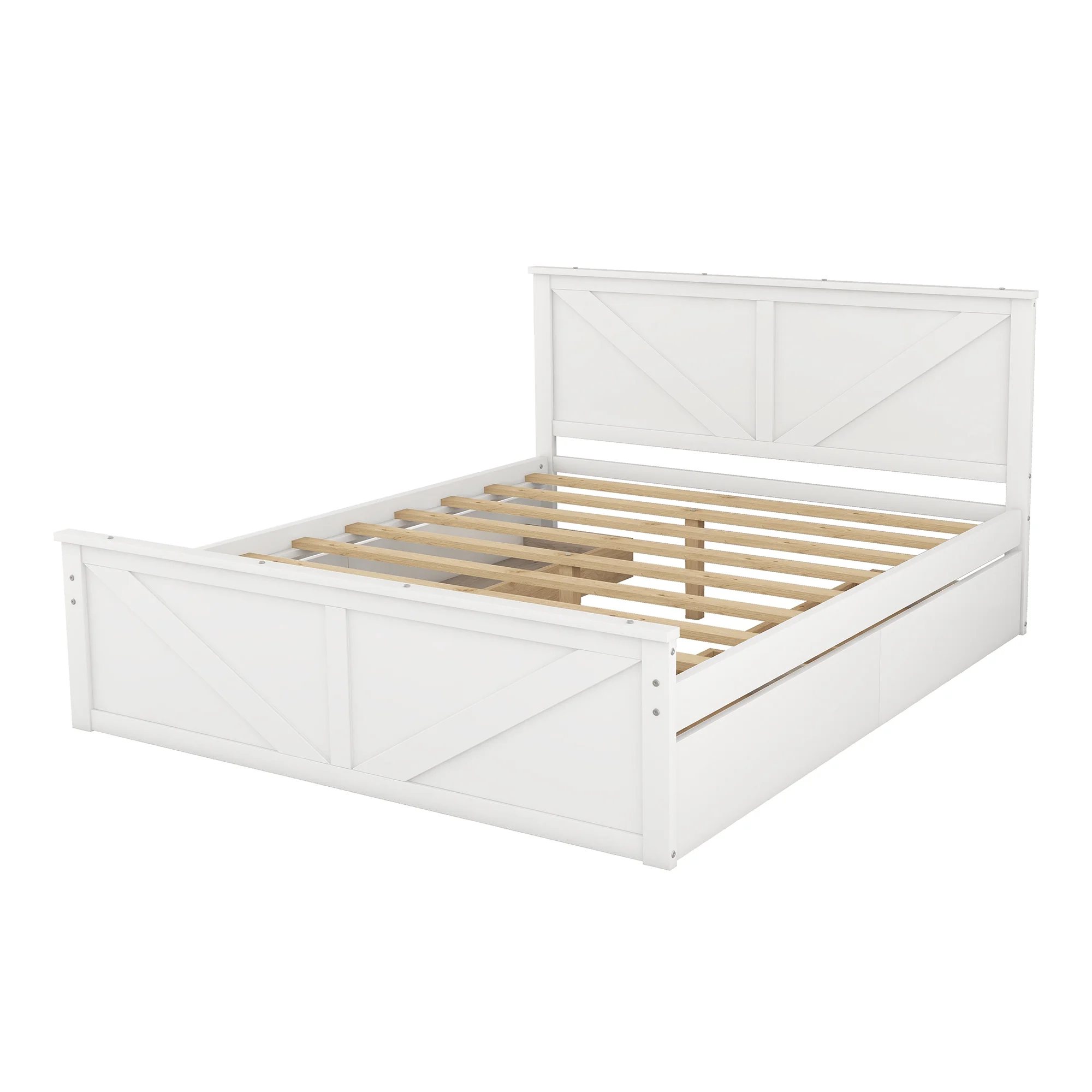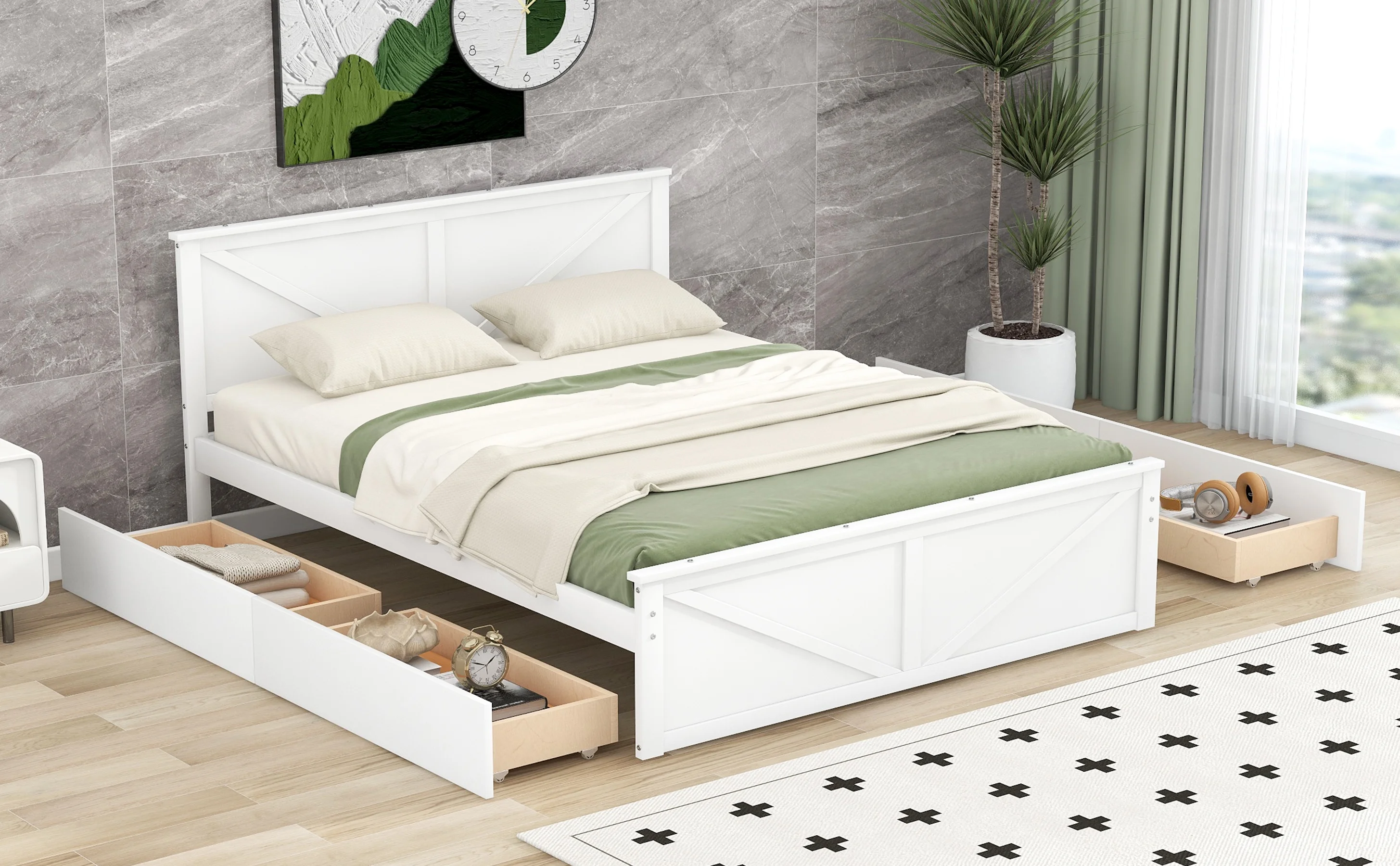 Euroco Pine Wood Queen Size Platform Bed with Four Storage Drawers for Living Room, White