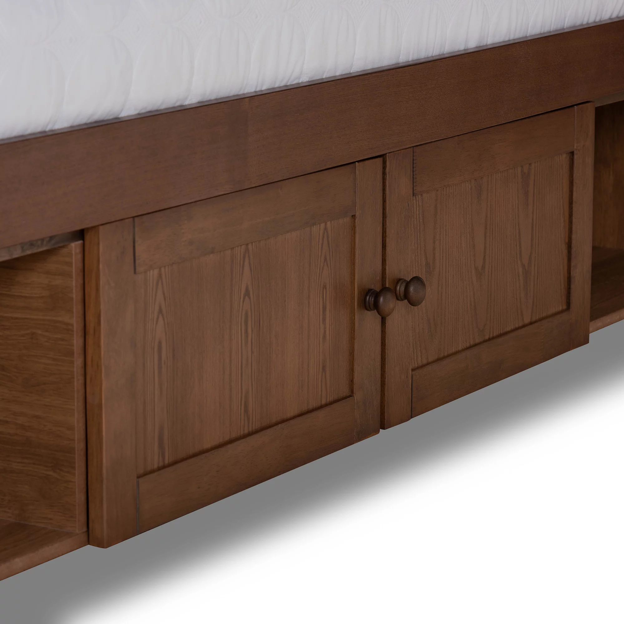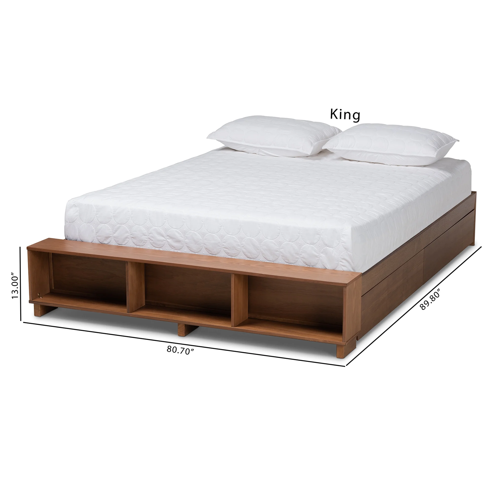 Baxton Studio Arthur Modern Rustic Ash Walnut Brown Finished Wood King Size Platform Bed with Built-In Shelves