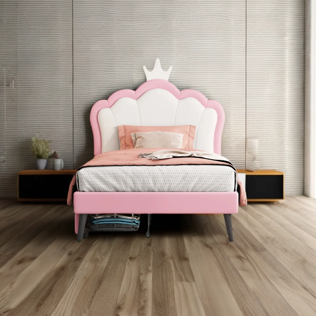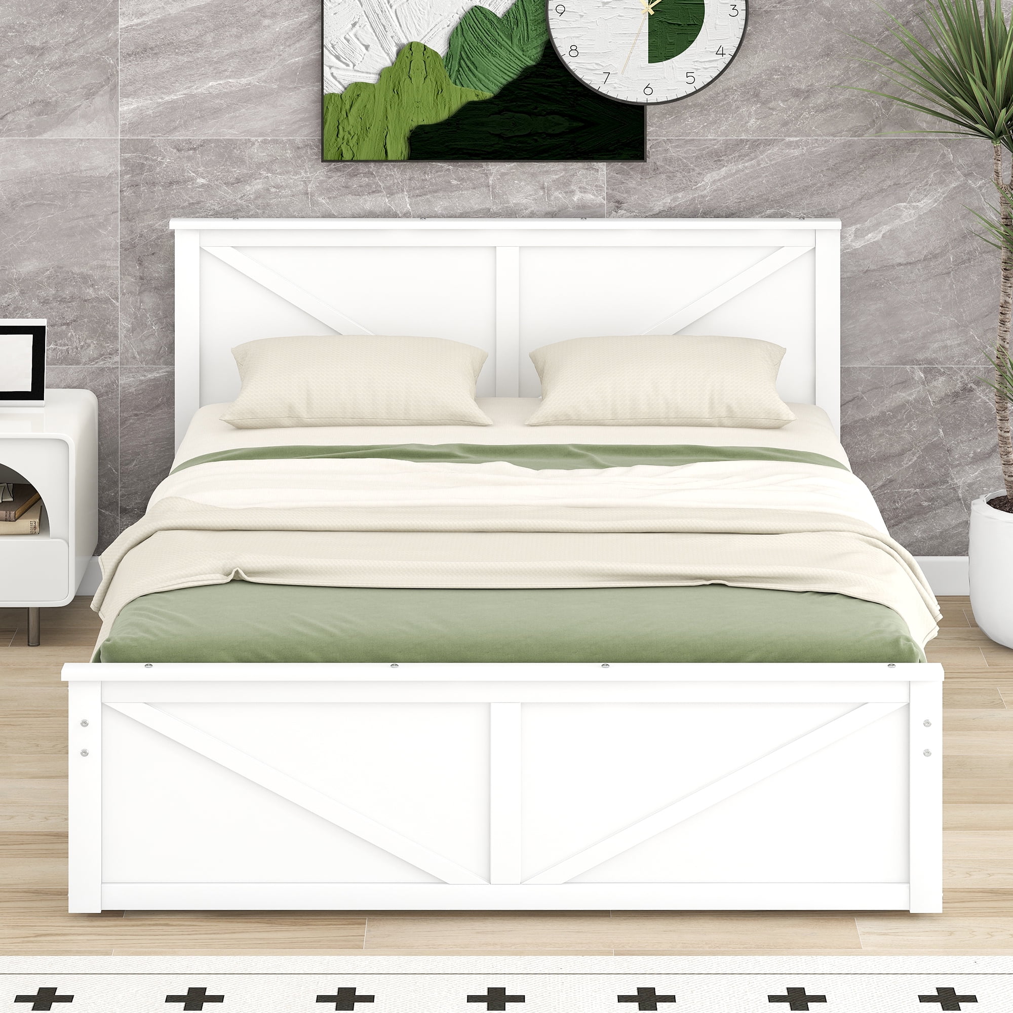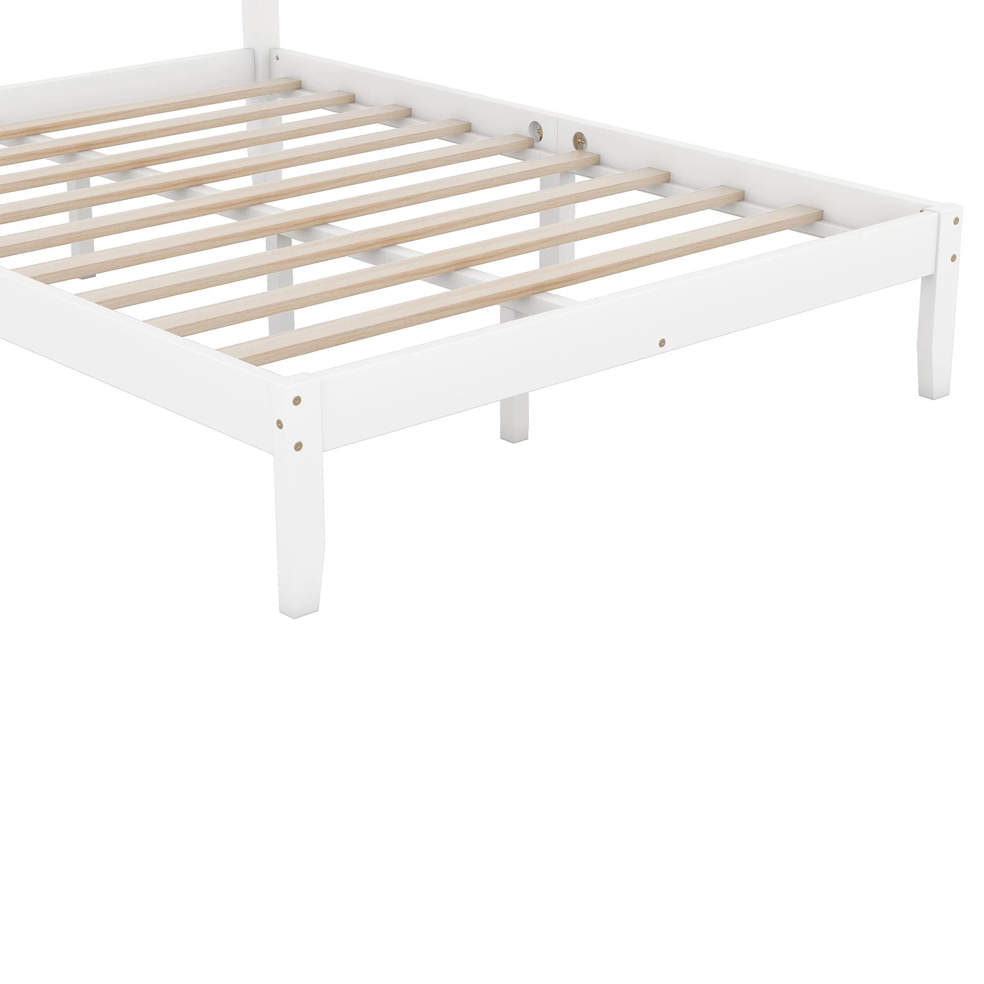 Euroco Wood Full Size Platform Bed, Bed with Crown for Kids Teens Adults, White