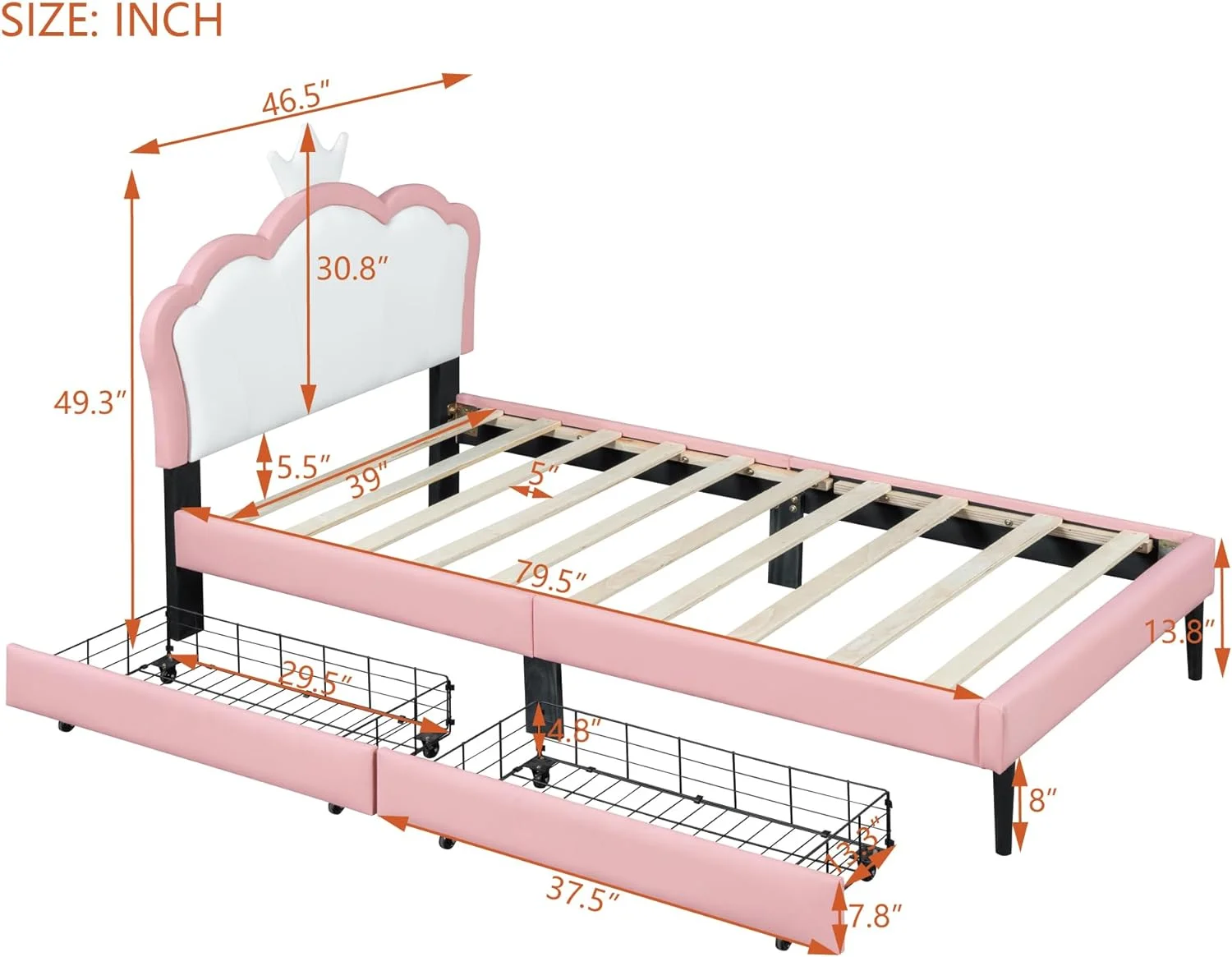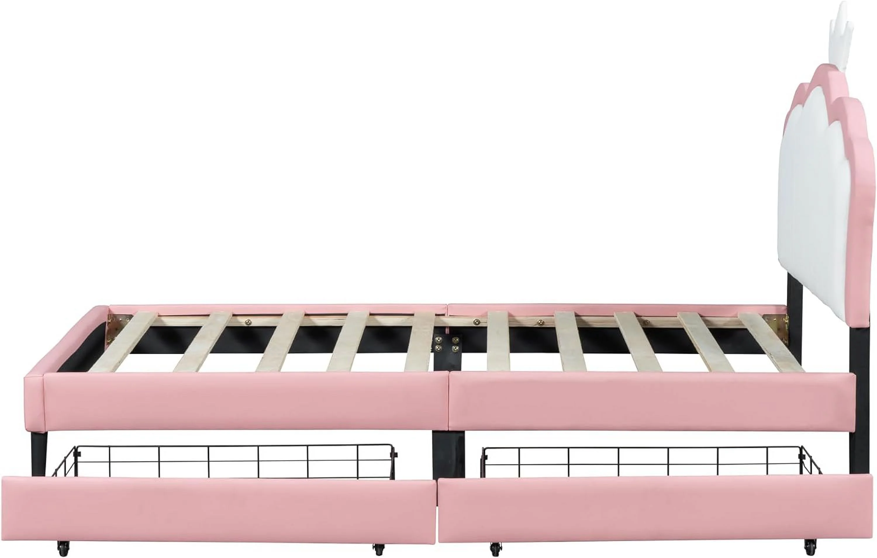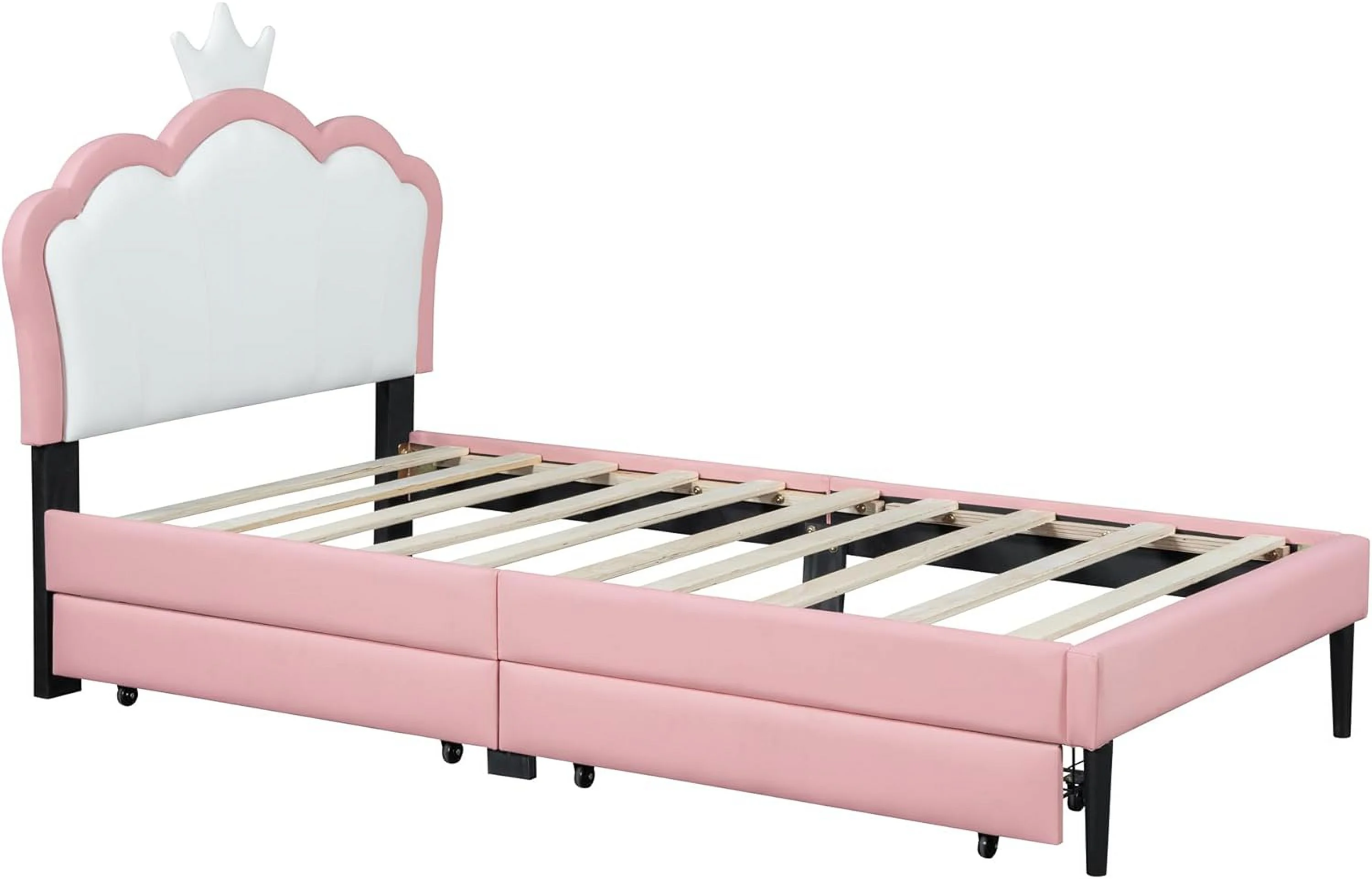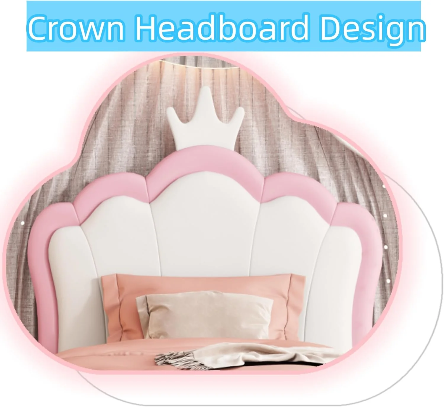 Euroco Wood Full Size Platform Bed, Bed with Crown for Kids Teens Adults, White