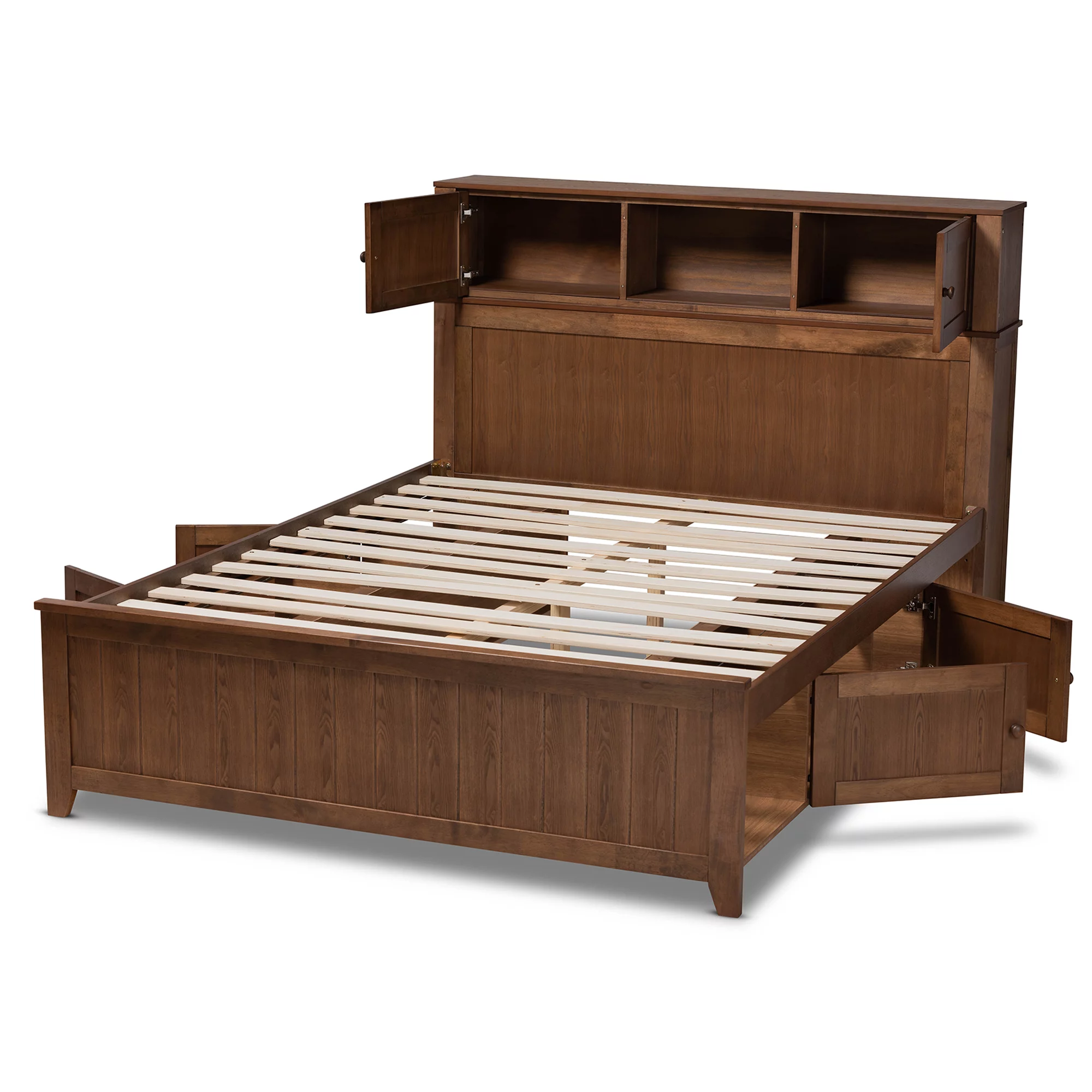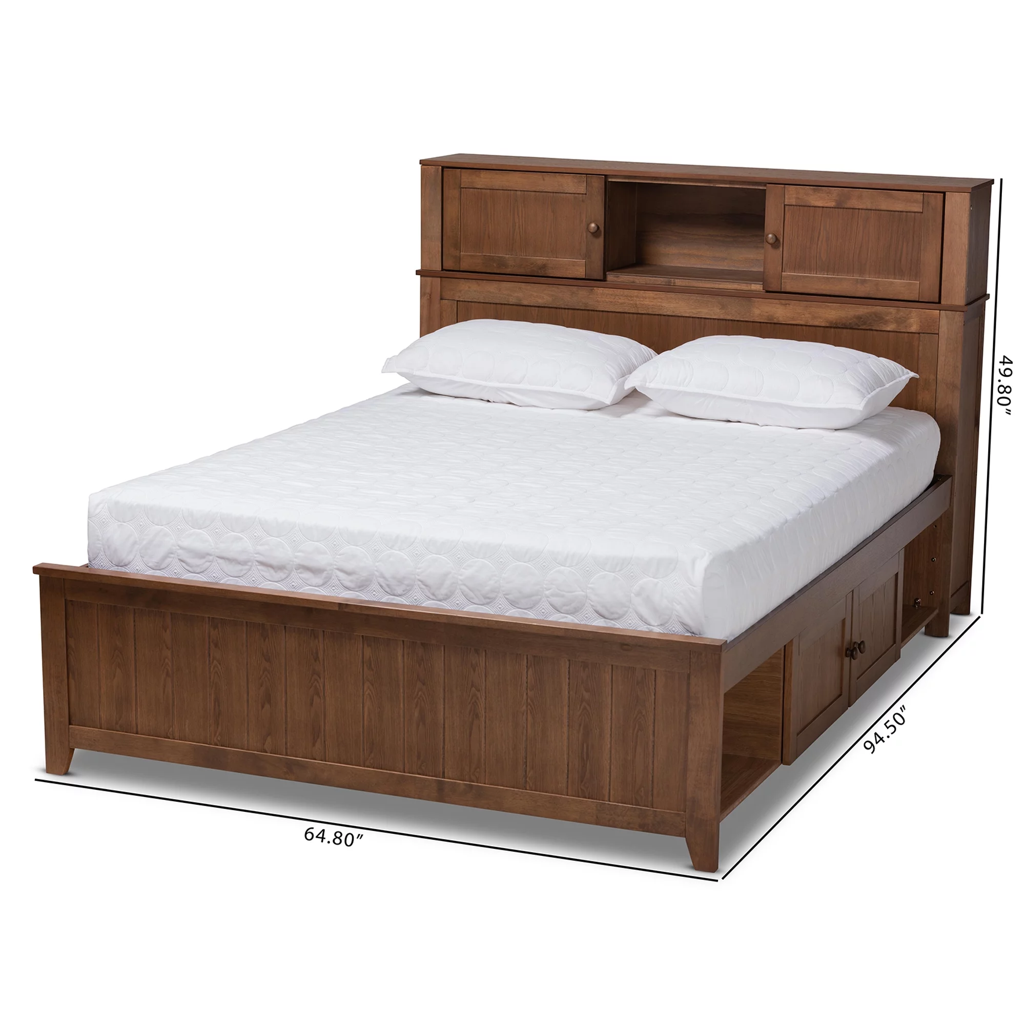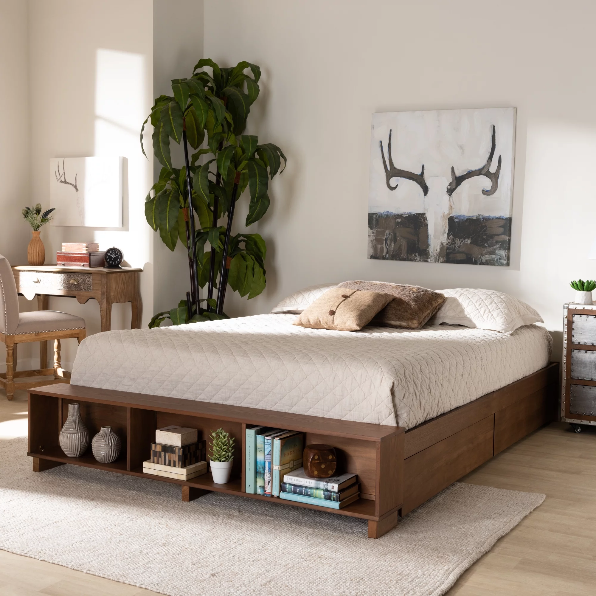 Baxton Studio Riko Modern and Contemporary Transitional Walnut Brown Finished Wood Queen Size Platform Storage Bed