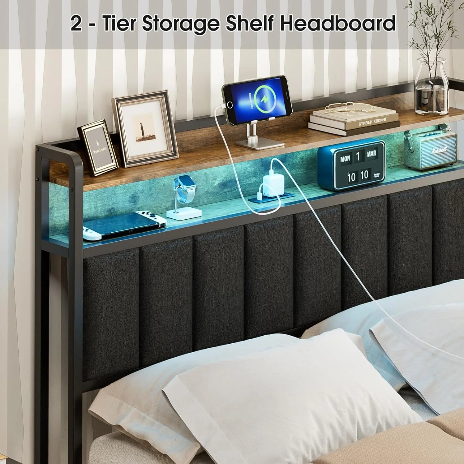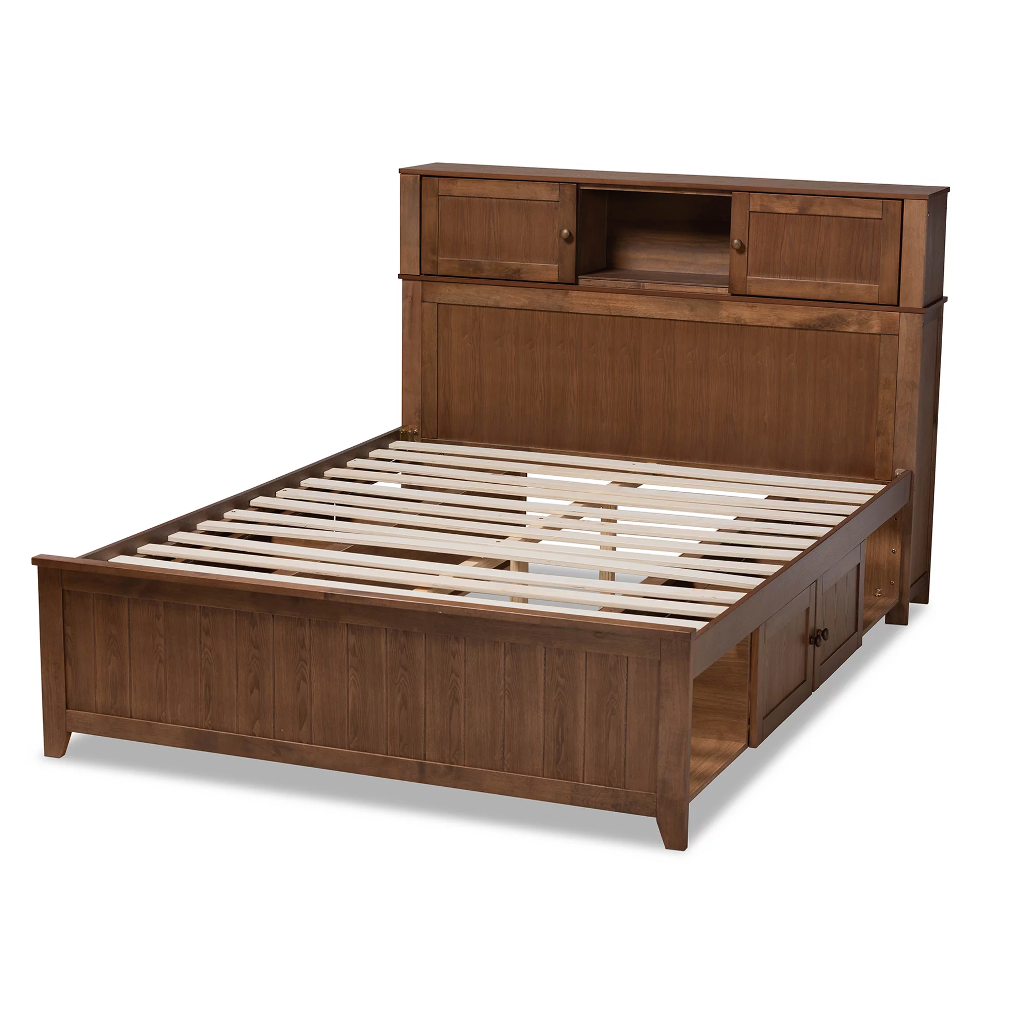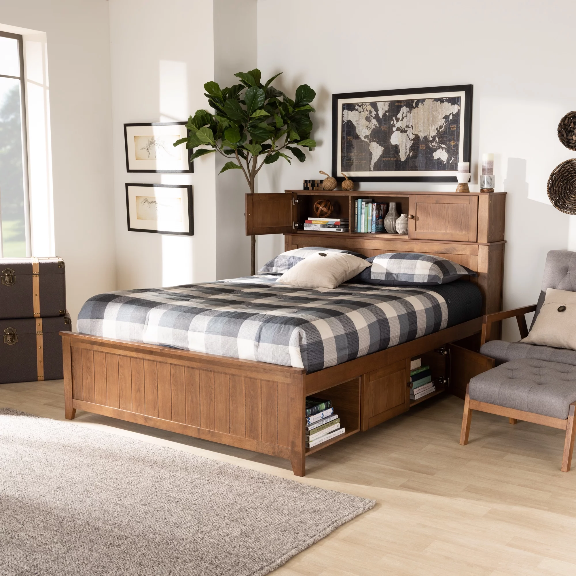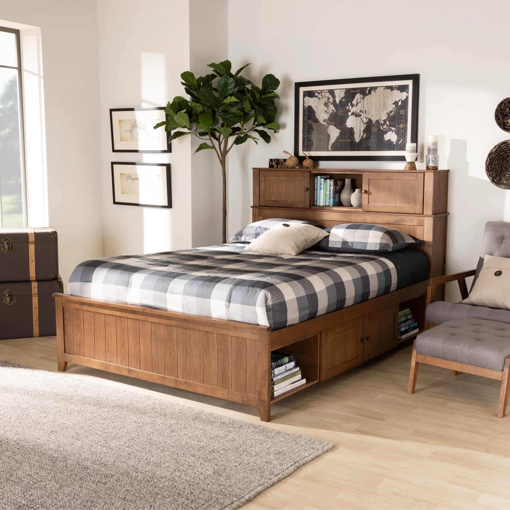 Baxton Studio Riko Modern and Contemporary Transitional Walnut Brown Finished Wood Queen Size Platform Storage Bed