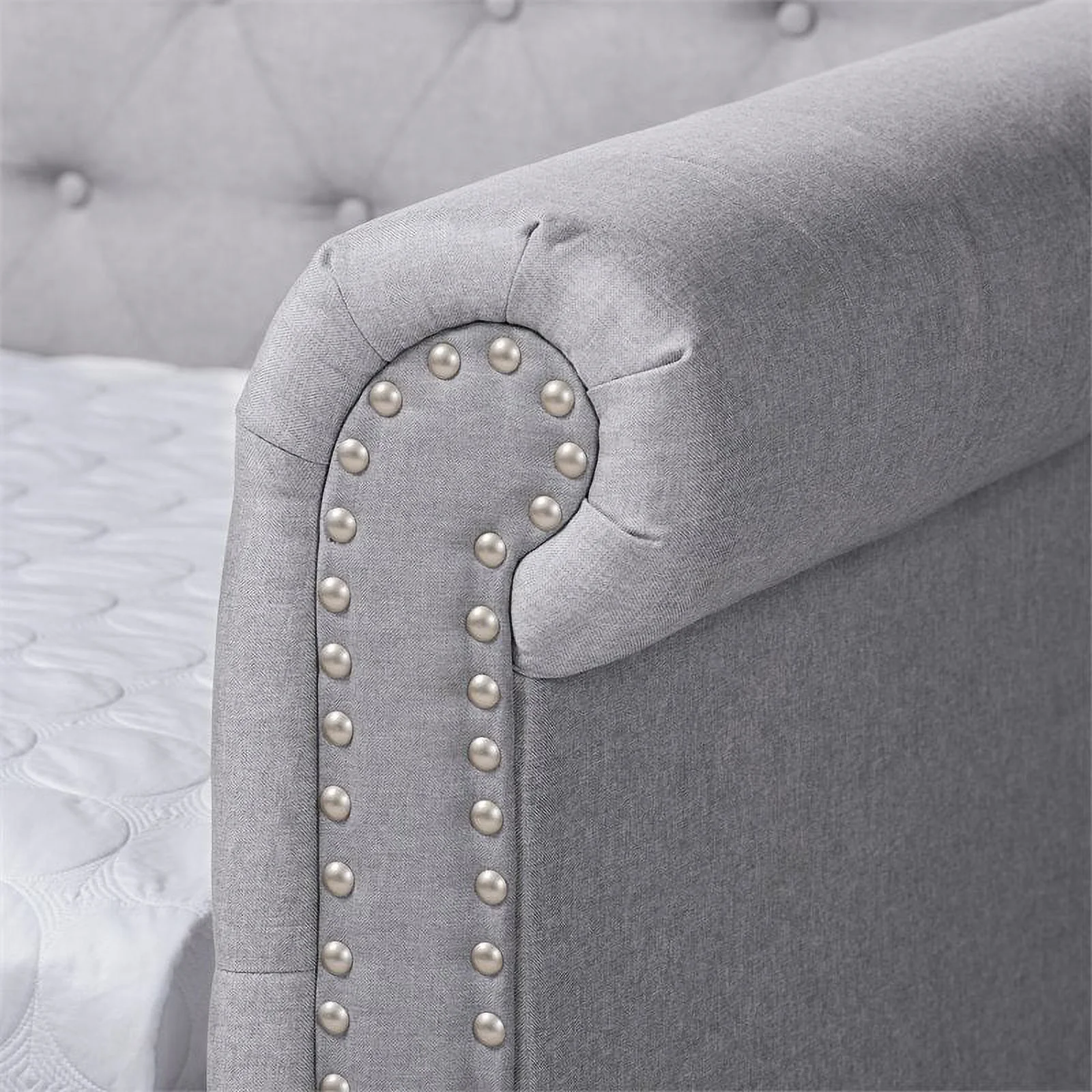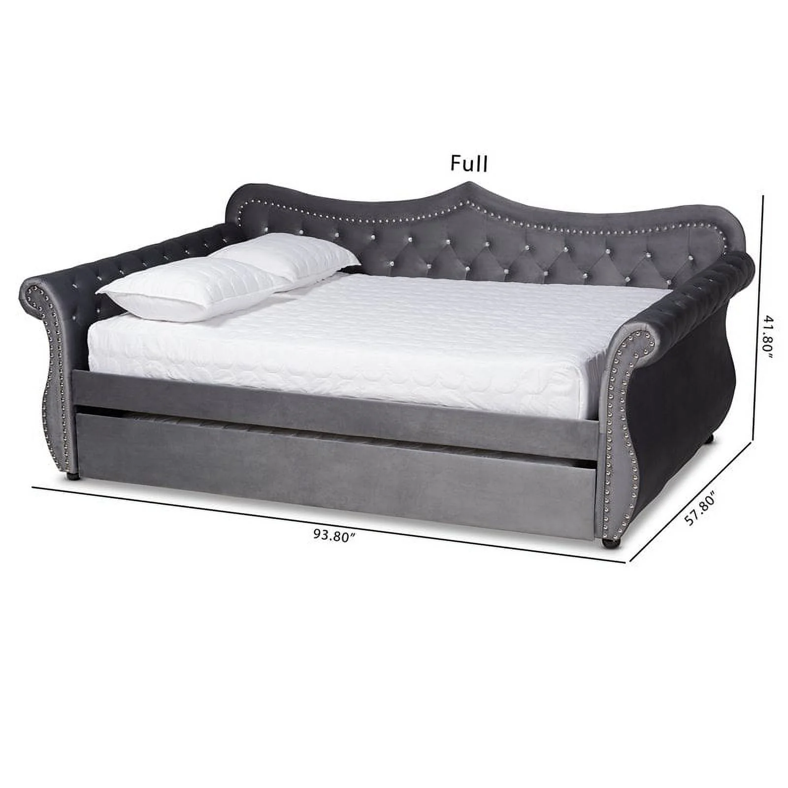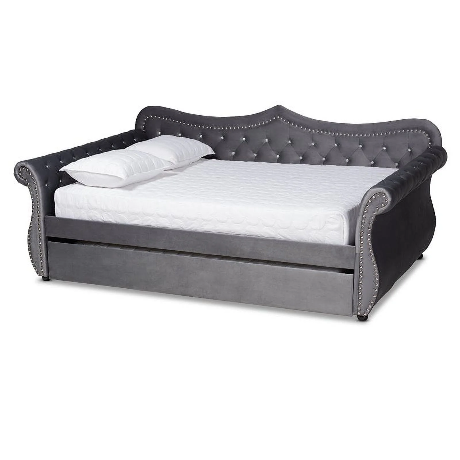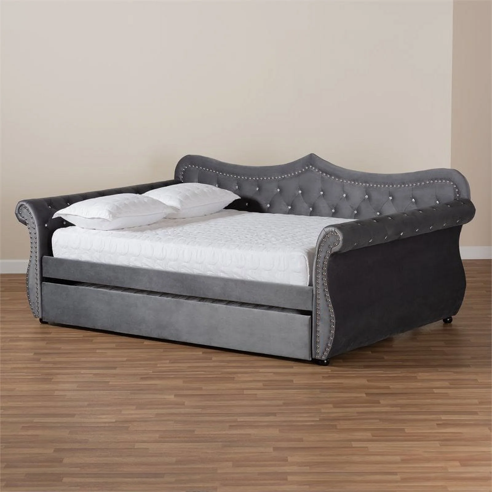 Bowery Hill Traditional Velvet Crystal Tufted Queen Daybed with Trundle in Gray
