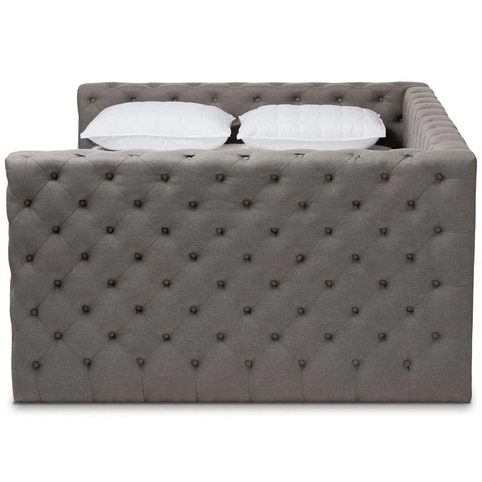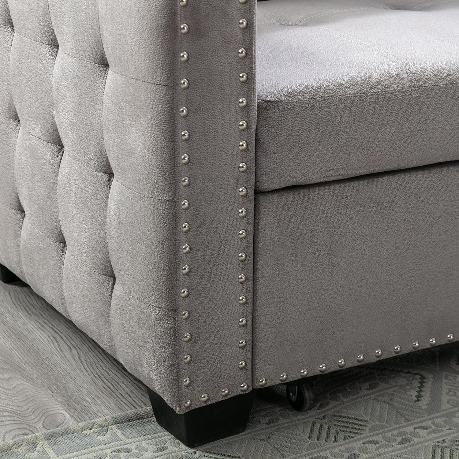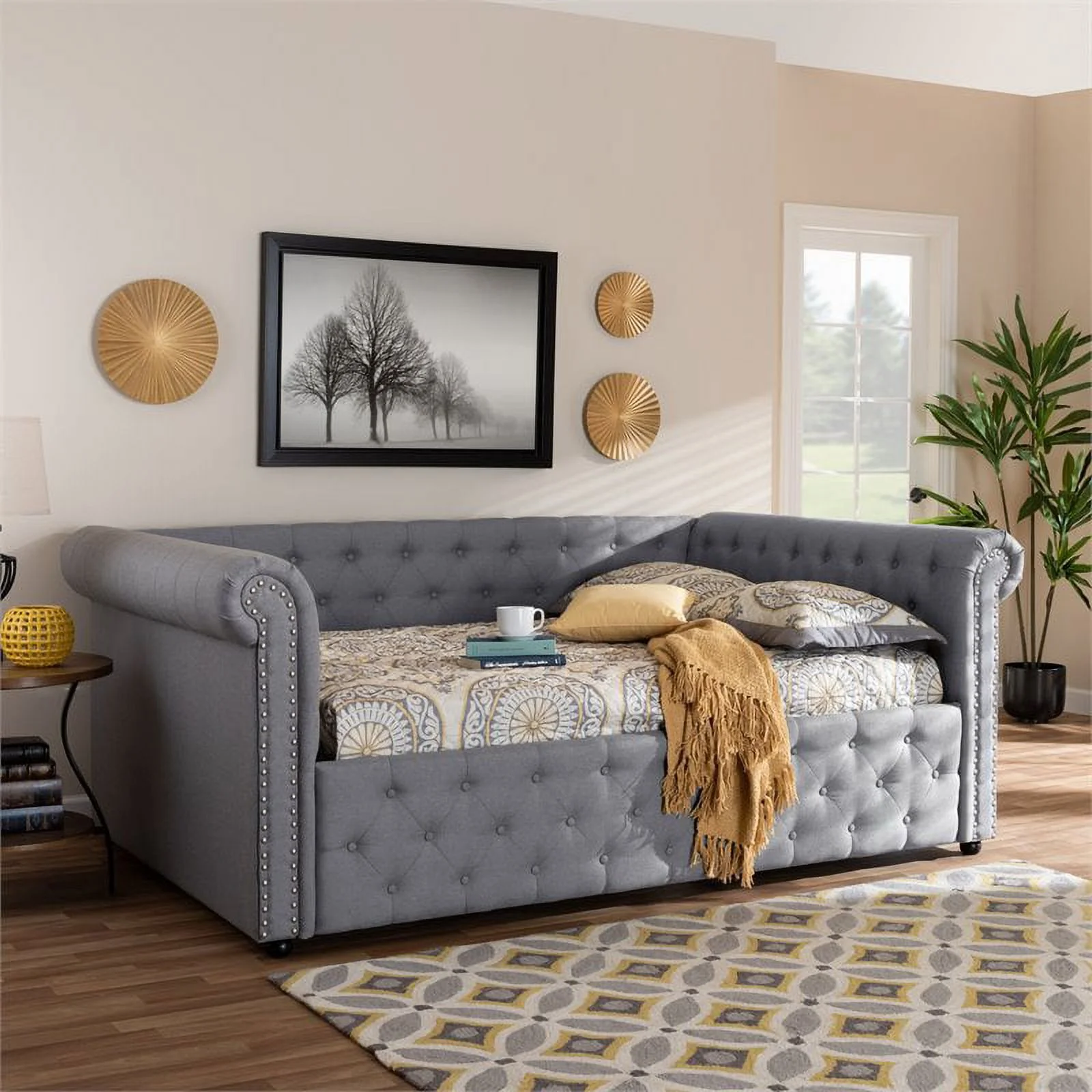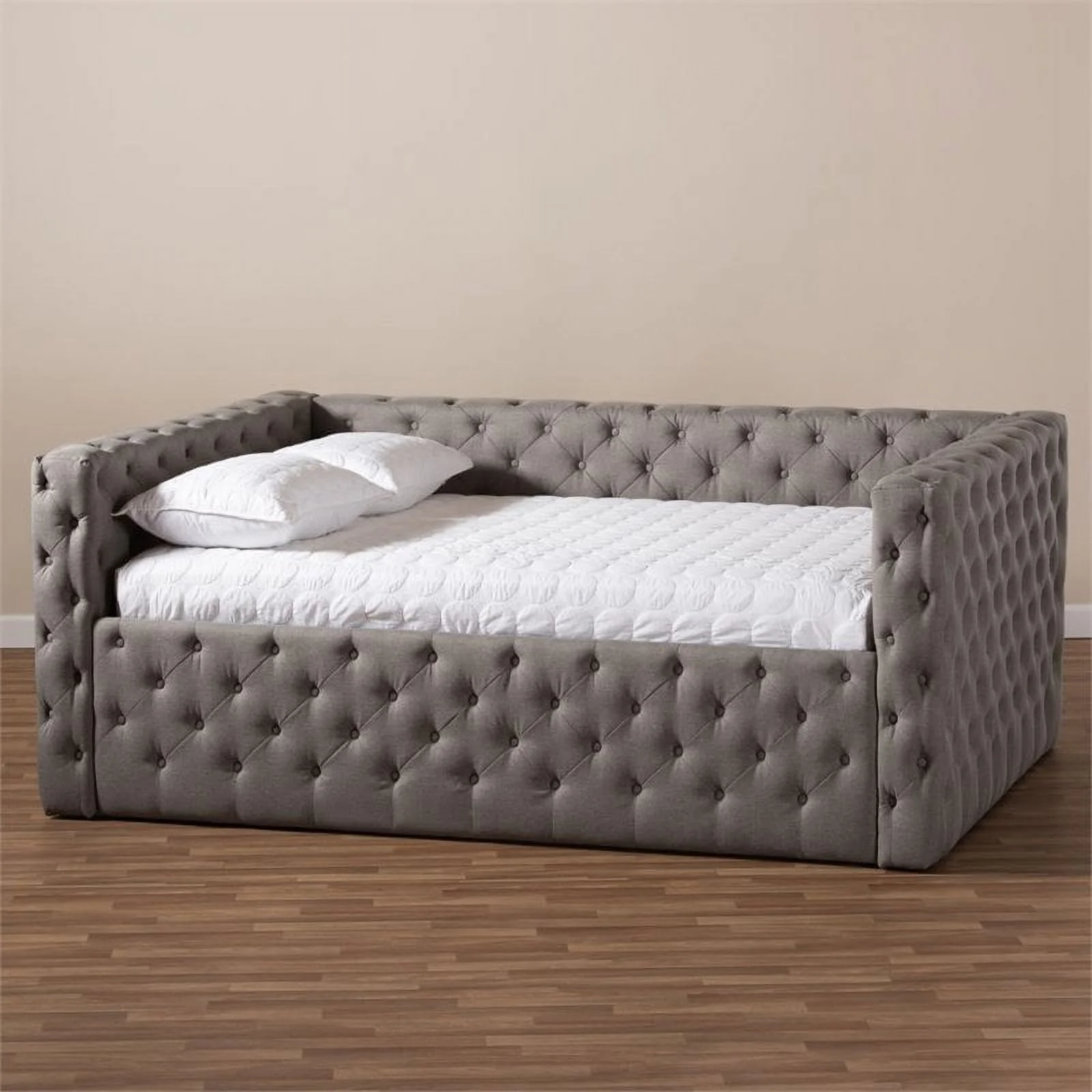 Bowery Hill Traditional Velvet Crystal Tufted Queen Daybed with Trundle in Gray