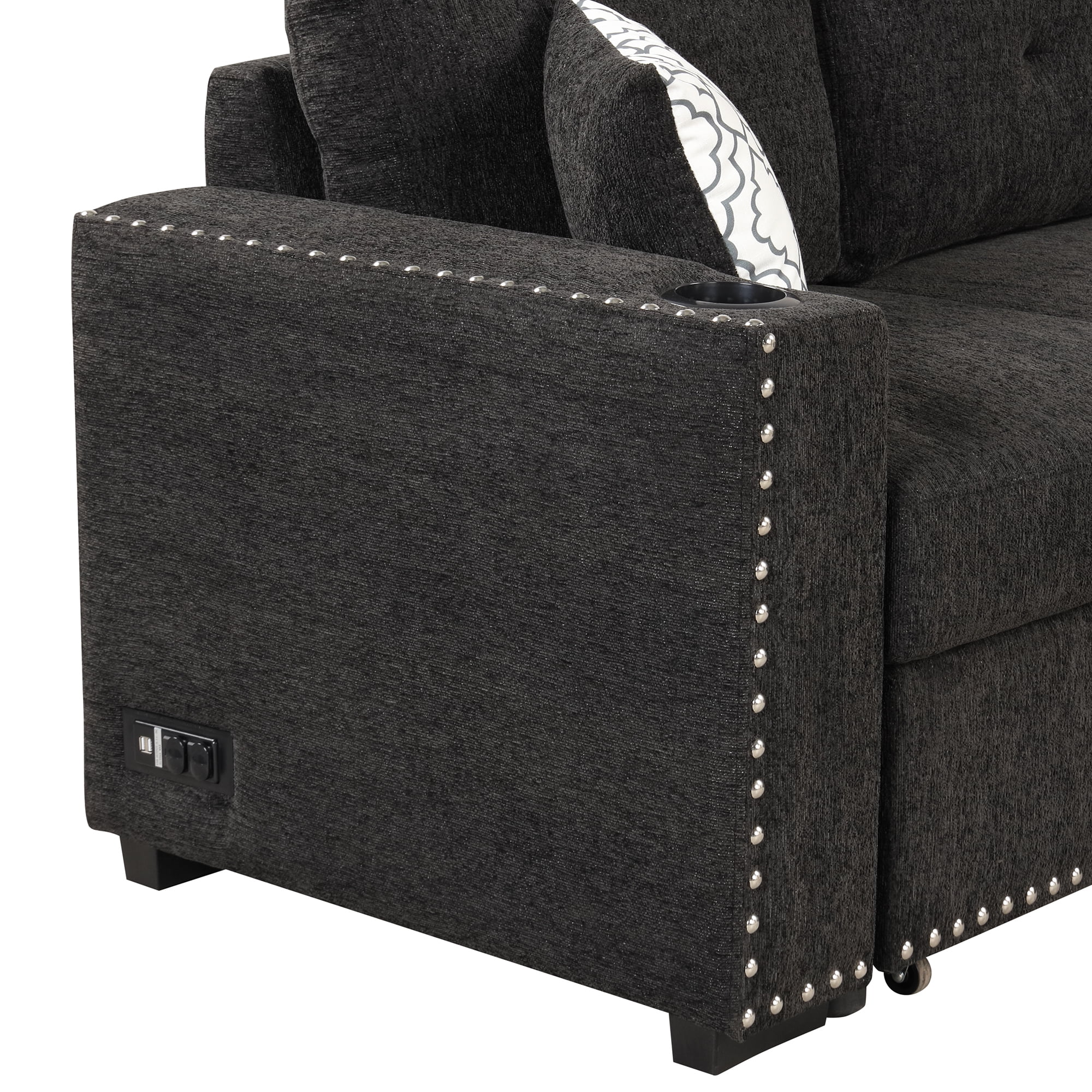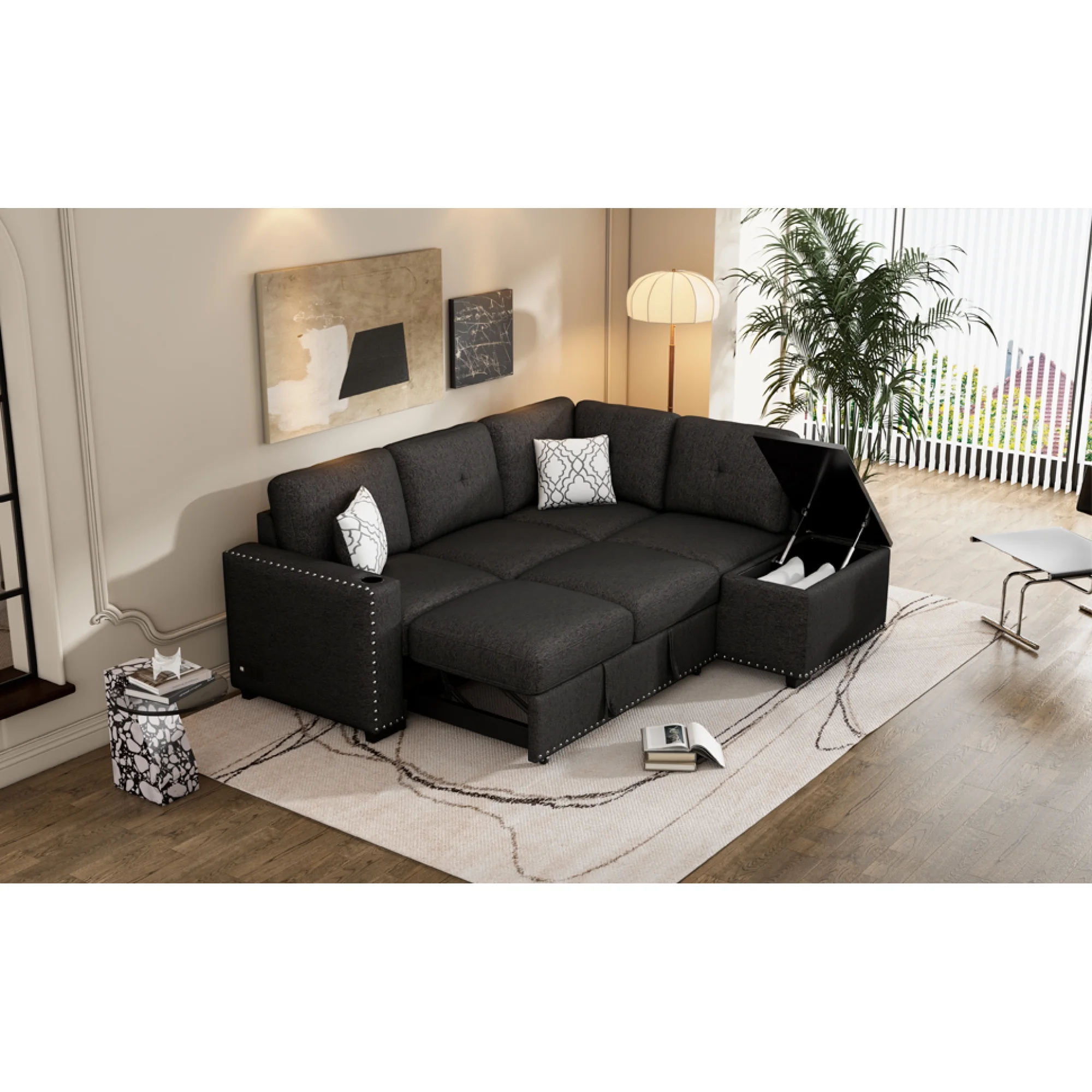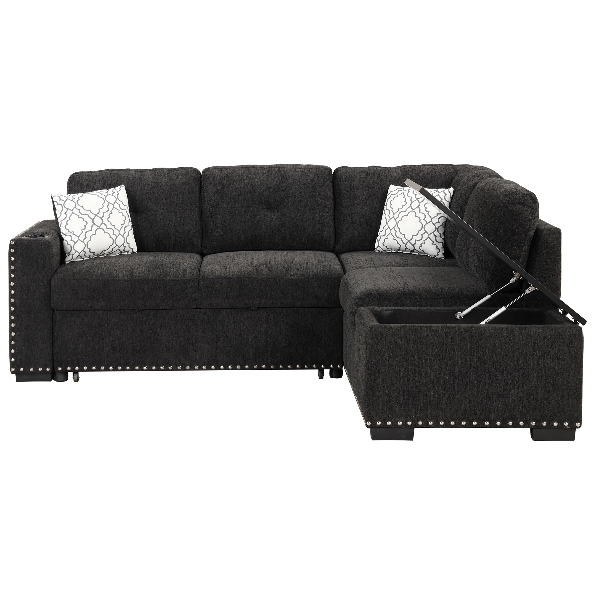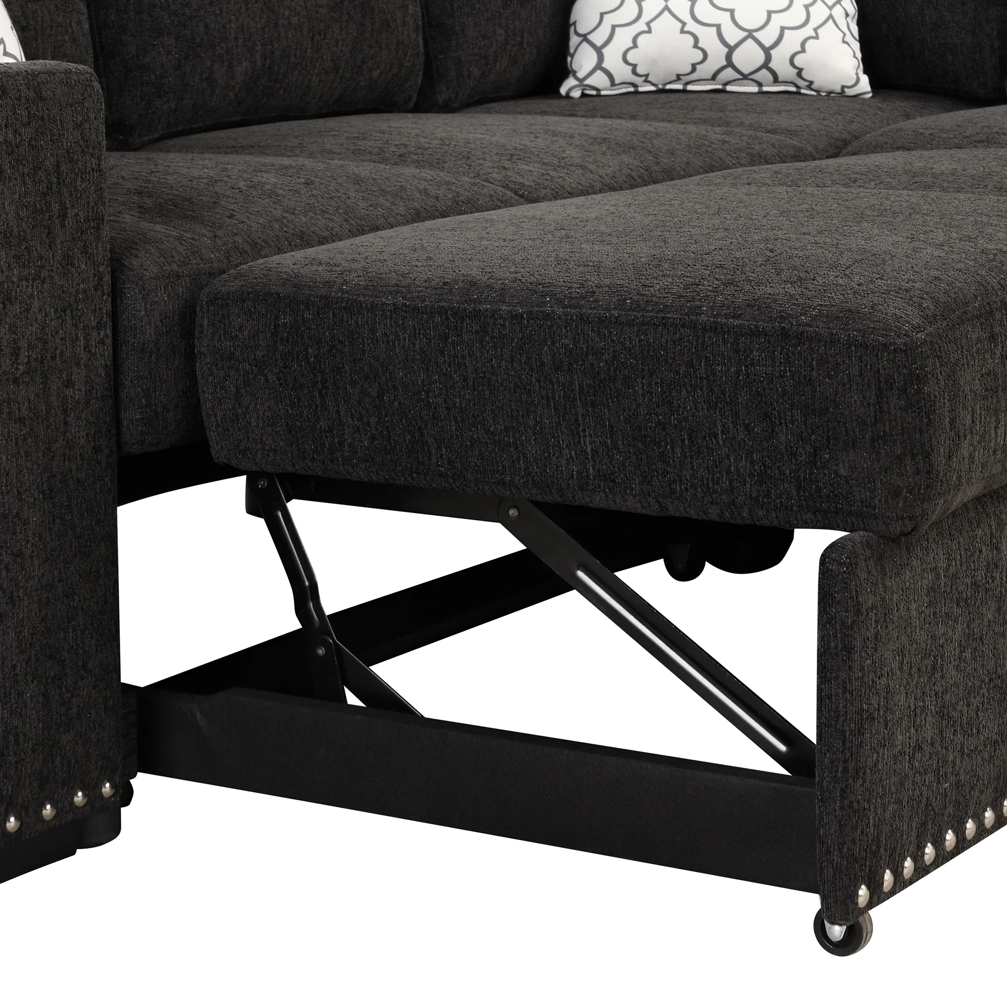 Reversible Sectional Pull-Out Sofa Bed L-Shaped Corner with Storage Chaise, Black