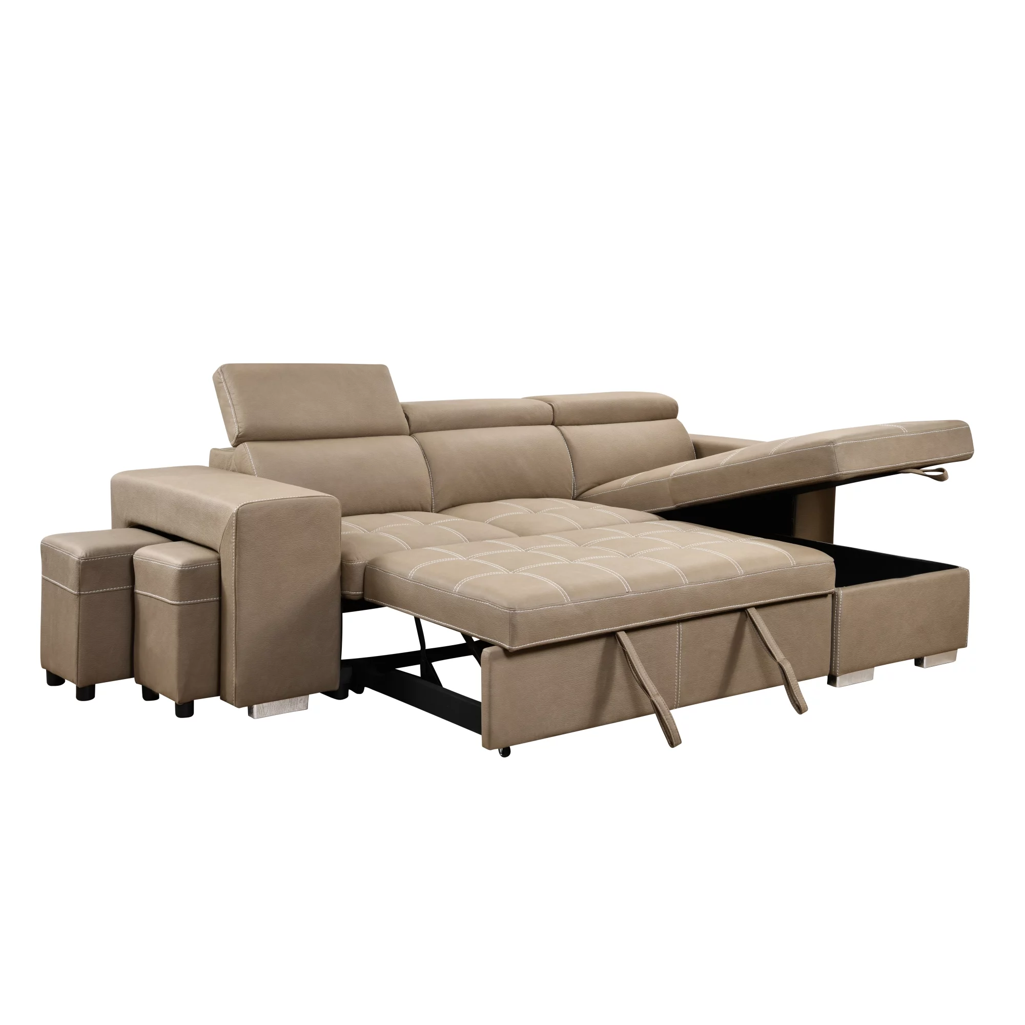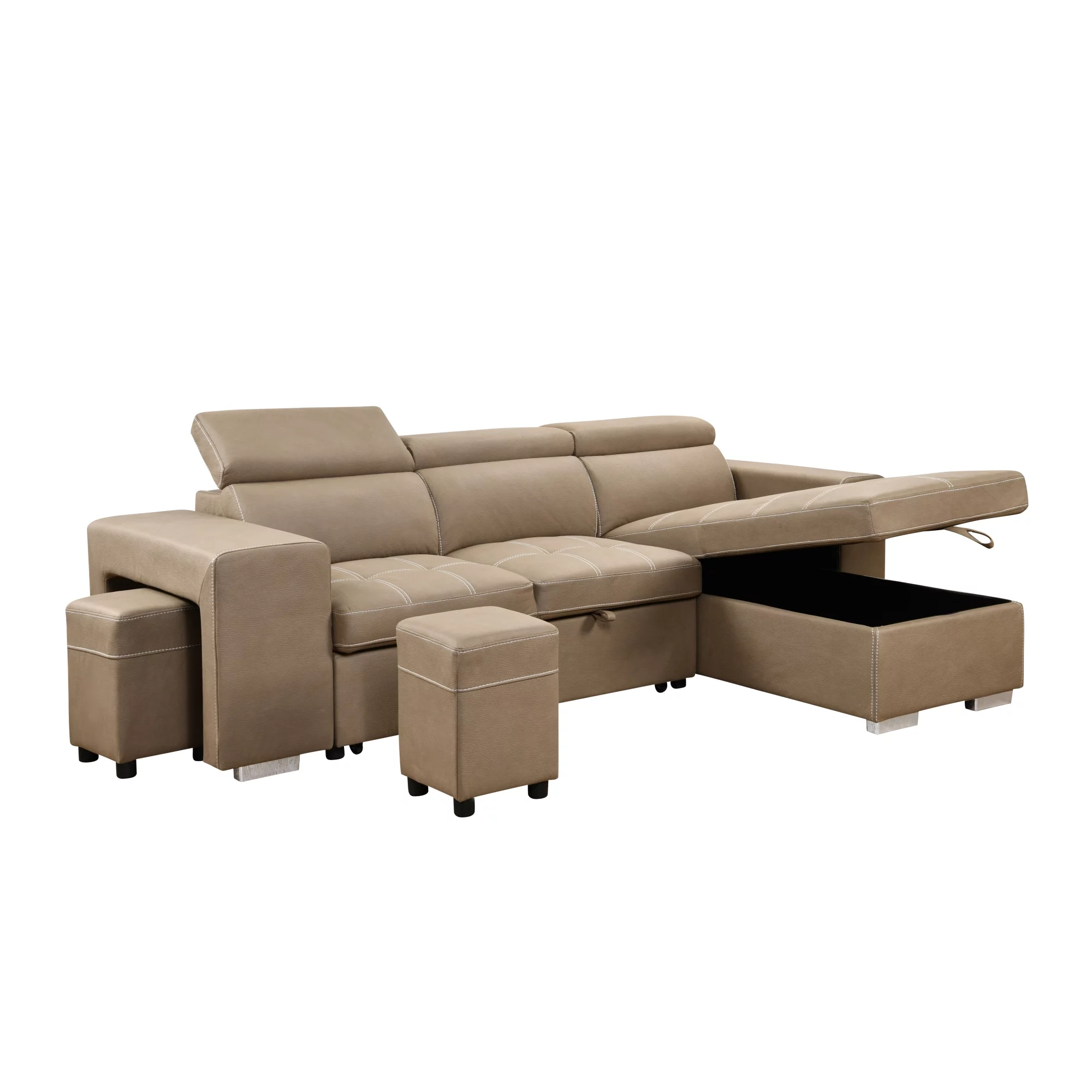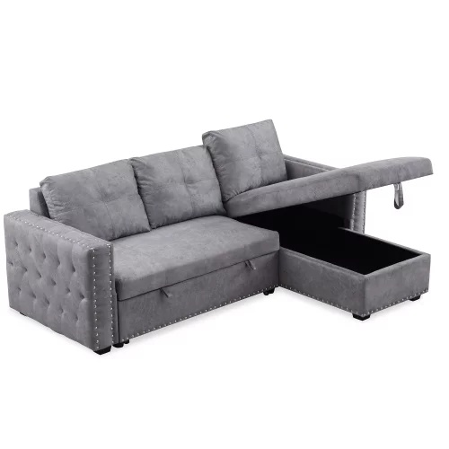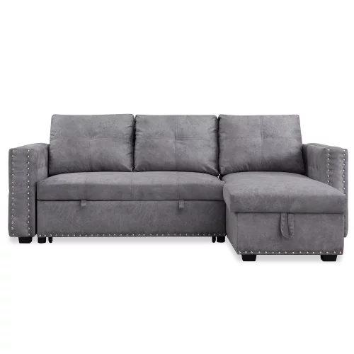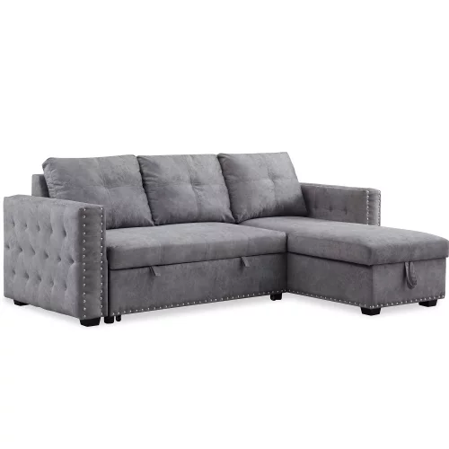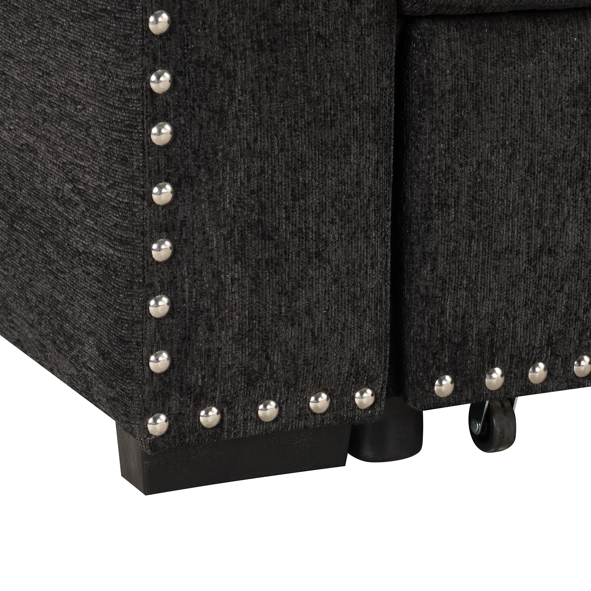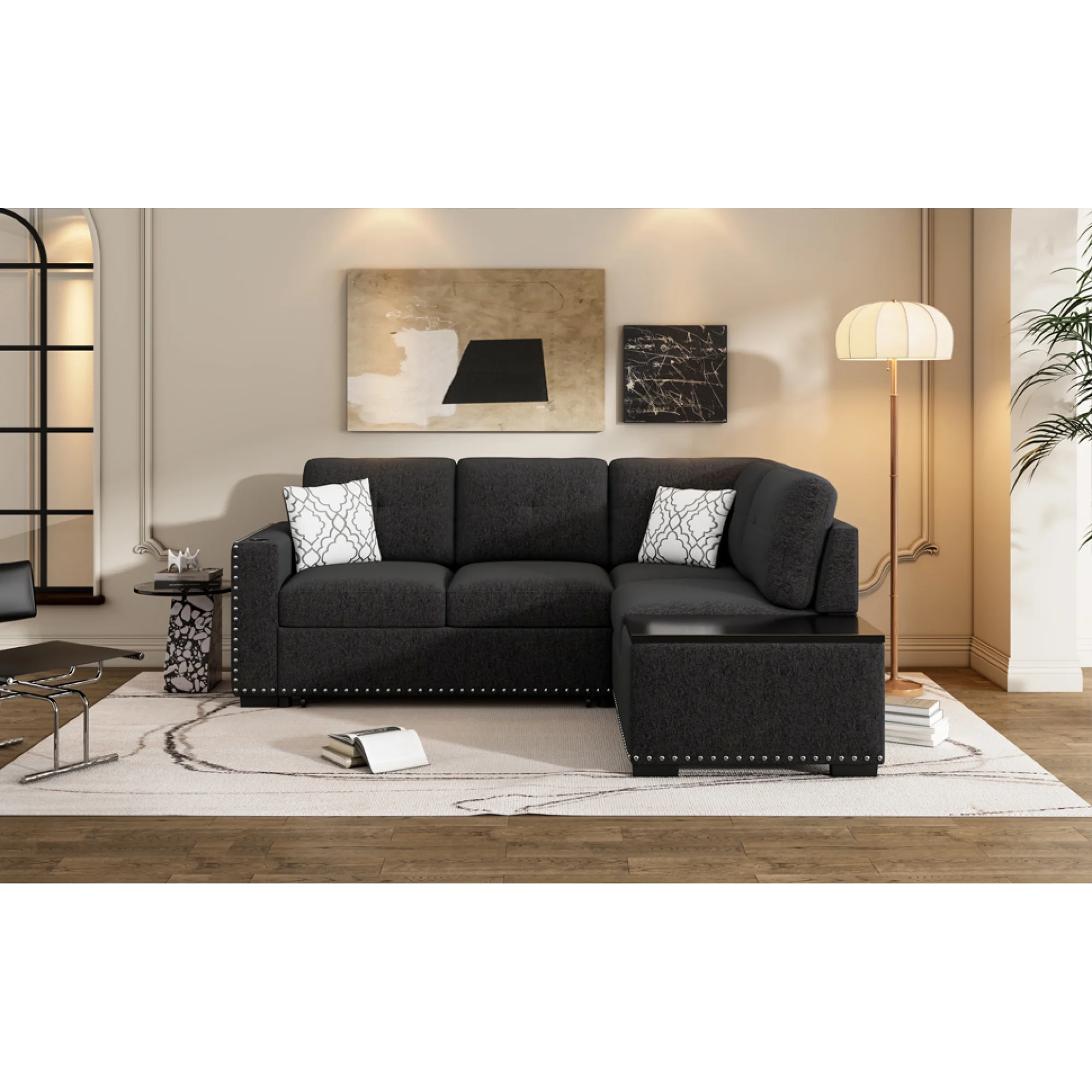 Reversible Sectional Pull-Out Sofa Bed L-Shaped Corner with Storage Chaise, Black