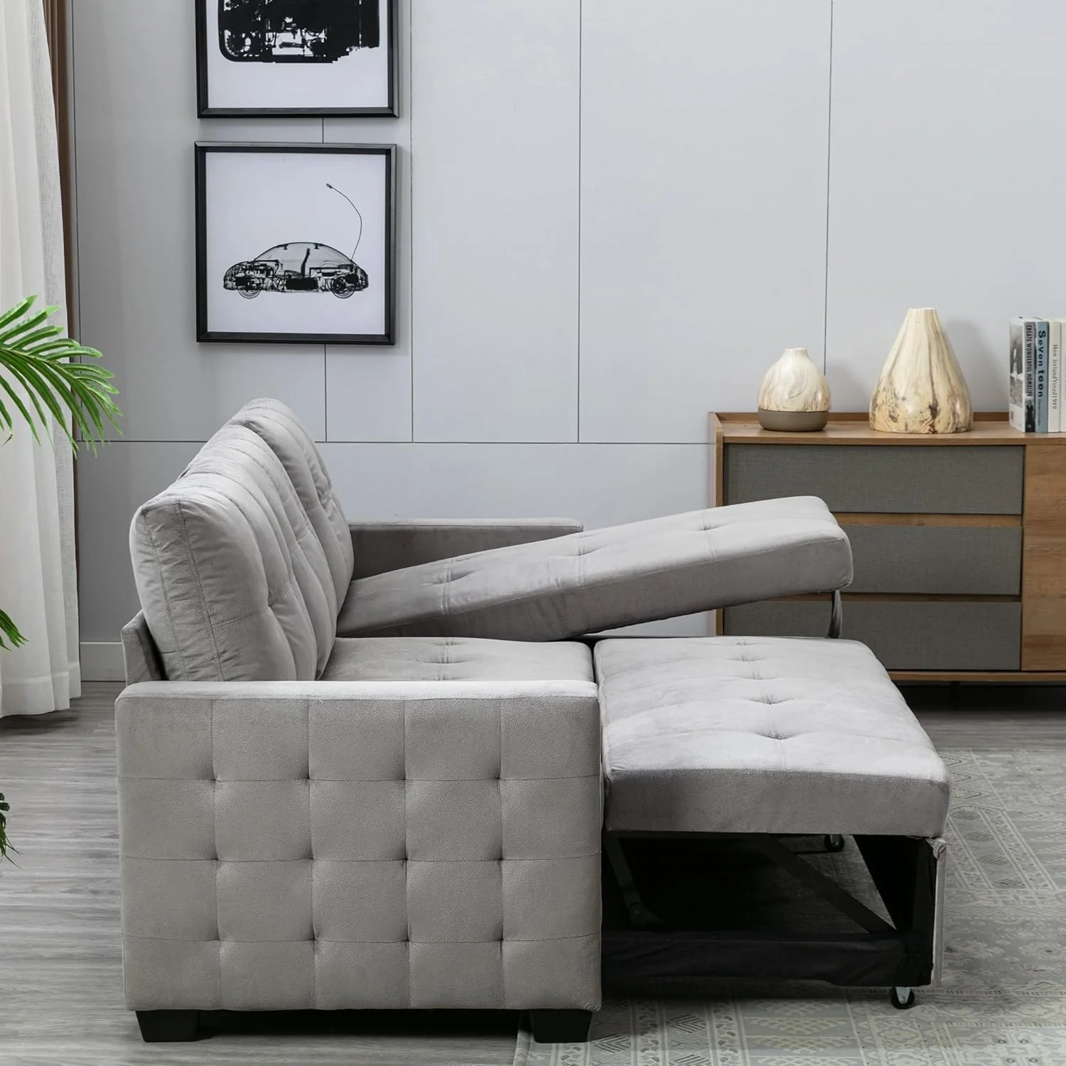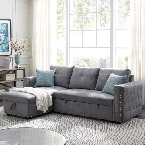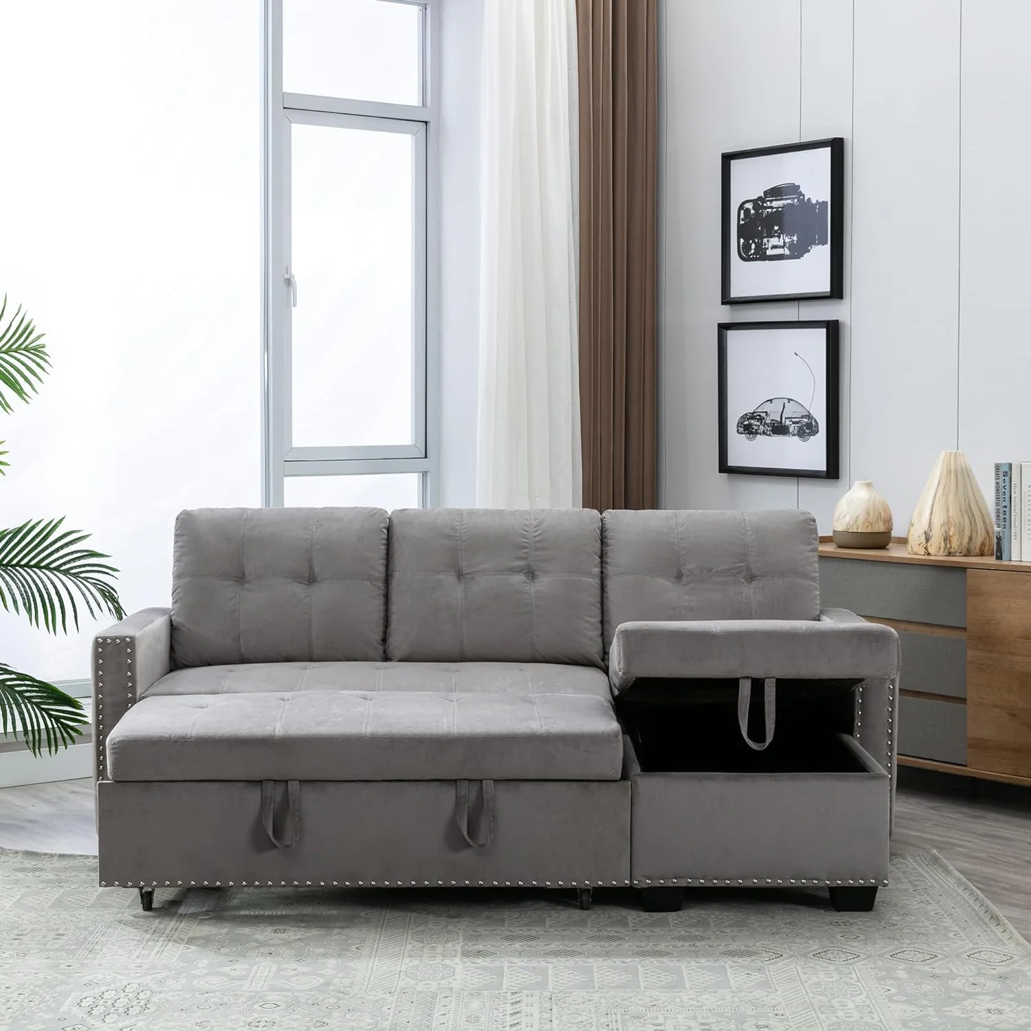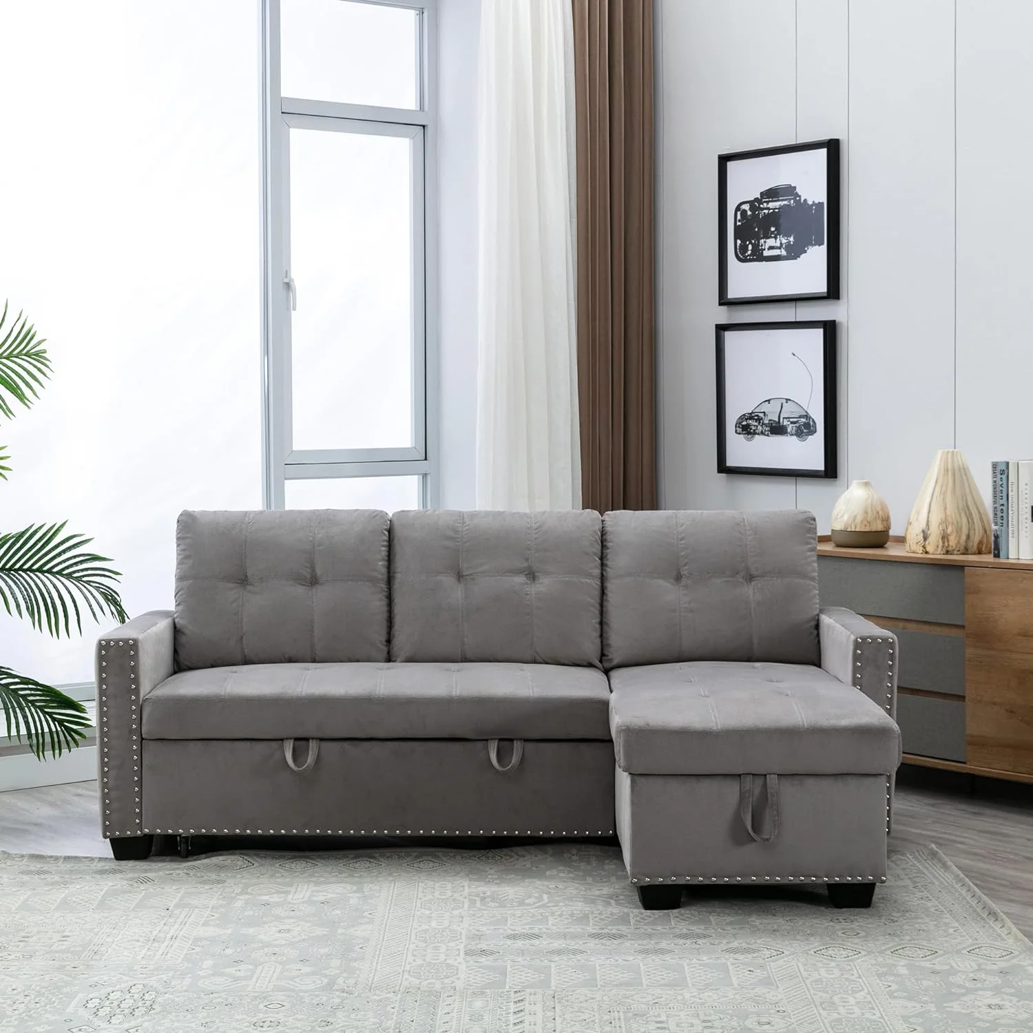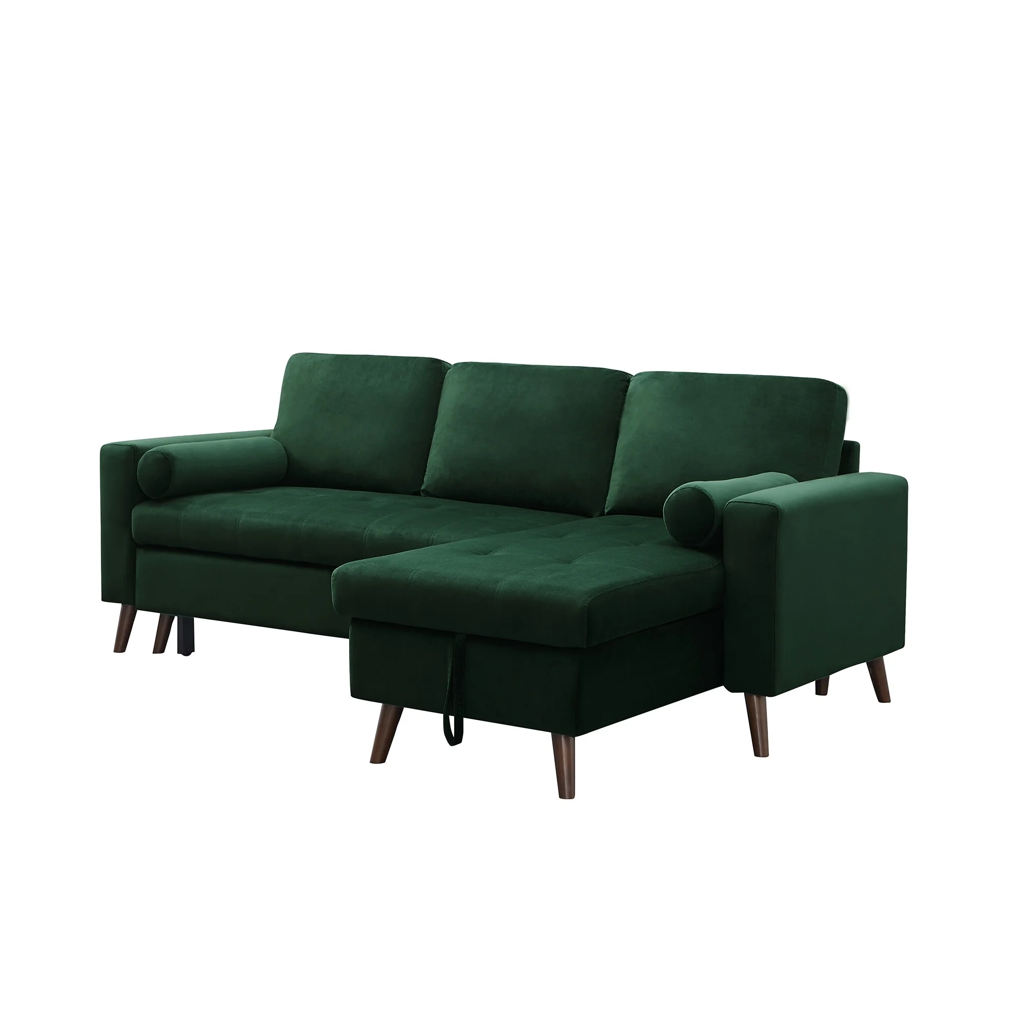 88" Reversible Pull out Sleeper Sectional Sofa Bed,Corner Sofa-bed with Storage Chaise Green