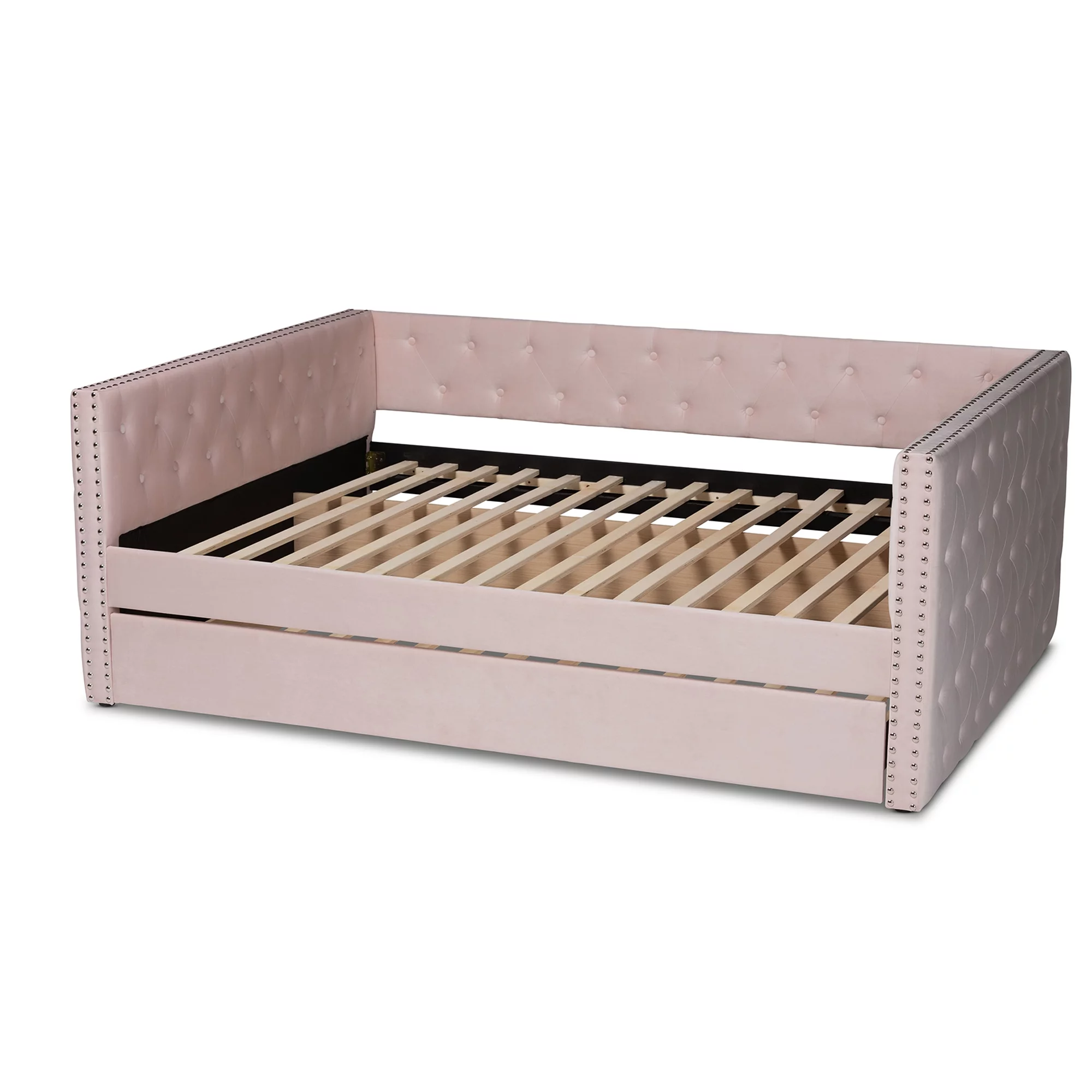Baxton Studio Larkin Contemporary Upholstered with Trundle Daybed, Queen, Pink