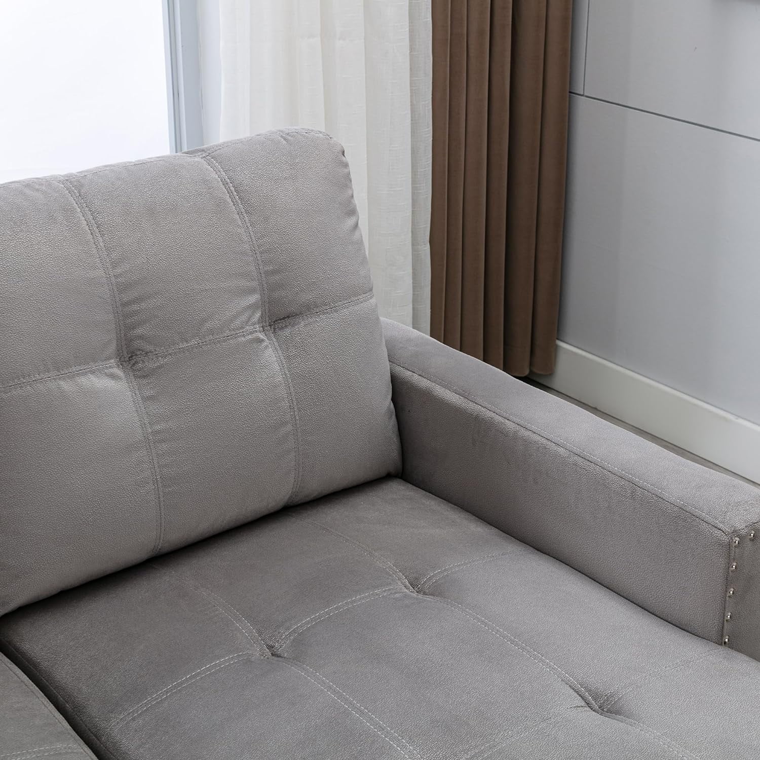 Kevinplus Convertible Sectional Sofa Fabric Couch with Chaise Reversible Corner Couch Furniture L-Shaped 5 Seater Sofas Bluish