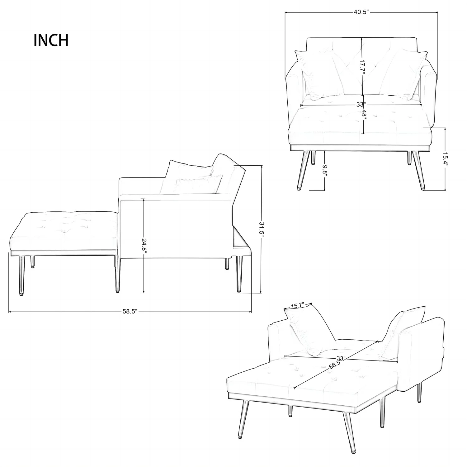 BSHTI Chaise Lounge,Convertible Chaise Futon Sofa Bed Upholstered Chaise Lounge for Livingroom(Green)