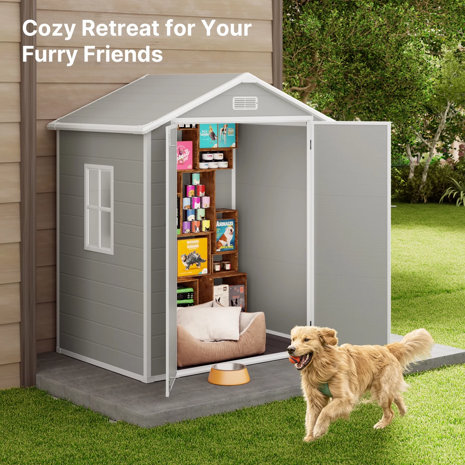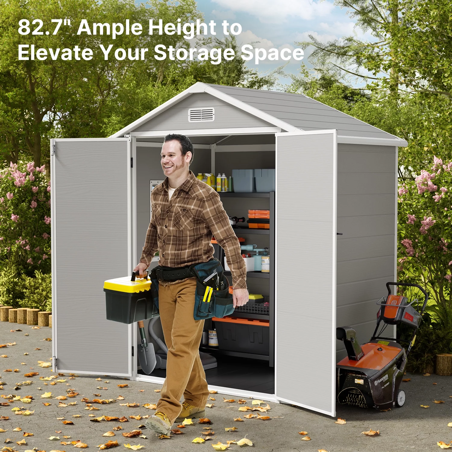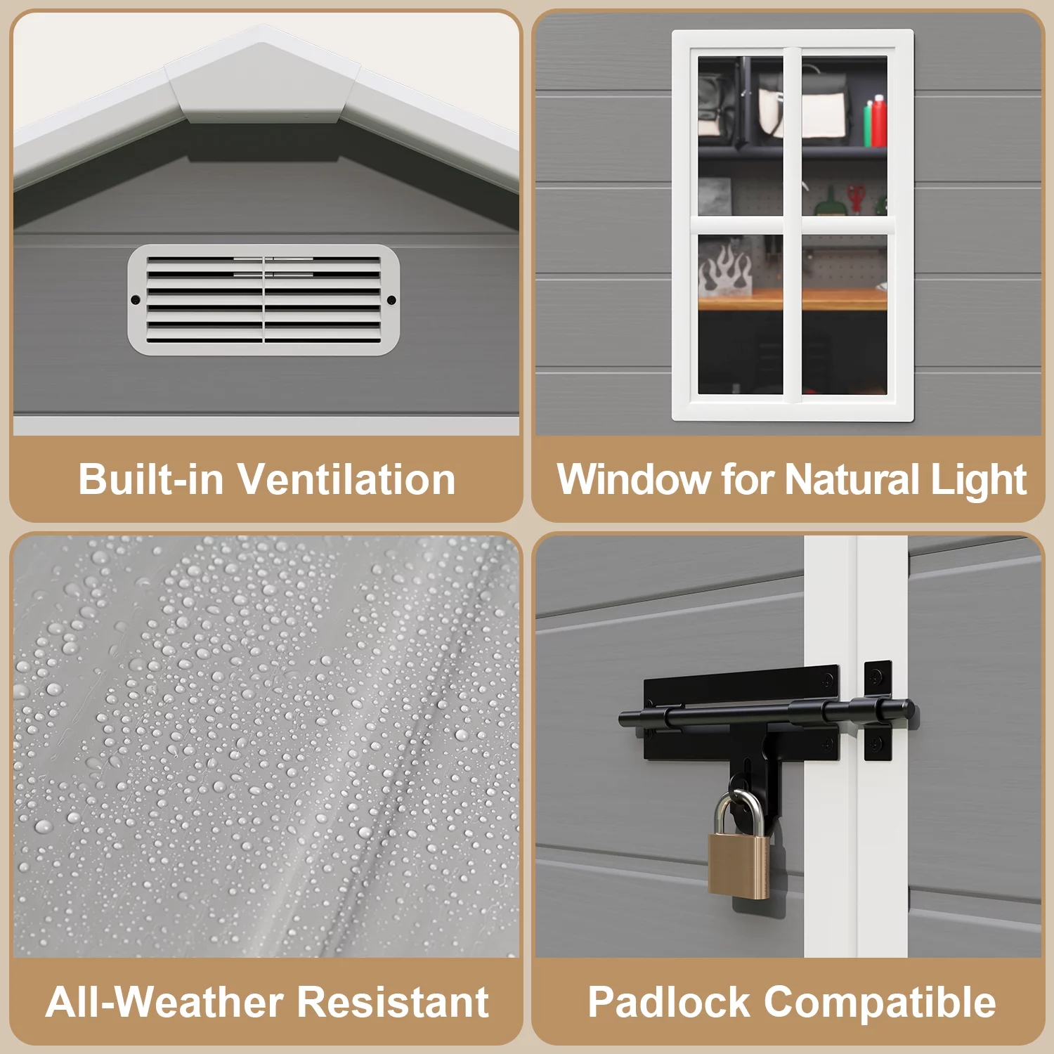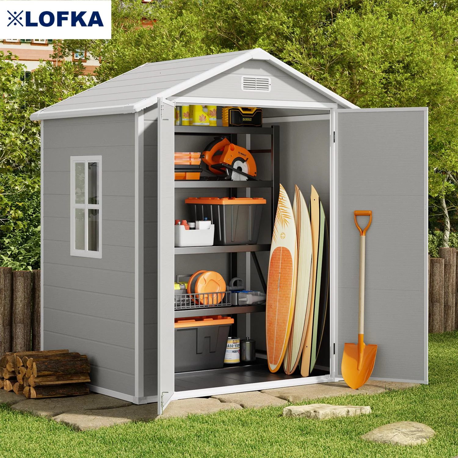 Outdoor Storage Shed, Lofka 6' x 4' Resin Outdoor Shed, Gray/White