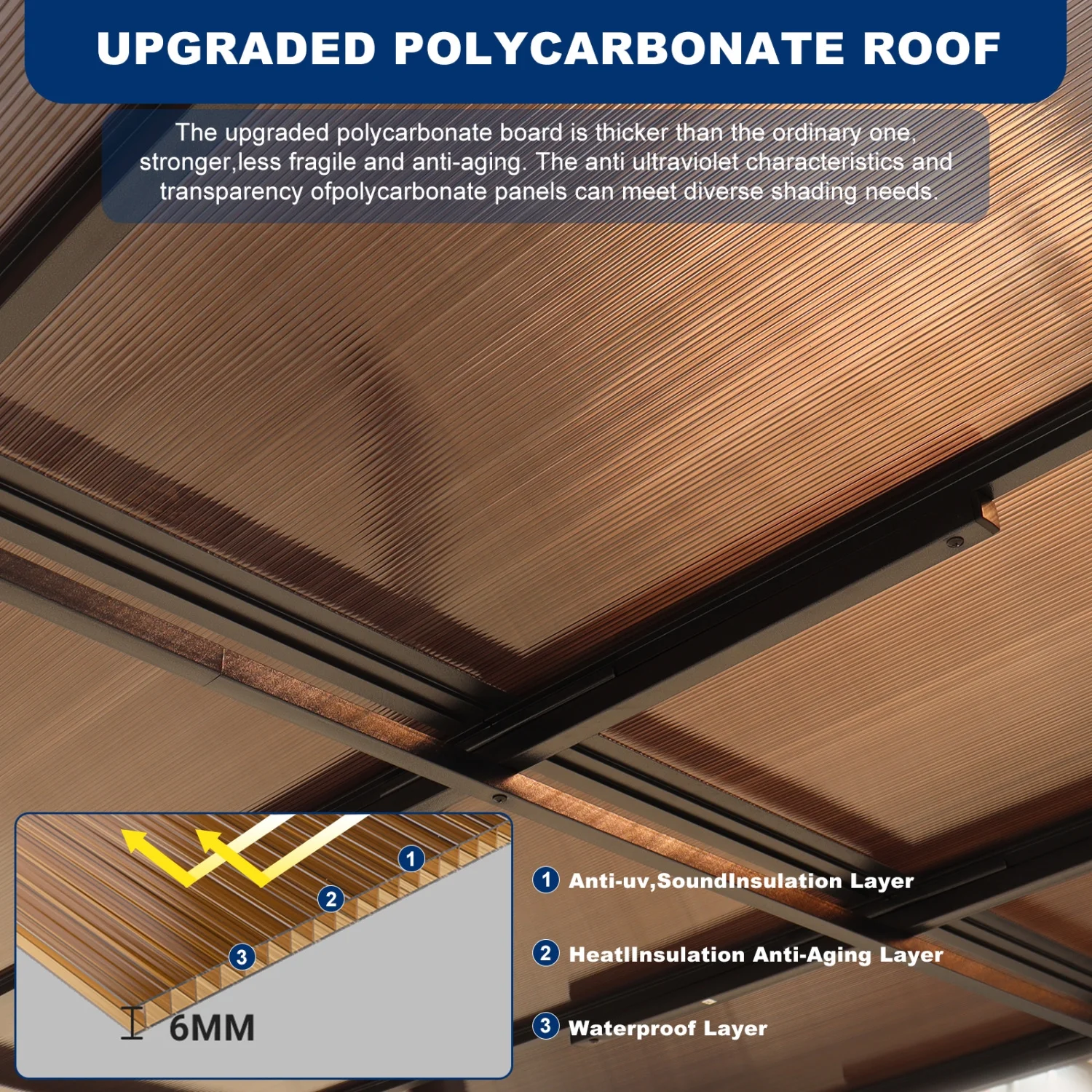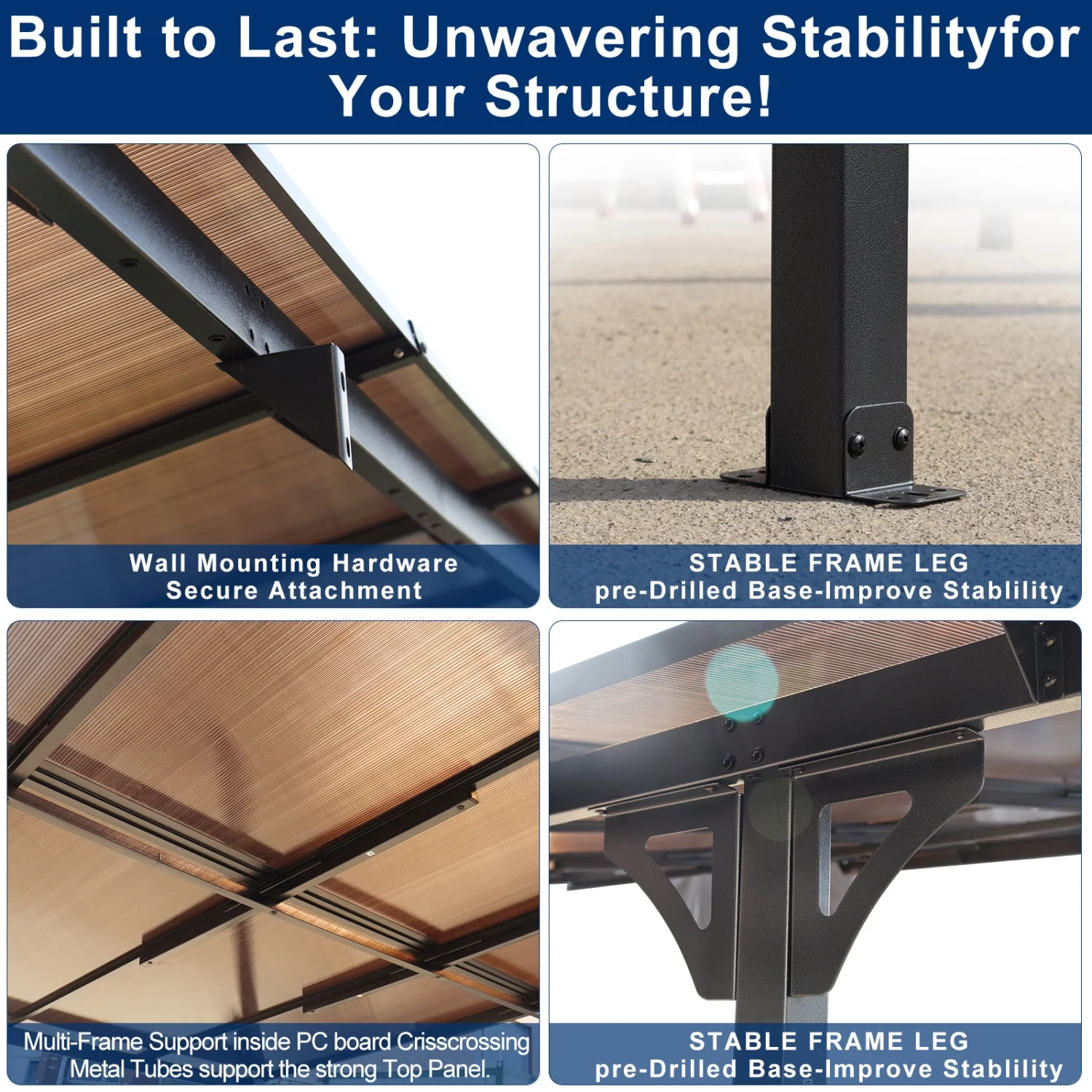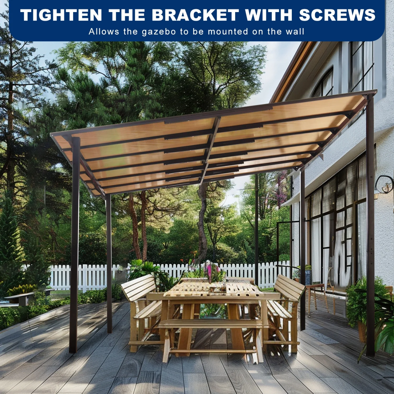 Large Heavy Duty Wall-Mounted Lean to Metal Awning Gazebo with Roof for Patio Decks Backyard - 10‘ x 12‘ Outdoor Pergola Gazebo
