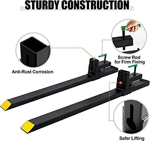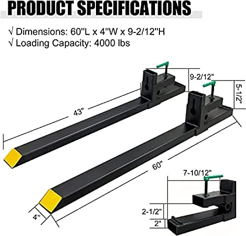 60''4000LBS Clamp On Pallet Forks, Bucket Pallet Fork for Tractor Loader Skid Steer,60''Without Stabilizer Bar 4000LBS