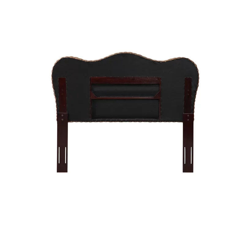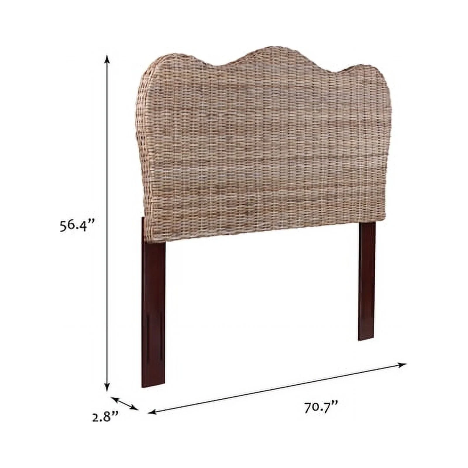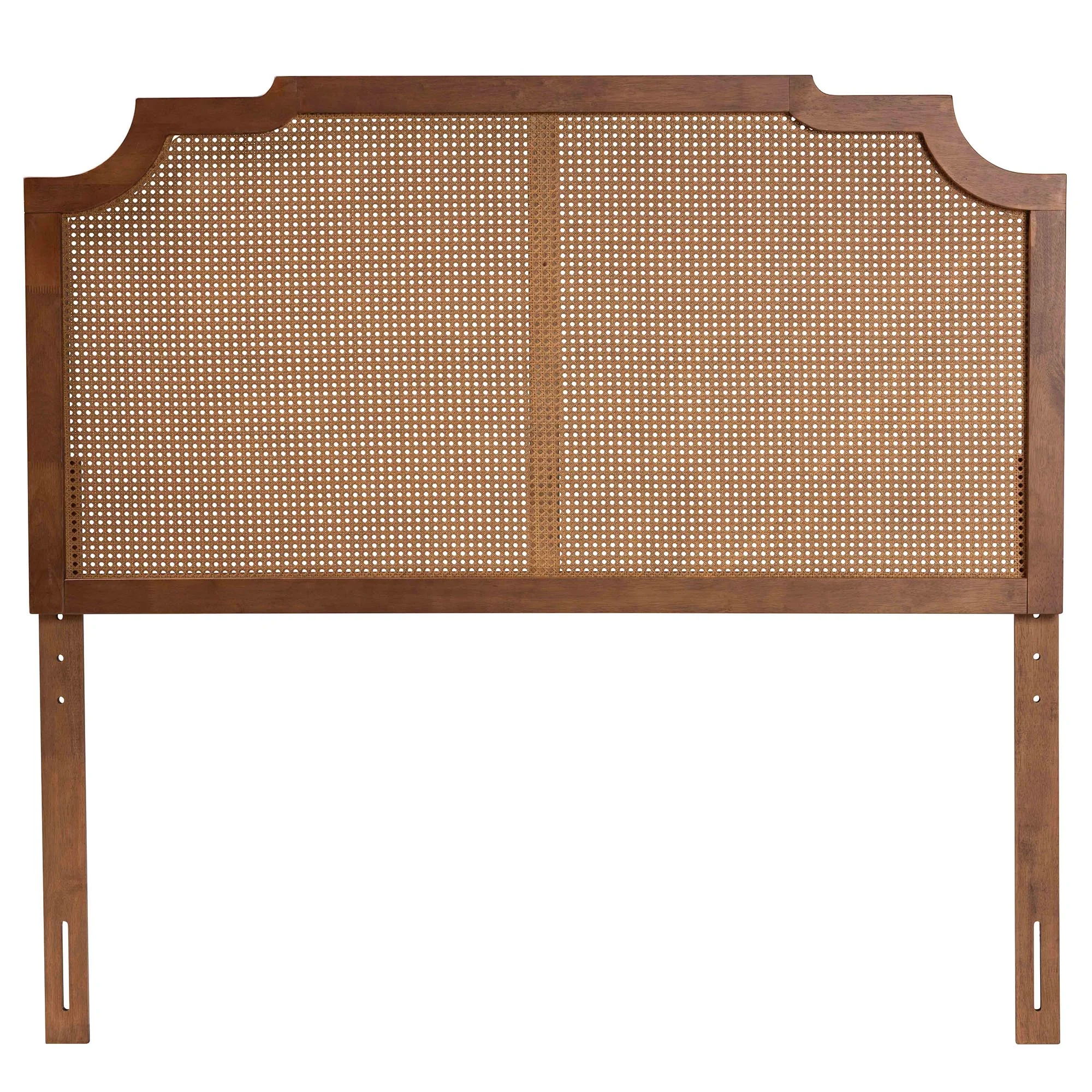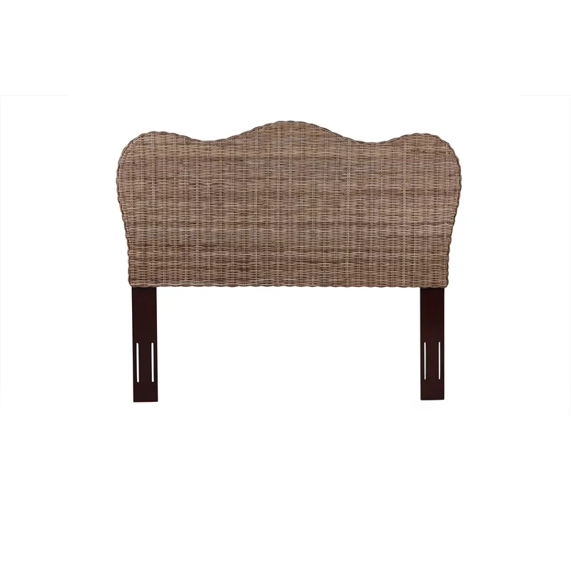 Traditional Ash Walnut Finished Wood and Synthetic Rattan Queen Size Arched Headboard, Ash Walnut