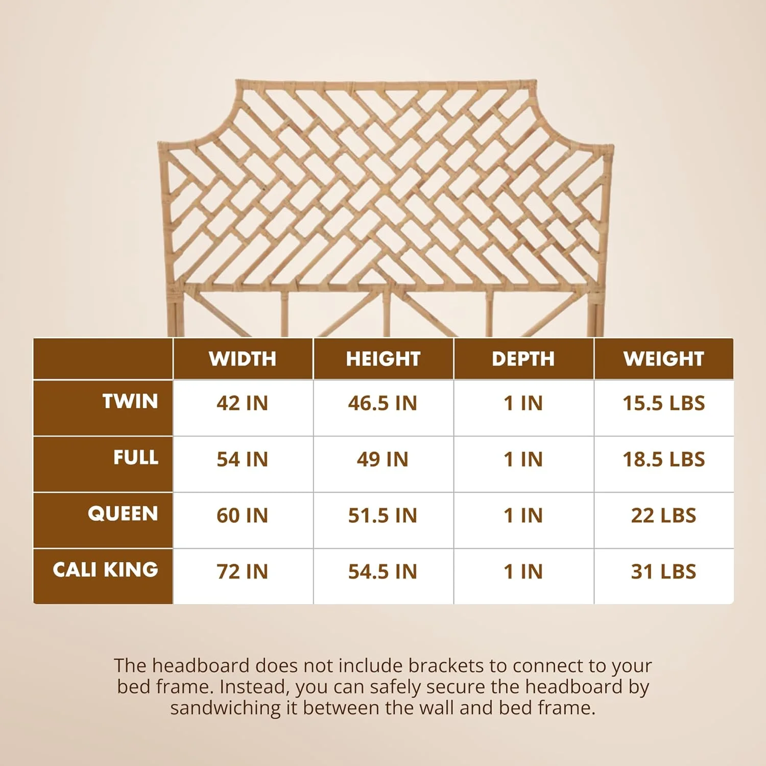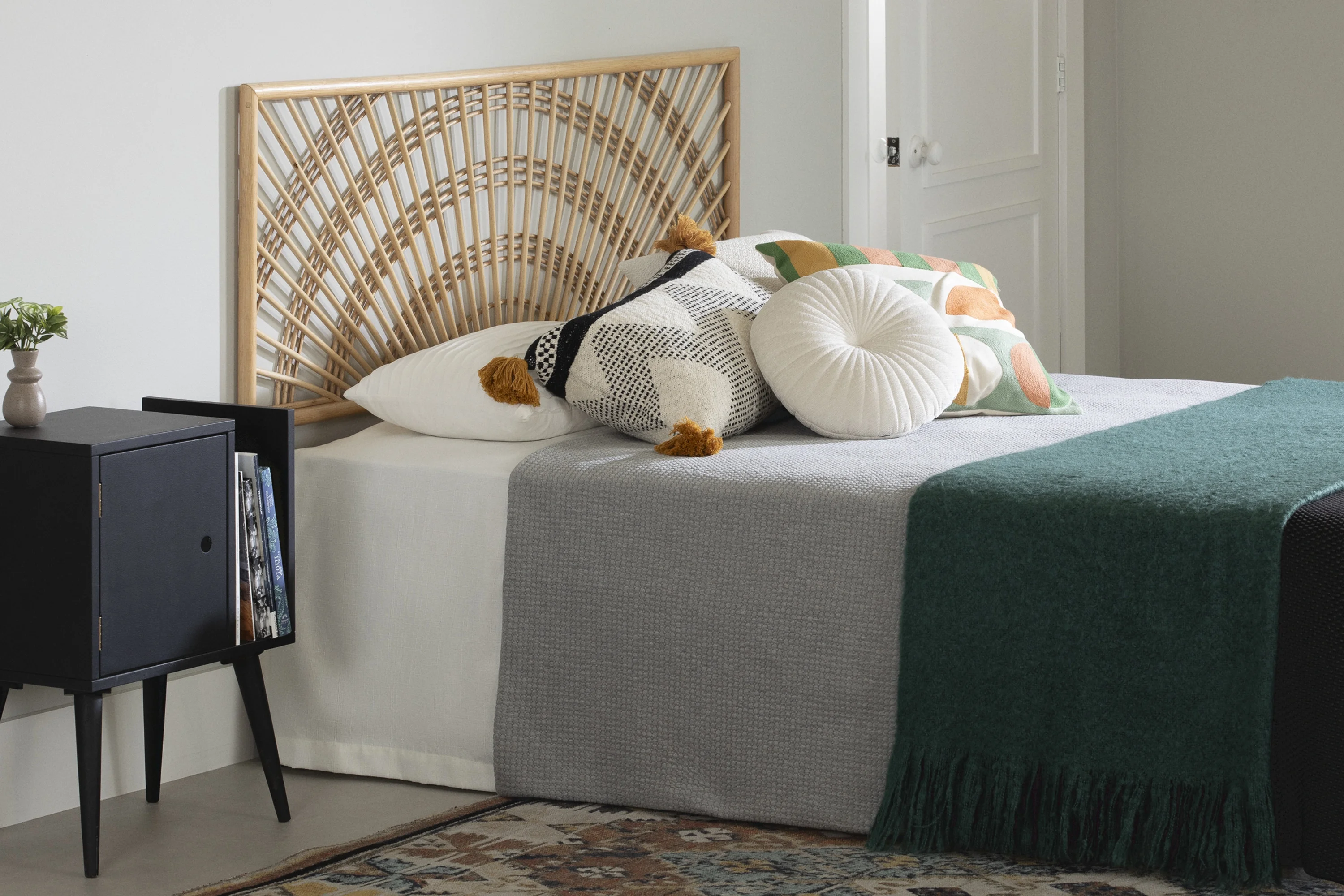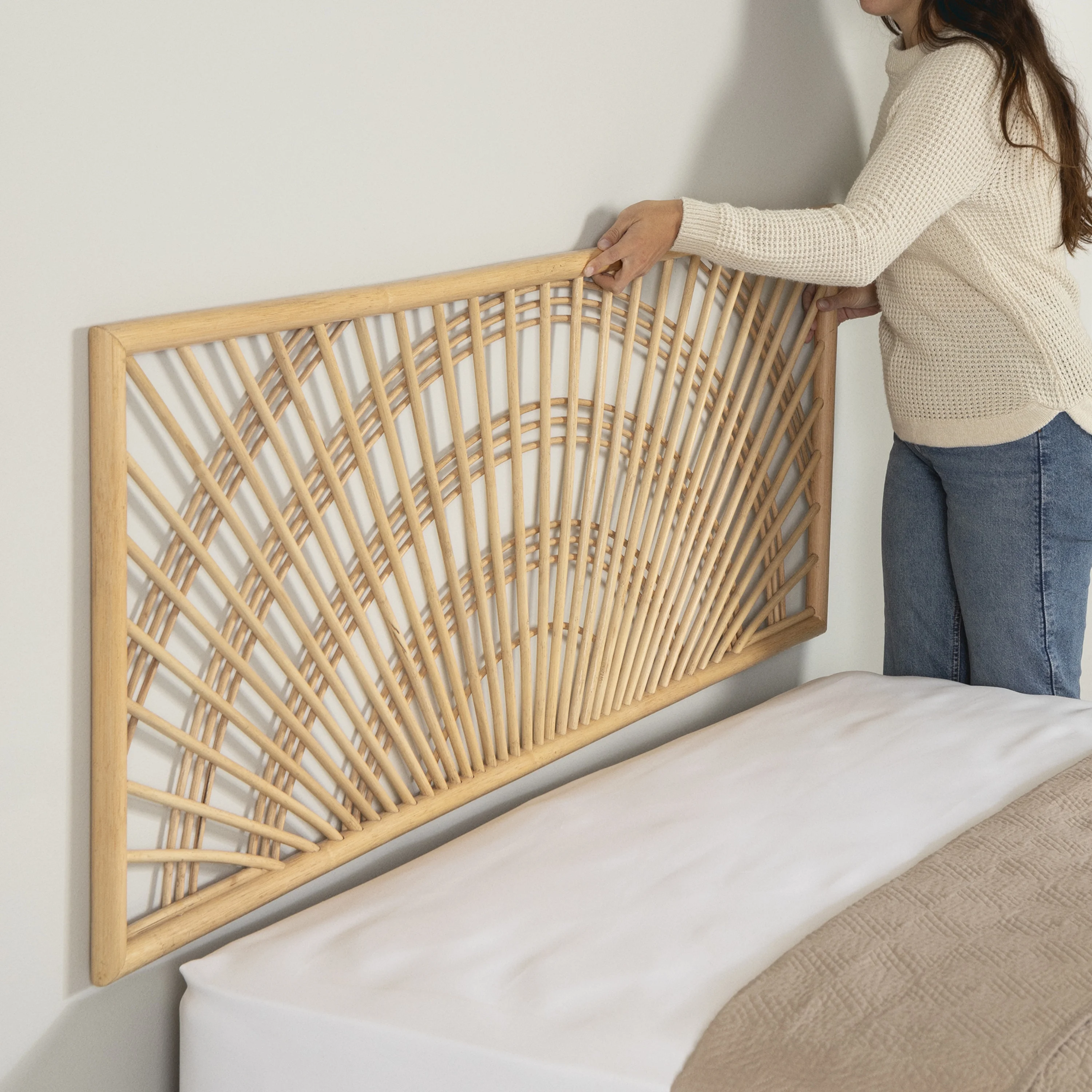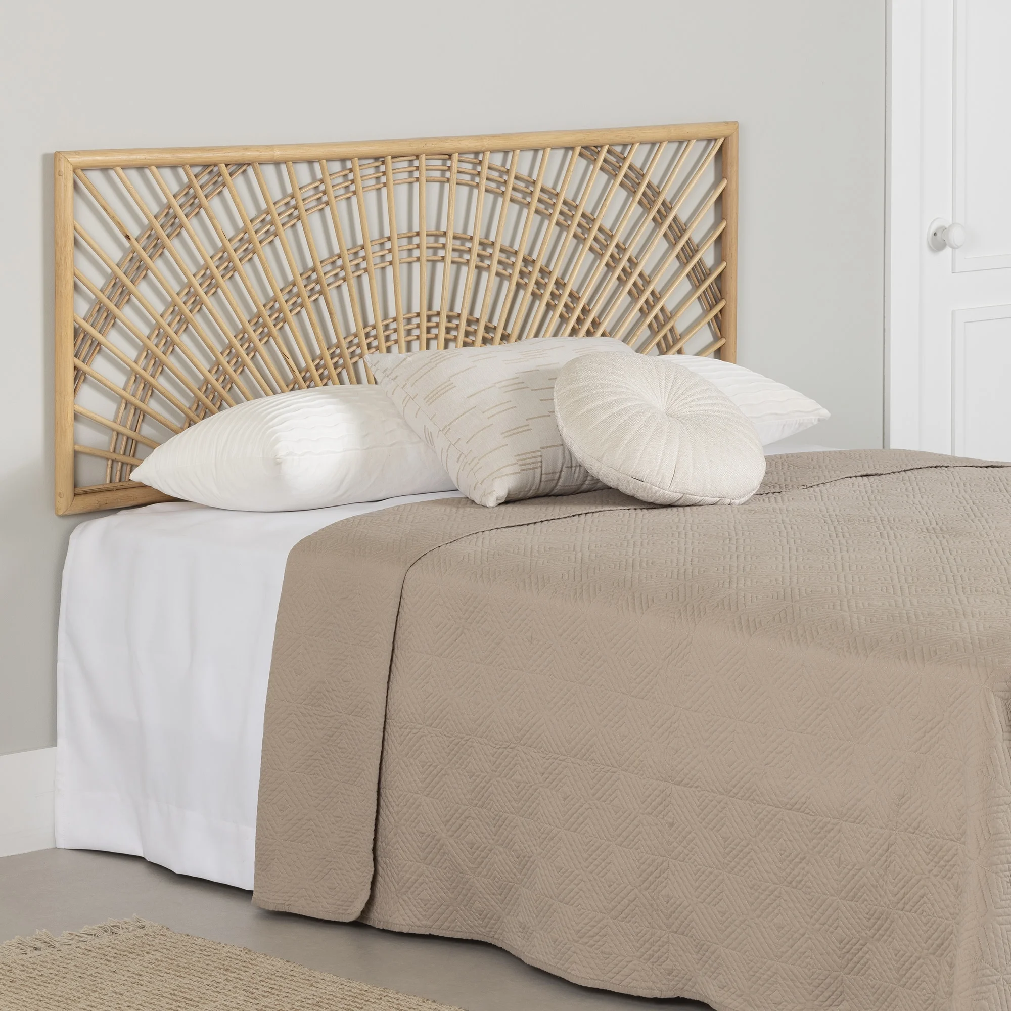 bali & pari Jasmine Bohemian Natural Rattan King Size Standalone Headboard
