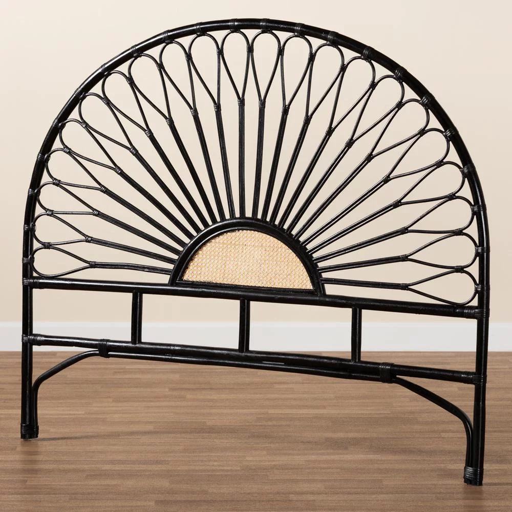 Baxton Studio Perenna Two-Tone Black and Brown Rattan Queen Standalone Headboard