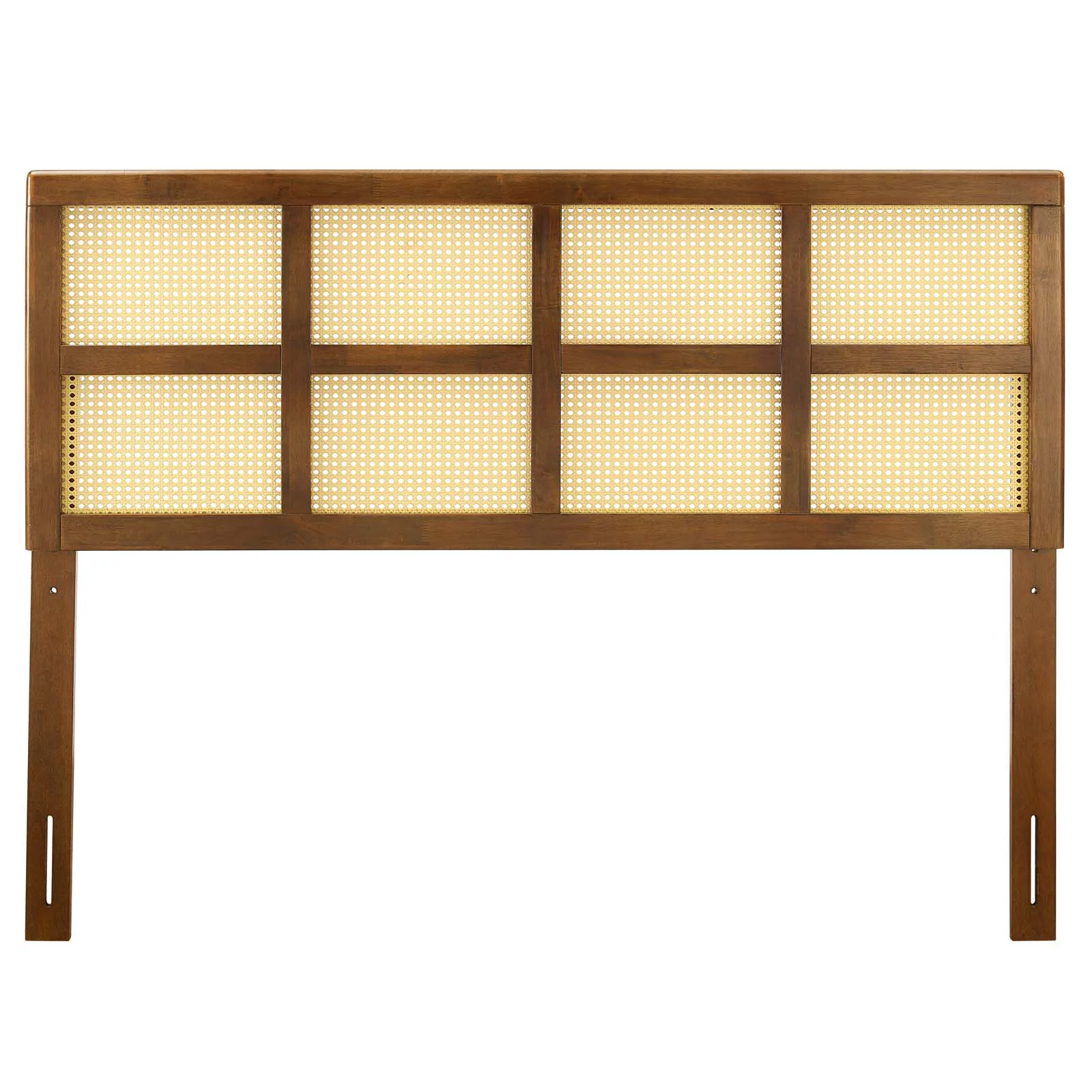 Harris Mid-Century Modern Ash Walnut Finished Wood and Synthetic Rattan King Size Headboard