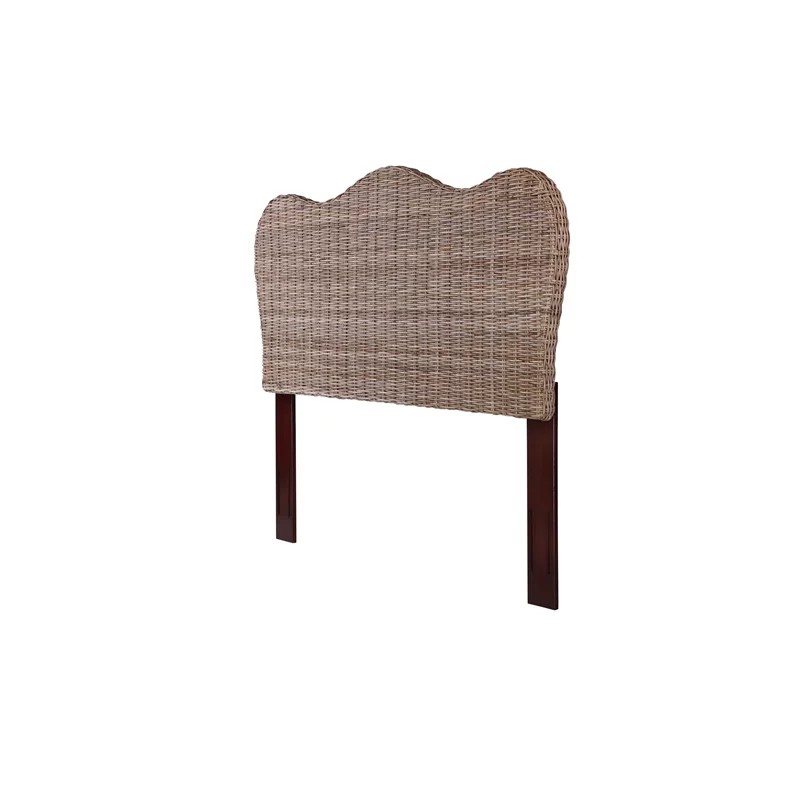 Traditional Ash Walnut Finished Wood and Synthetic Rattan King Size Arched Headboard