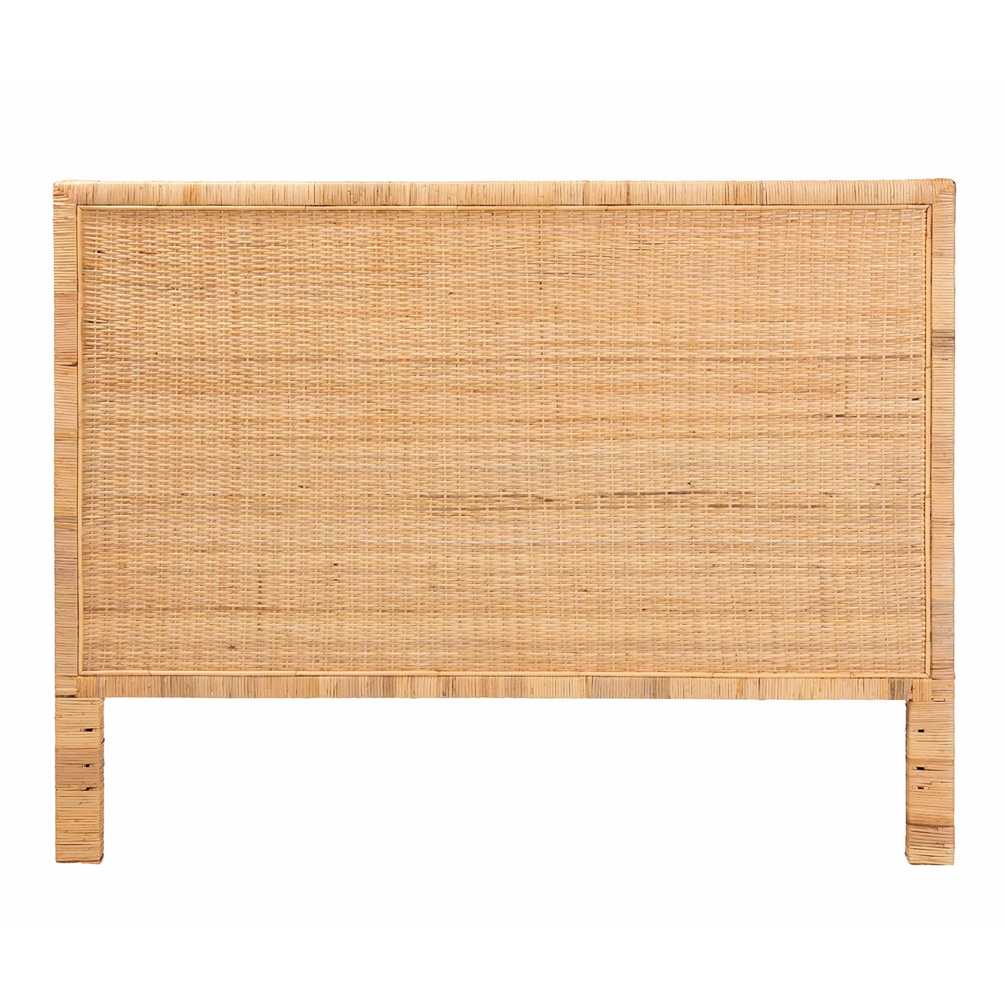 bali & pari Marlette Modern Bohemian Natural Brown Rattan Queen Size Standalone Headboard