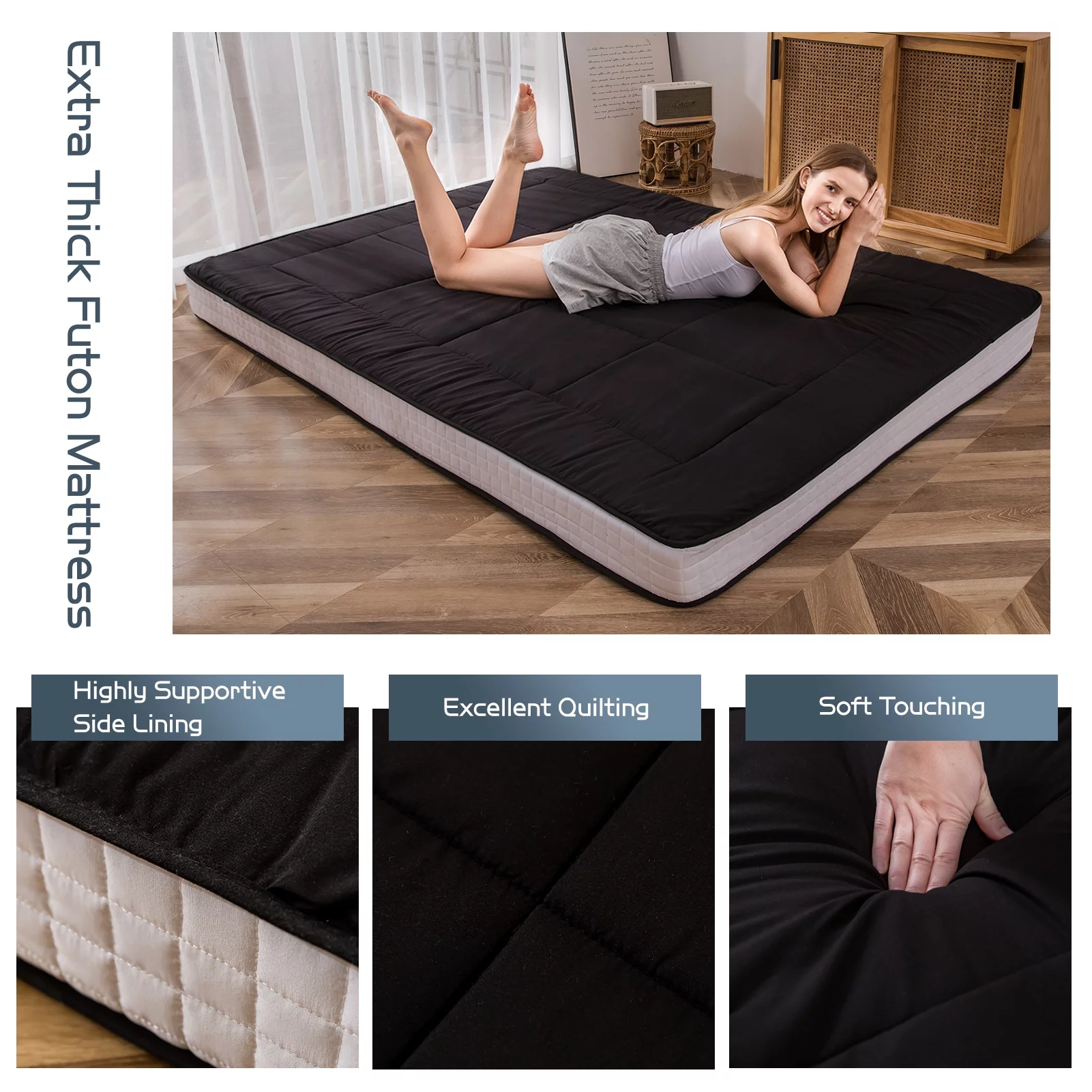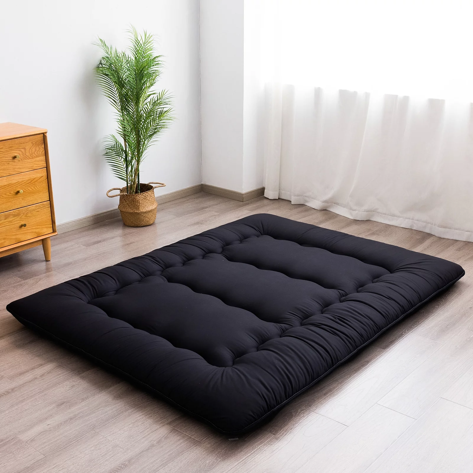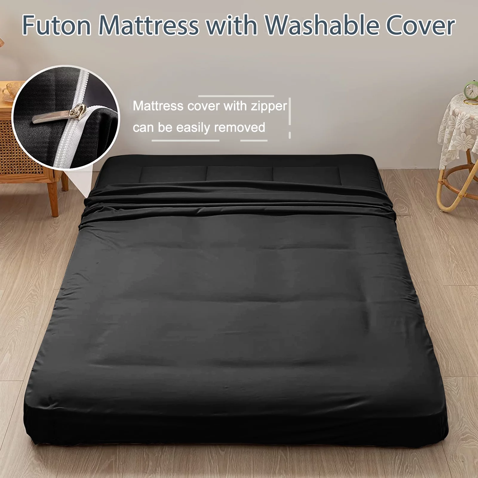 Futon Mattress Japanese Floor Mattress Thicken Futon Sleeping Pad for Guest,Lounger and Tavel,Black,Twin Size