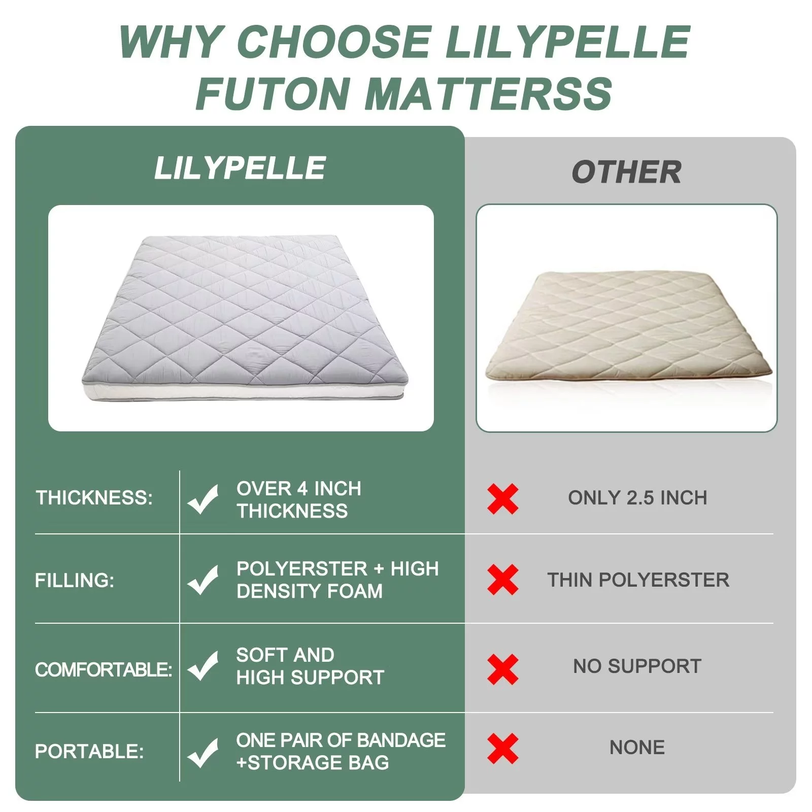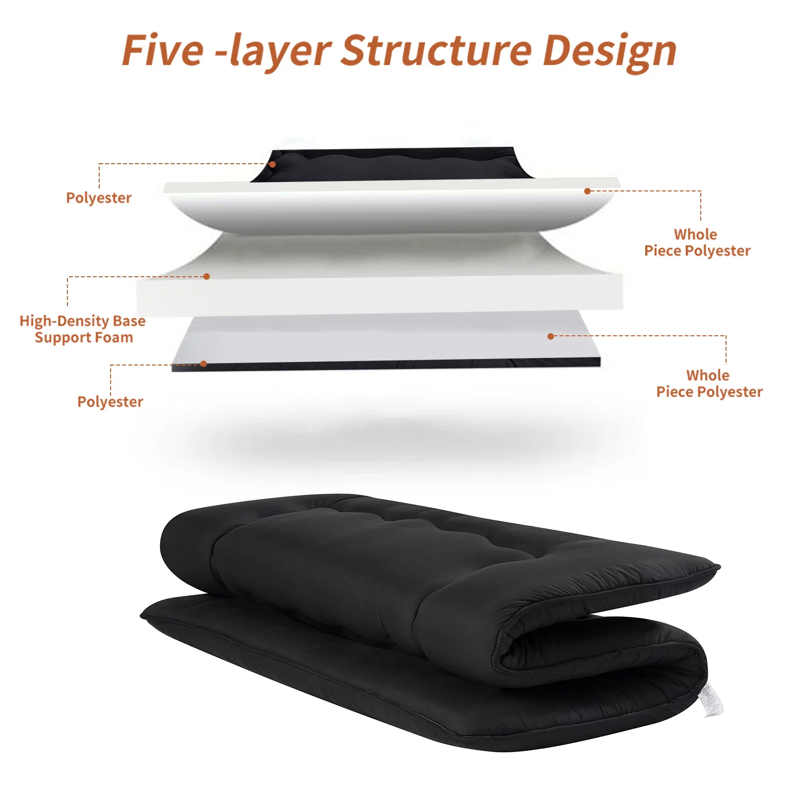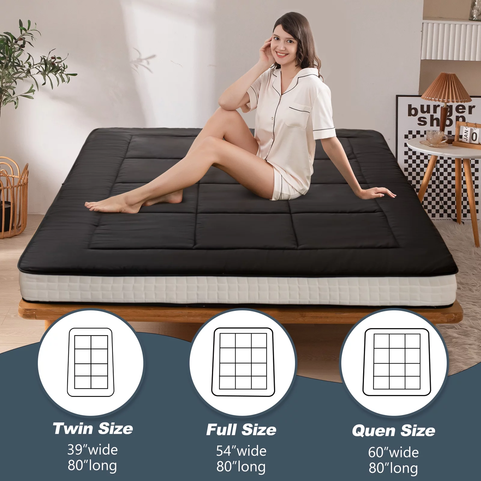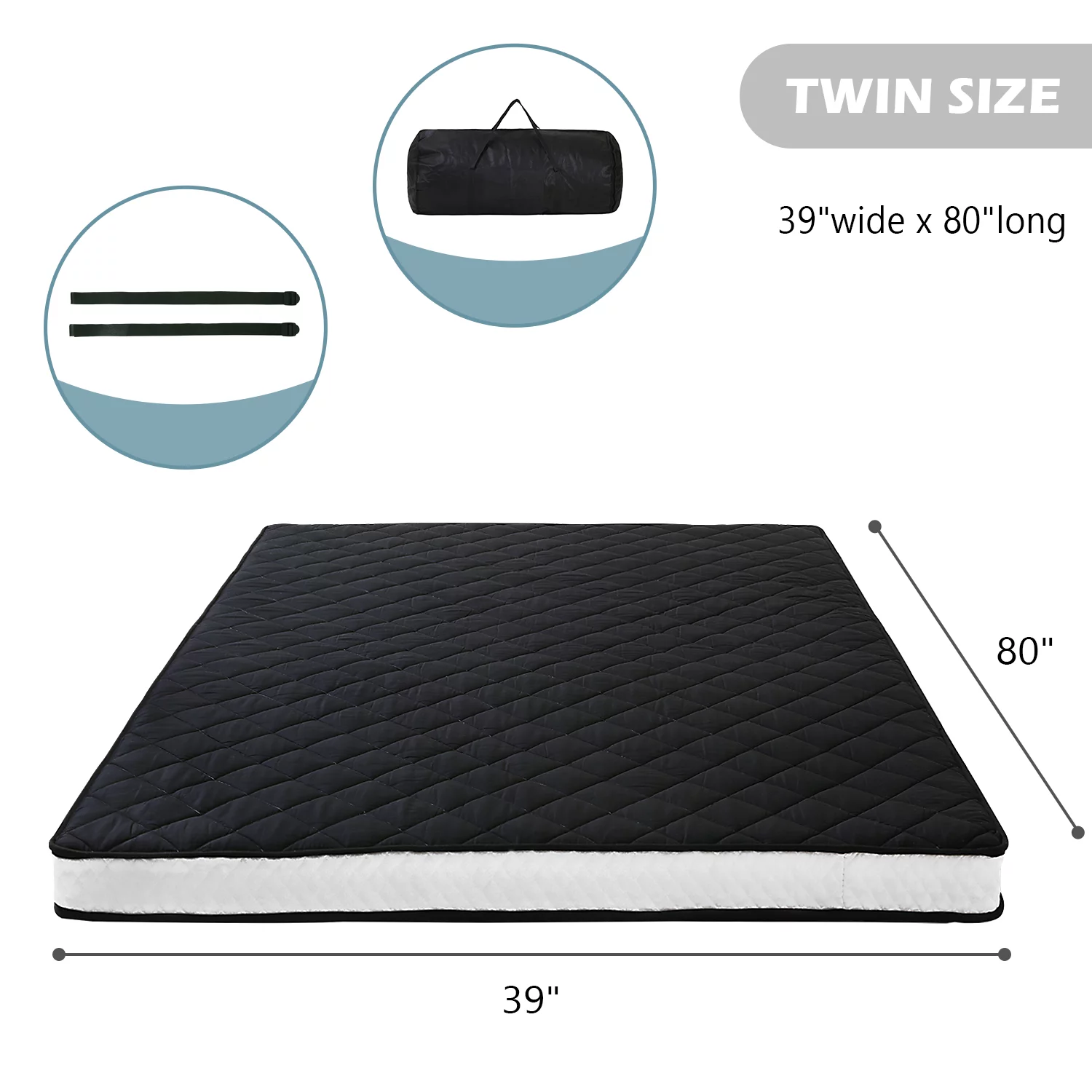 Futon Mattress Japanese Floor Mattress Thicken Futon Sleeping Pad for Guest,Lounger and Tavel,Black,Twin Size