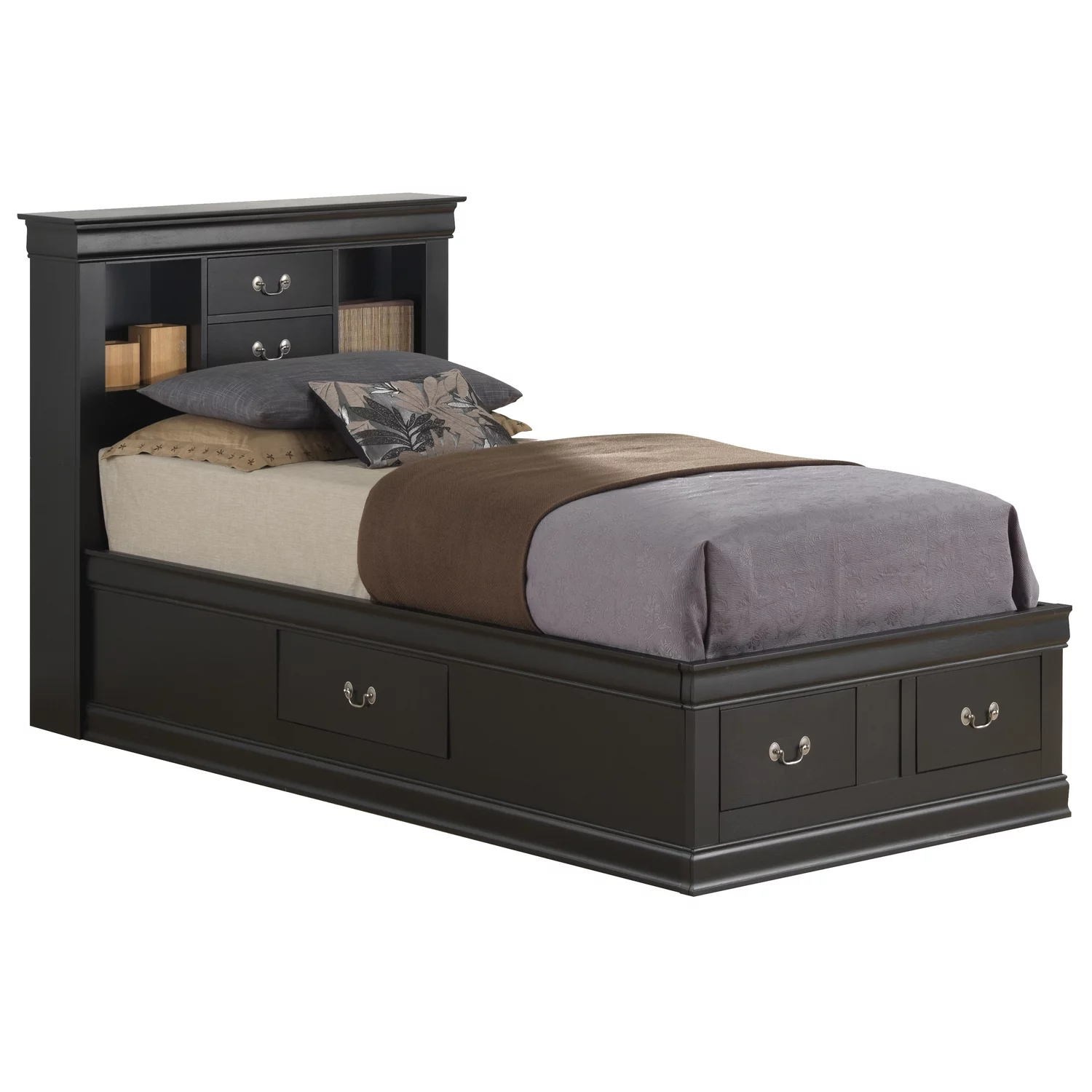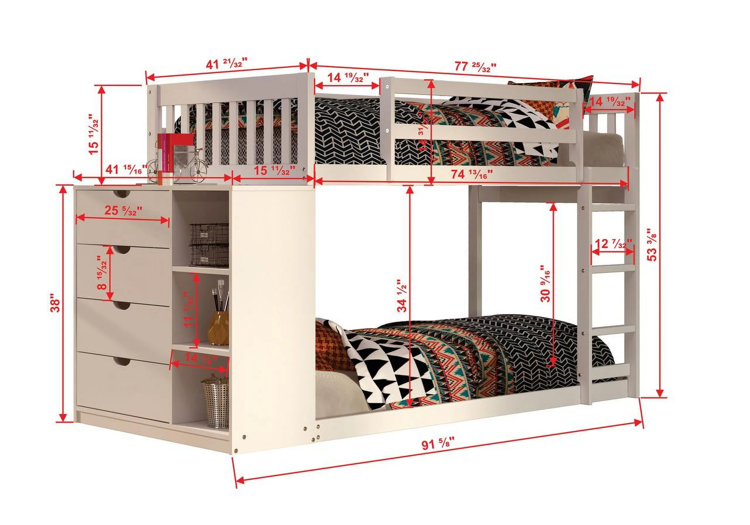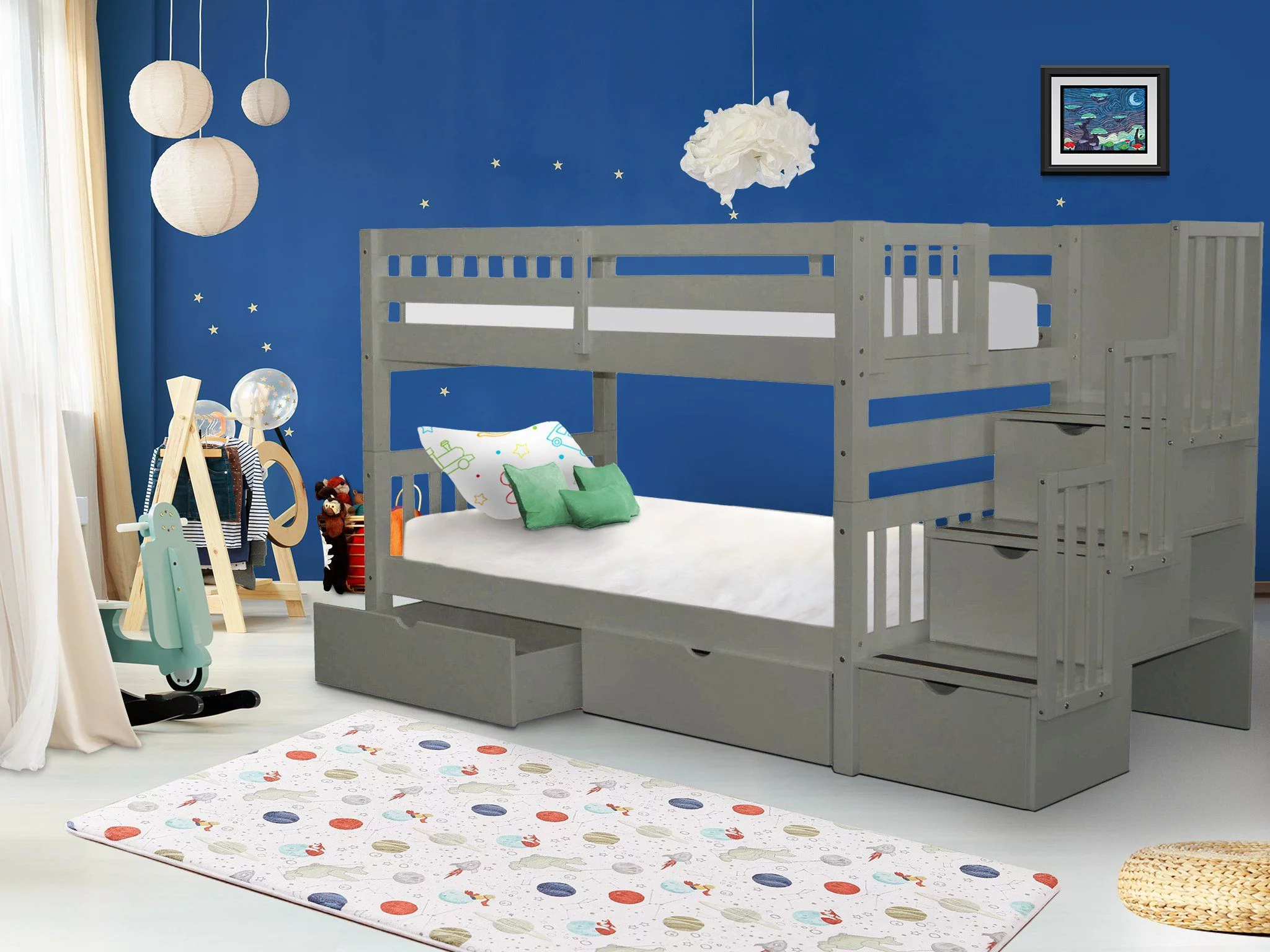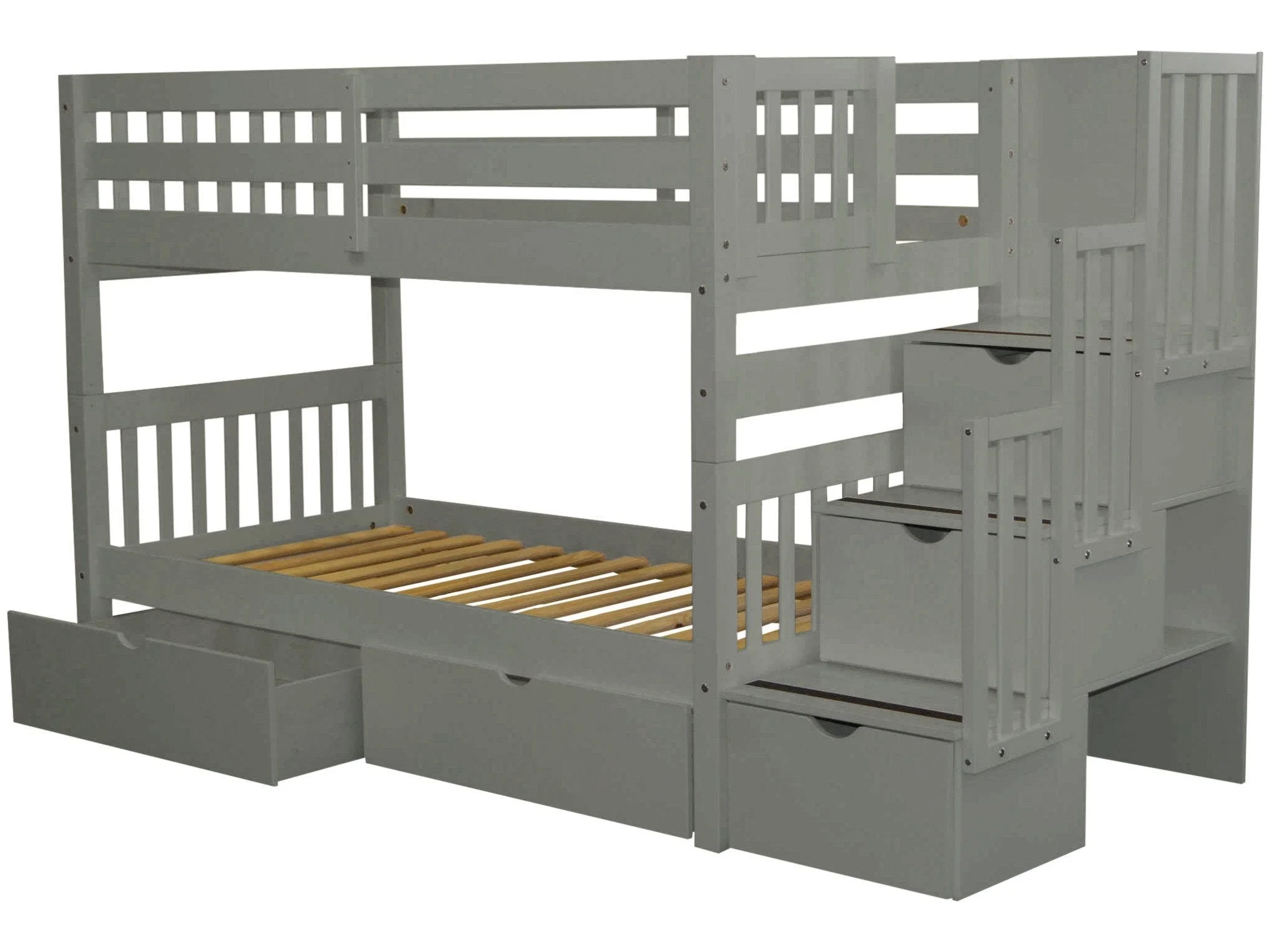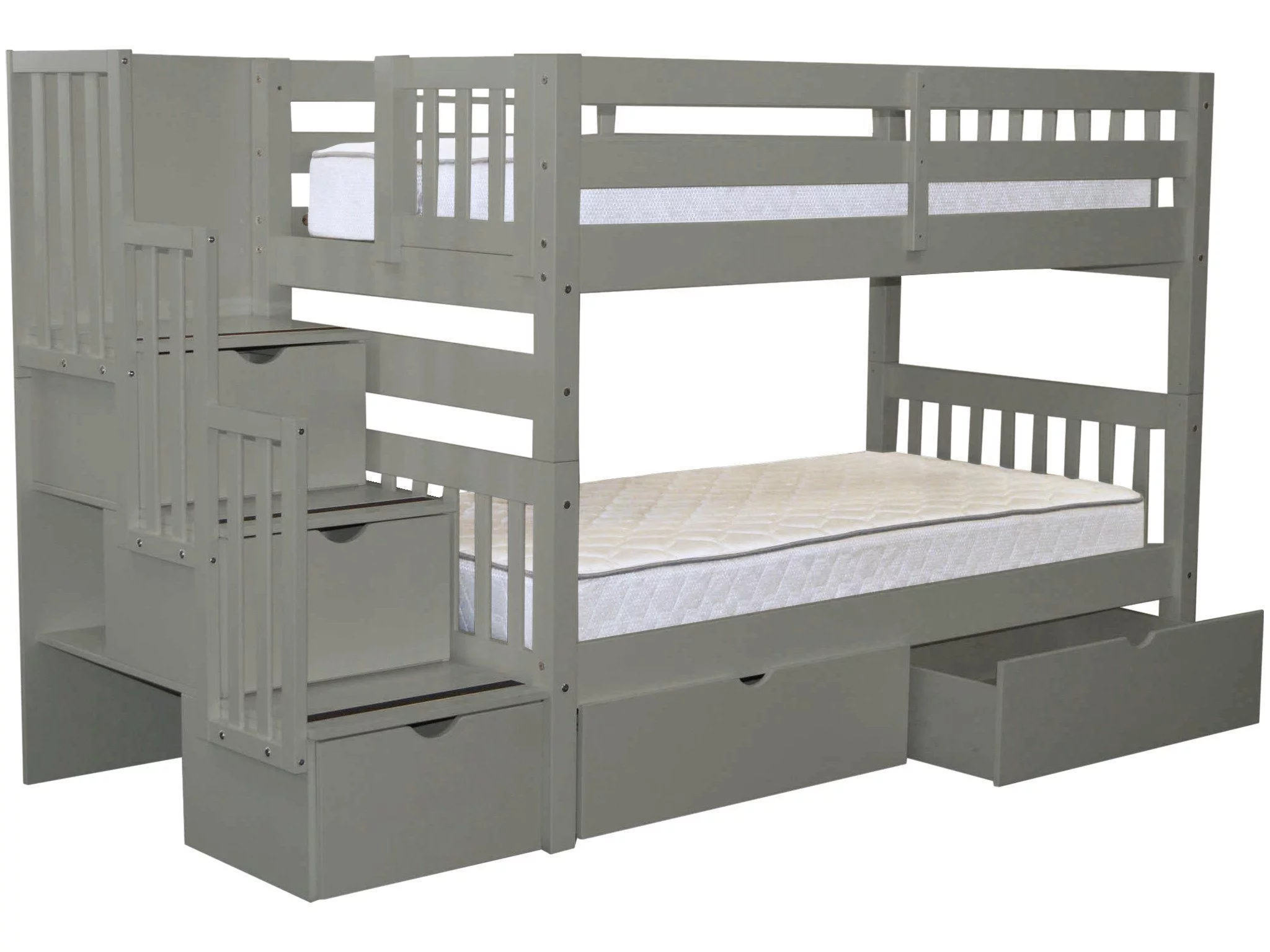 Bedz King Stairway Bunk Beds Twin over Twin with 3 Drawers in the Steps and 2 Under Bed Drawers, Gray