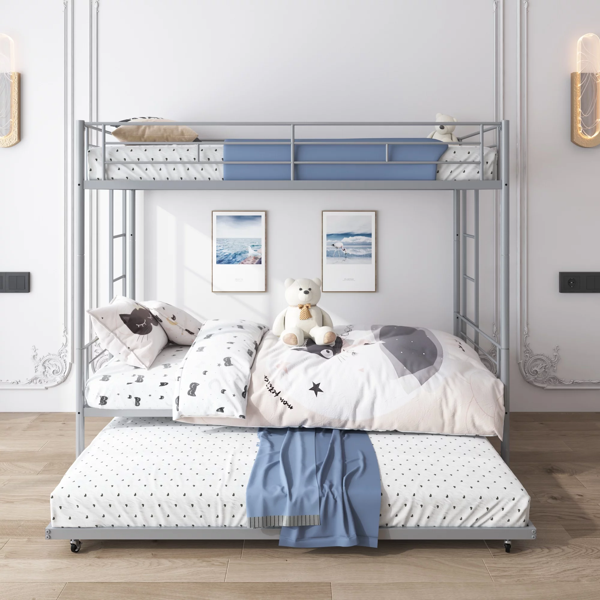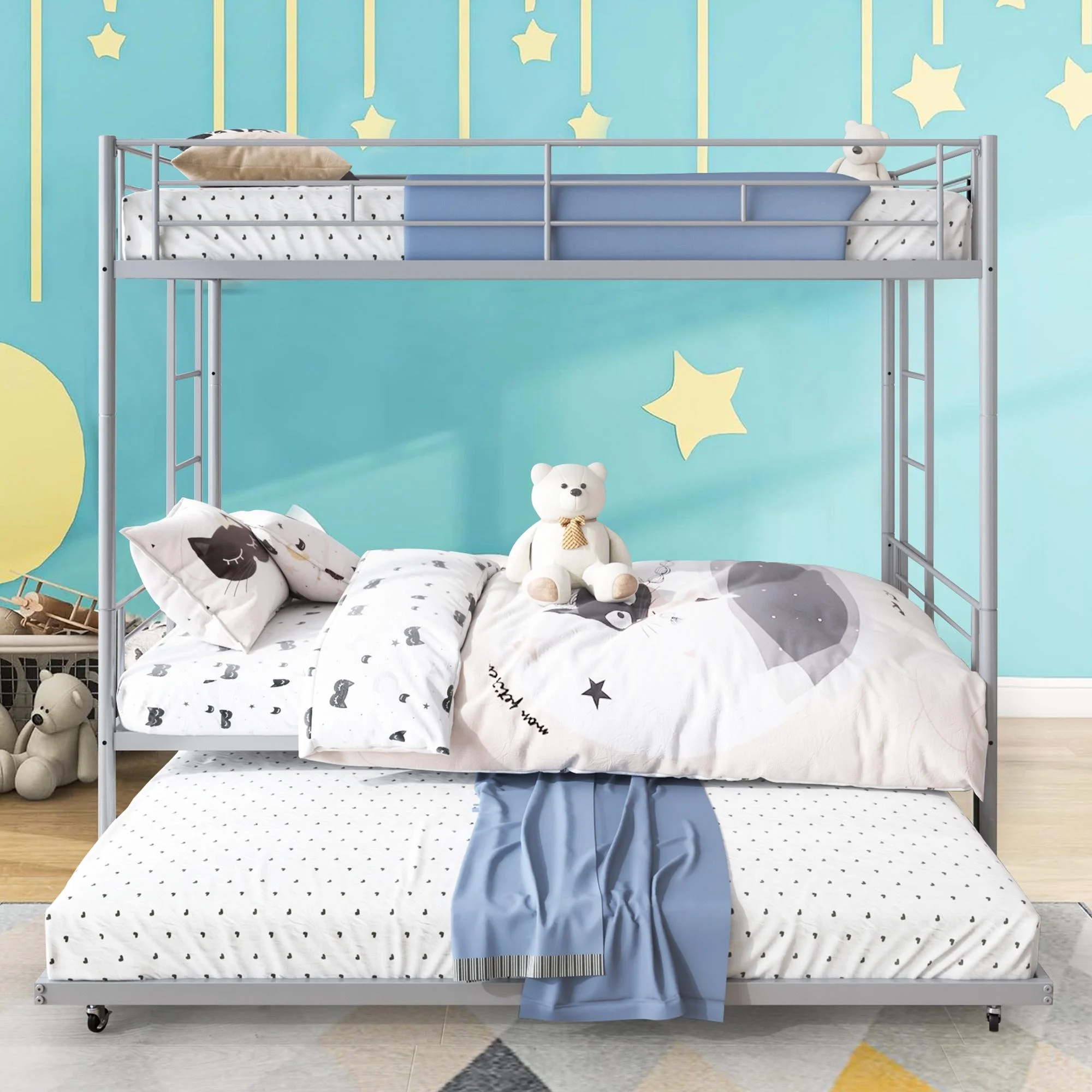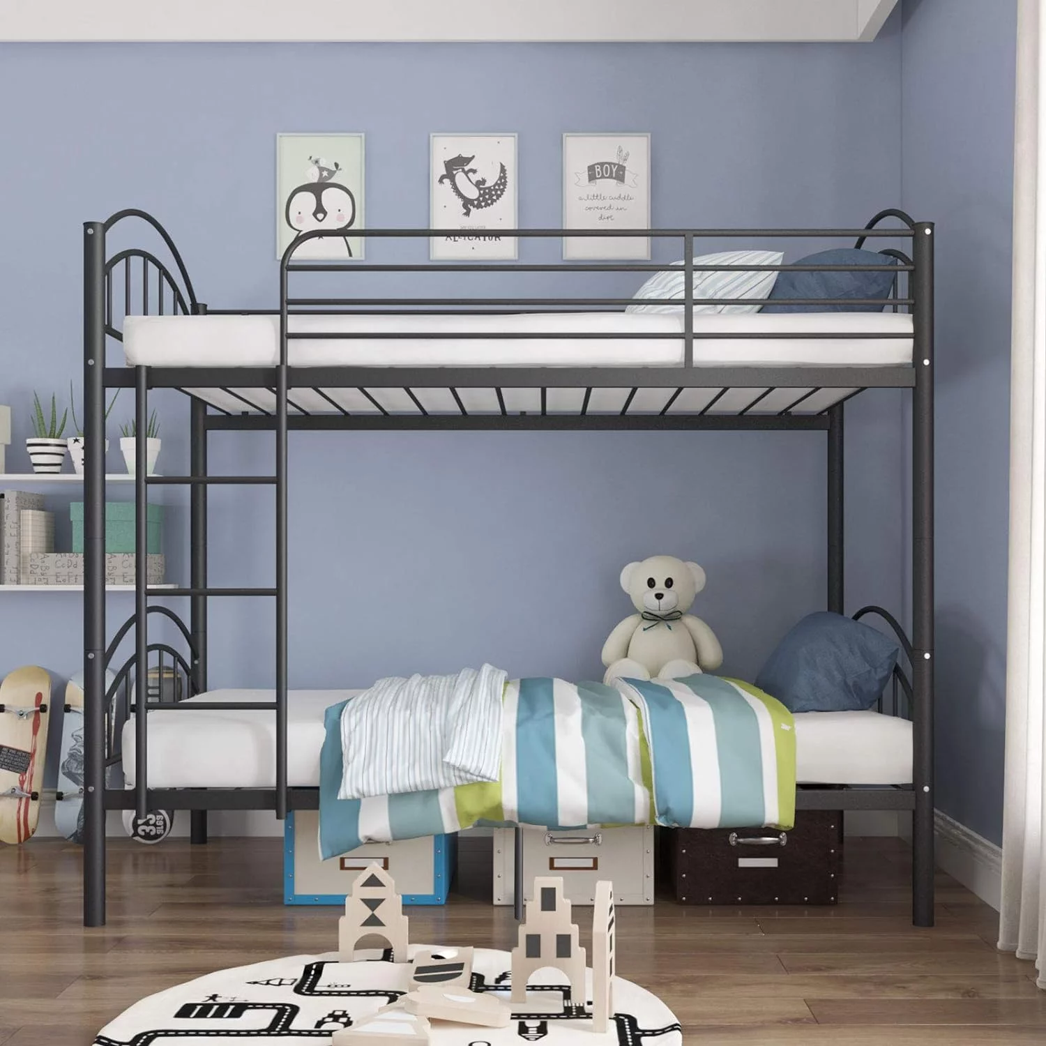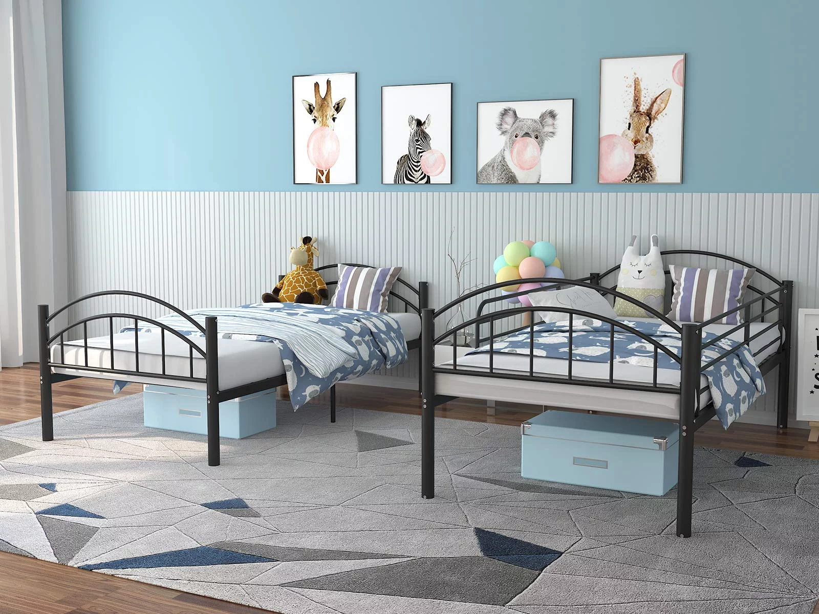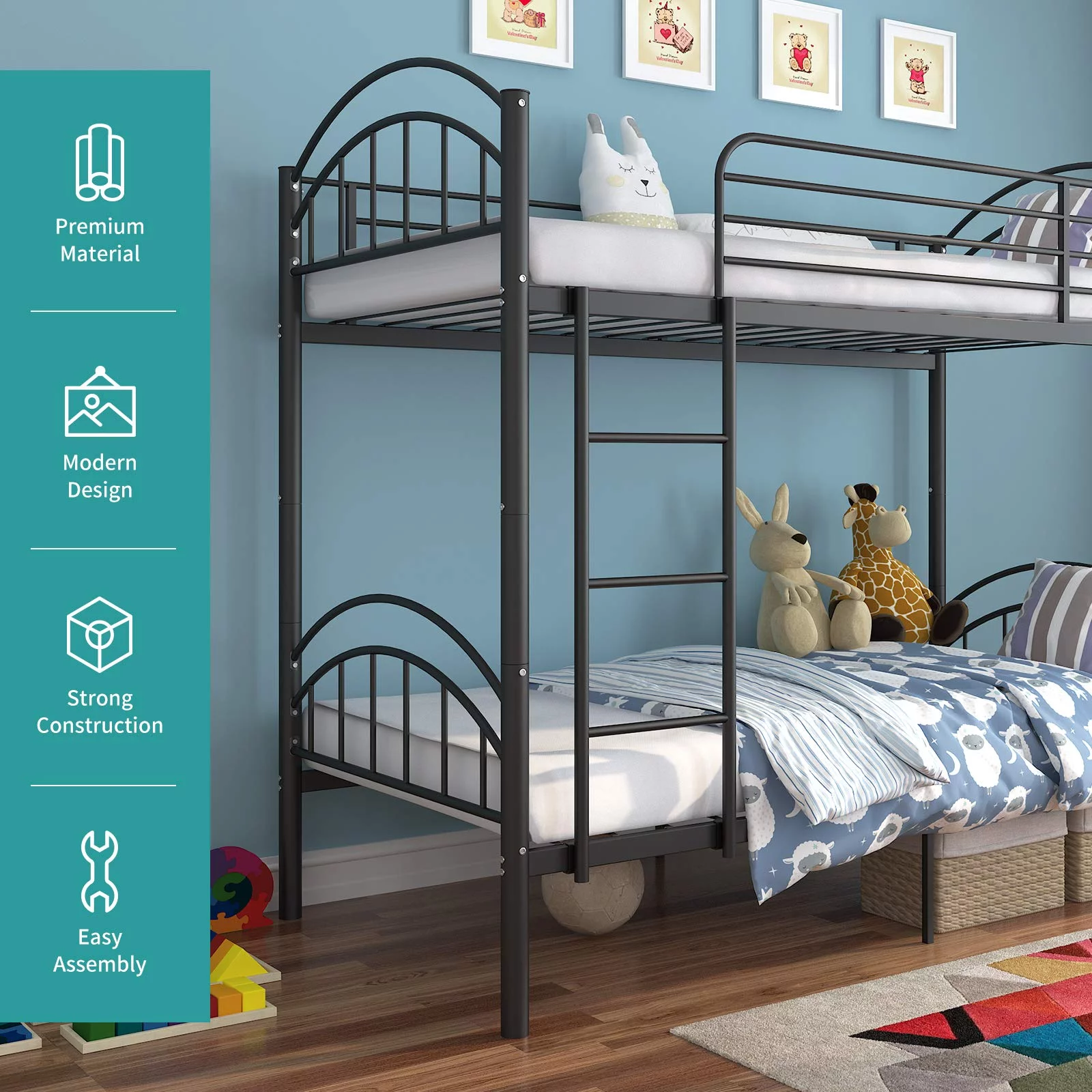 Ktaxon Twin Over Twin Metal Bunk Bed, Sturdy Frame with Metal Slats,White