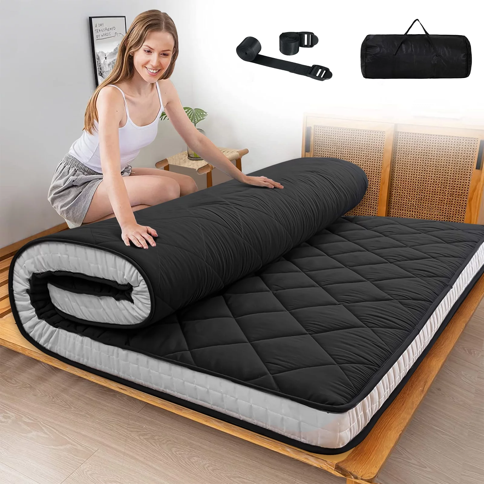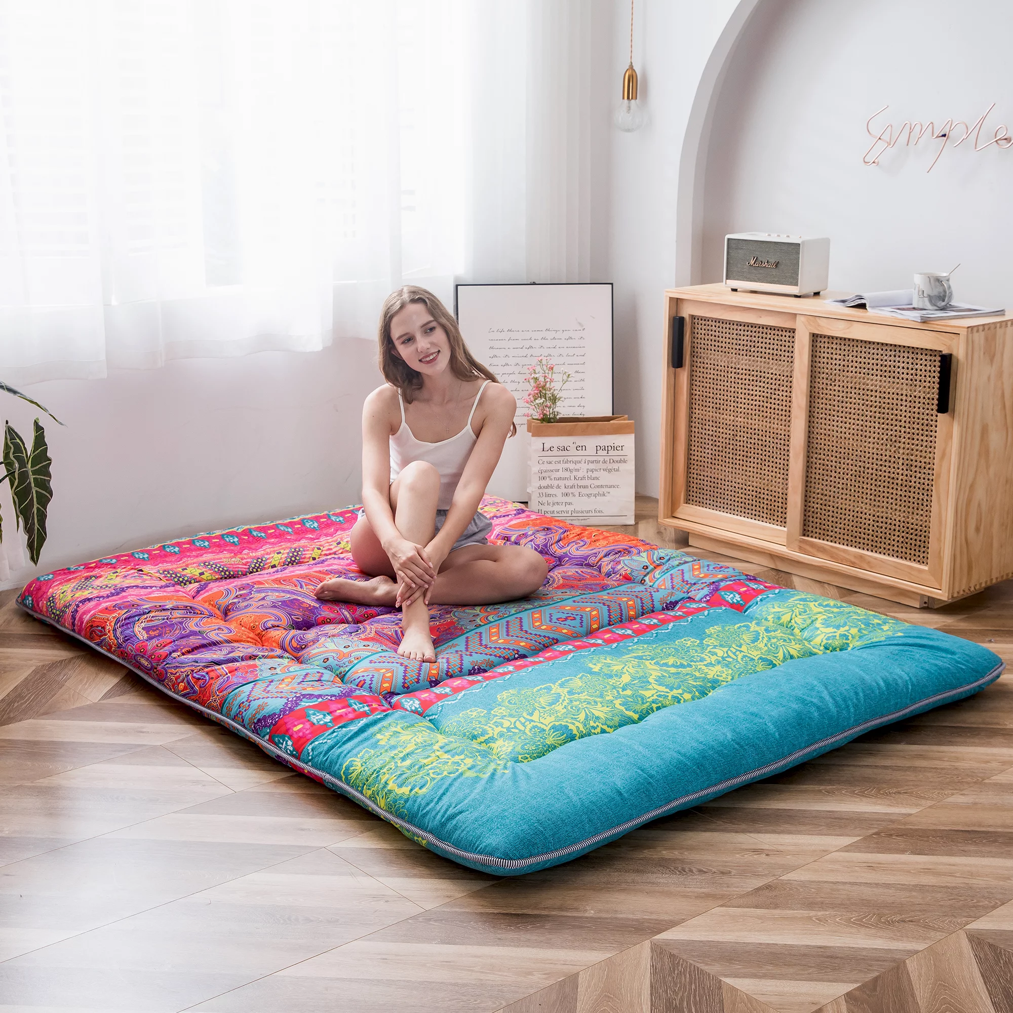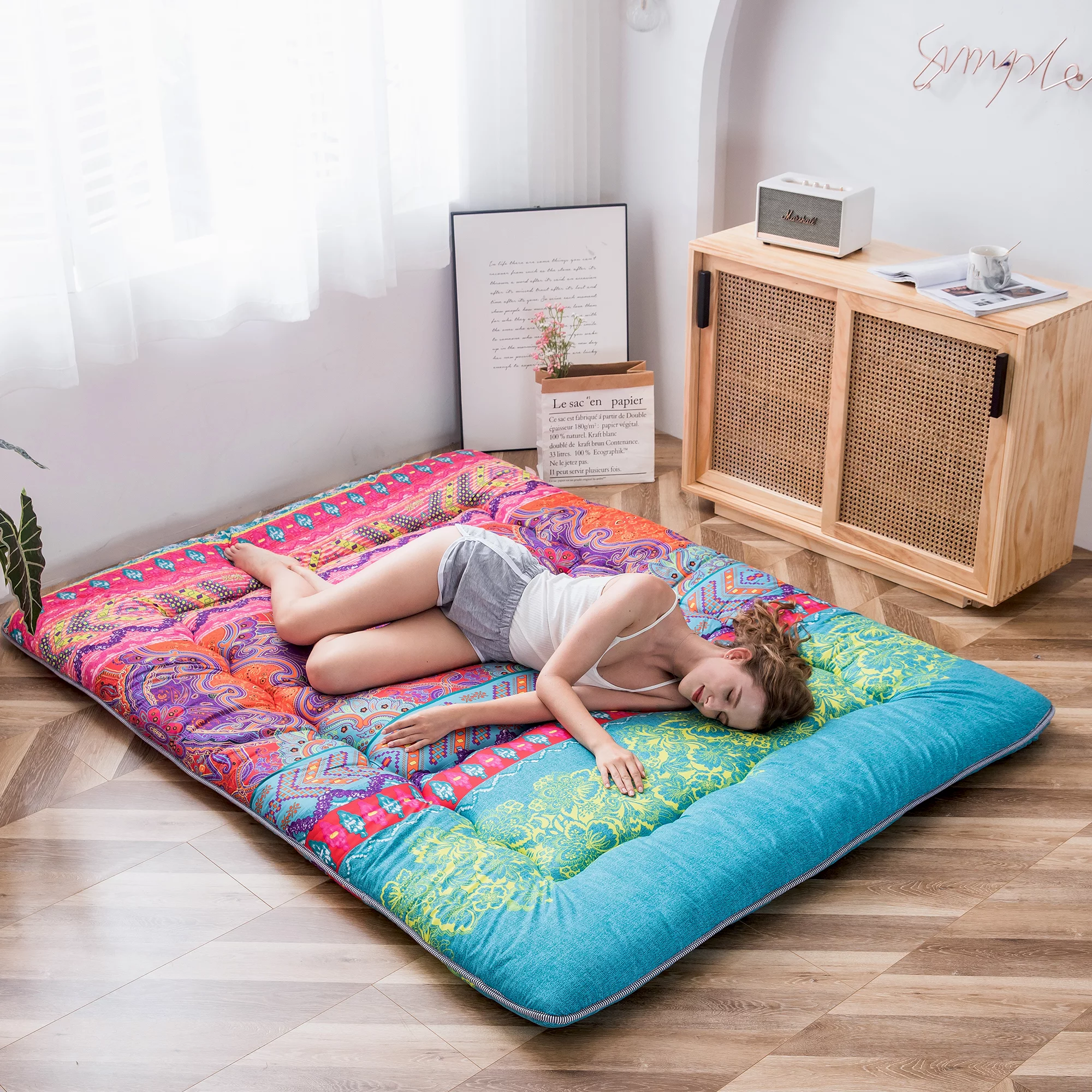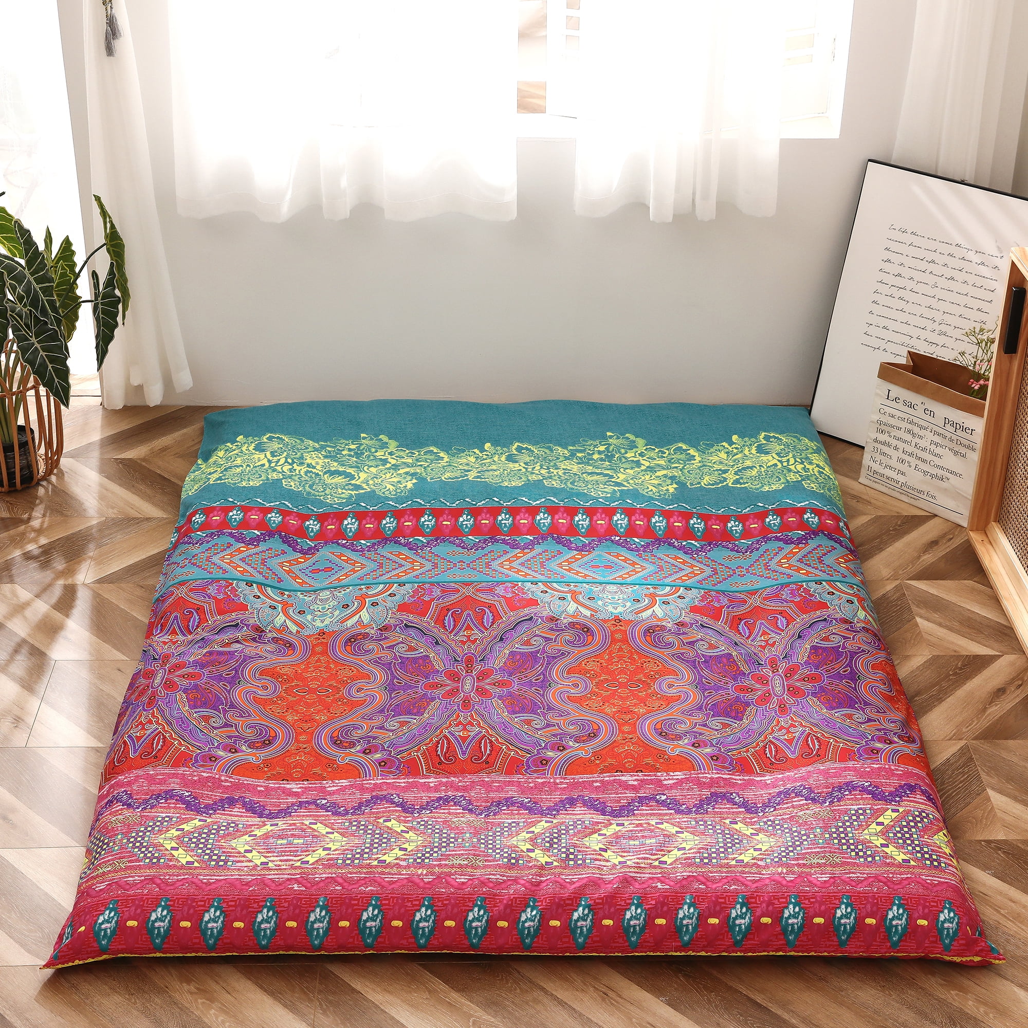 Bohemian Retro Floor Mattress Japanese Style Futon Mattress Portable Camping Mattress Sleeping Pad Queen