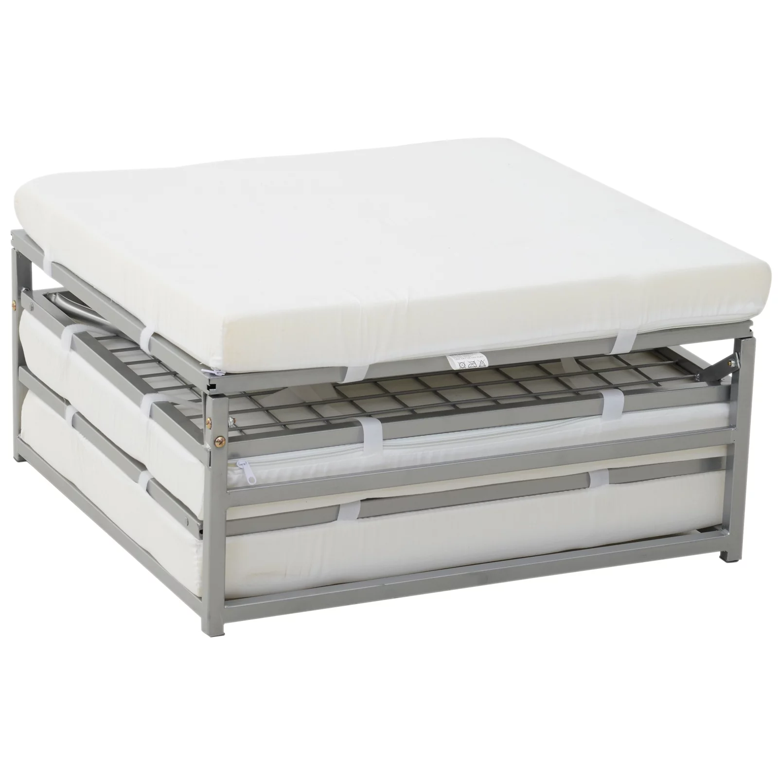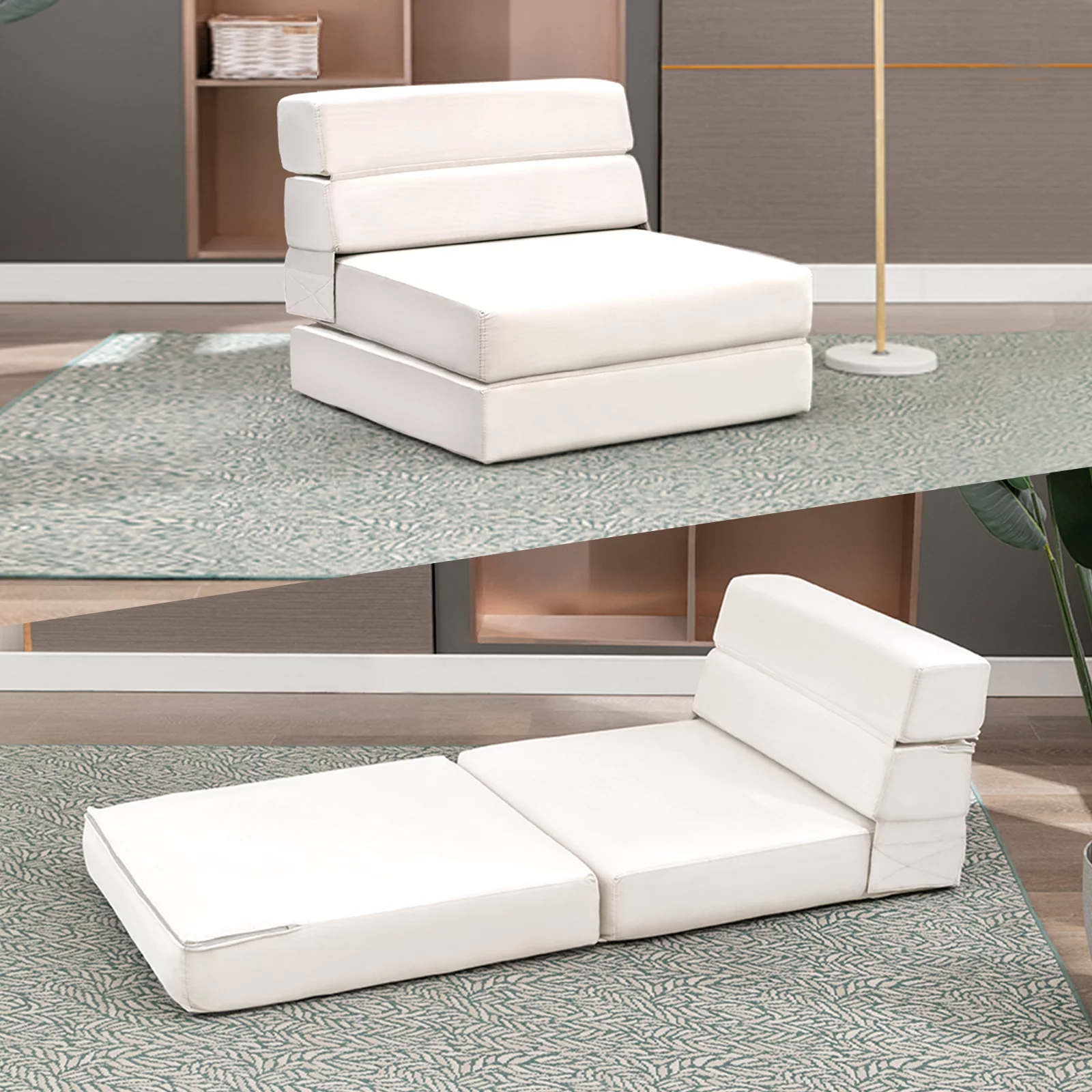 Homfa Upholstered Sofa Bed Couch, Convertible Futon Sleeper Sofa with Removable Armrests and 2 Cup Holders, Cream White