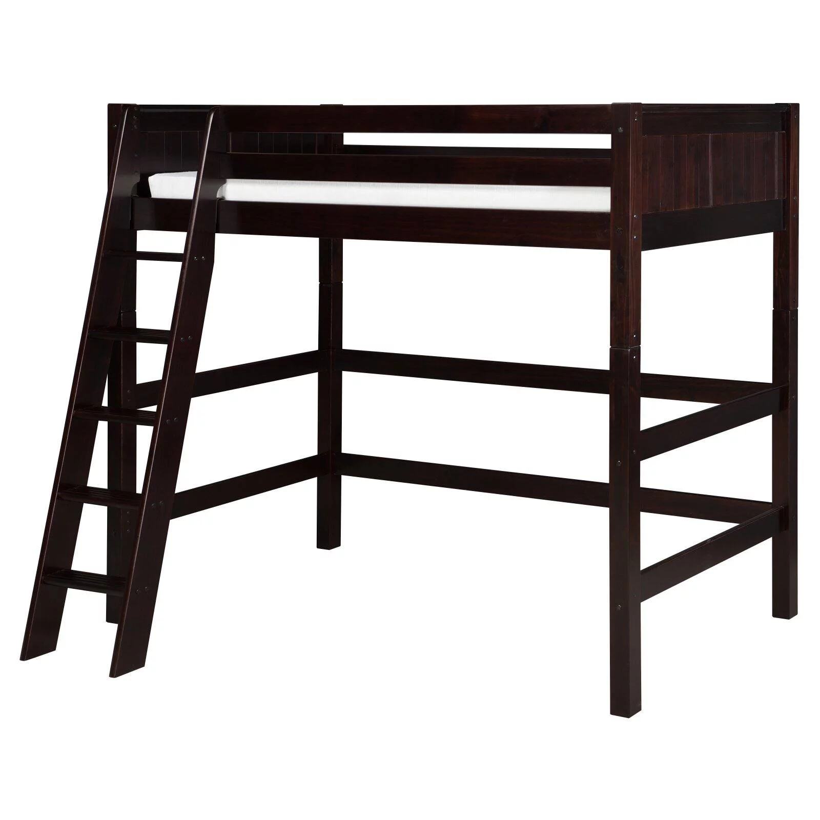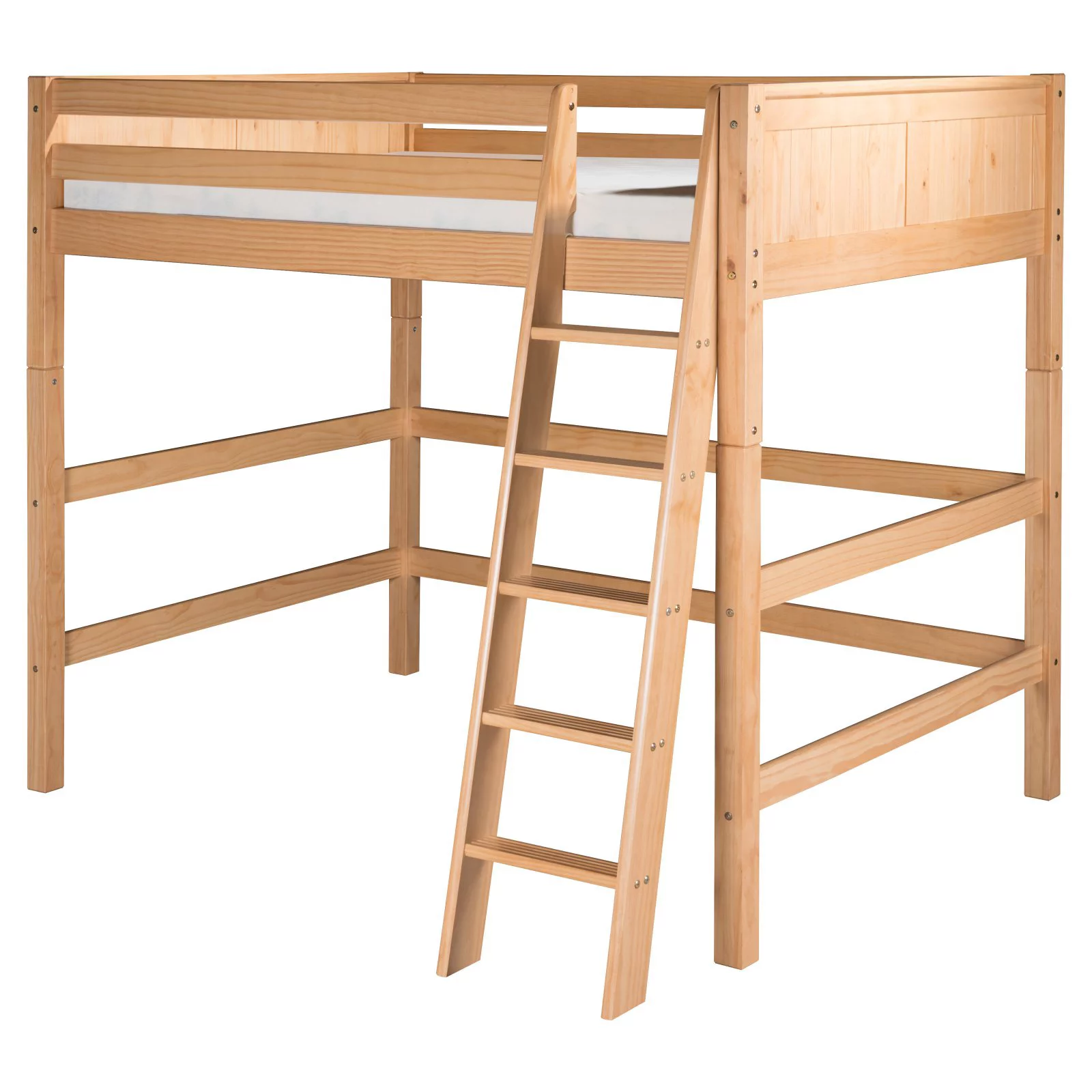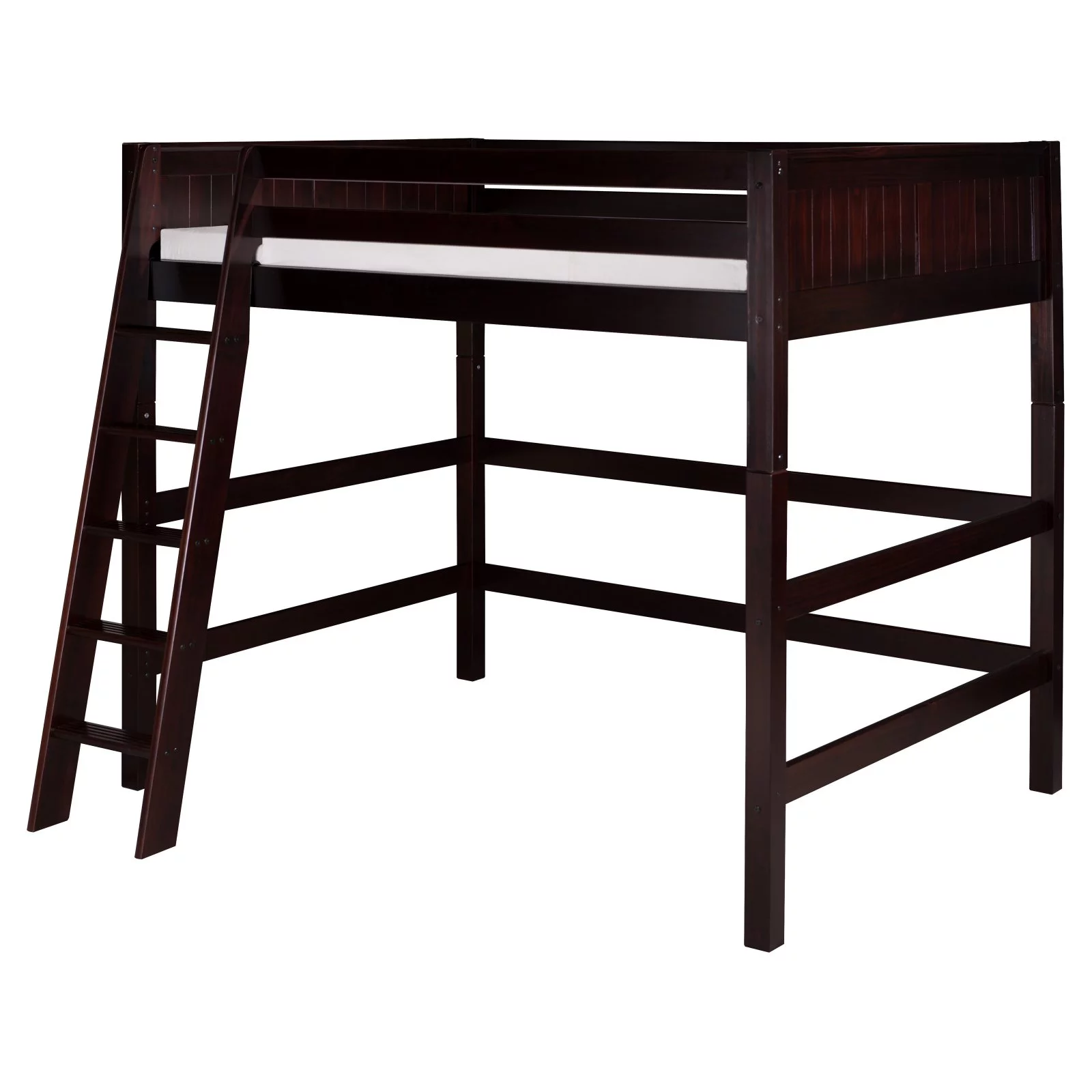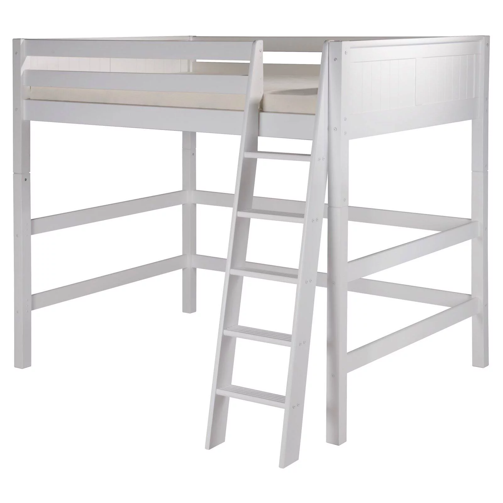 Max & Lily Solid Wood Full Size High Loft Bed with Ladder on End for Kids, White