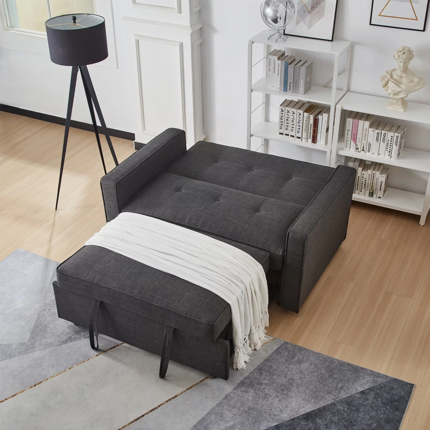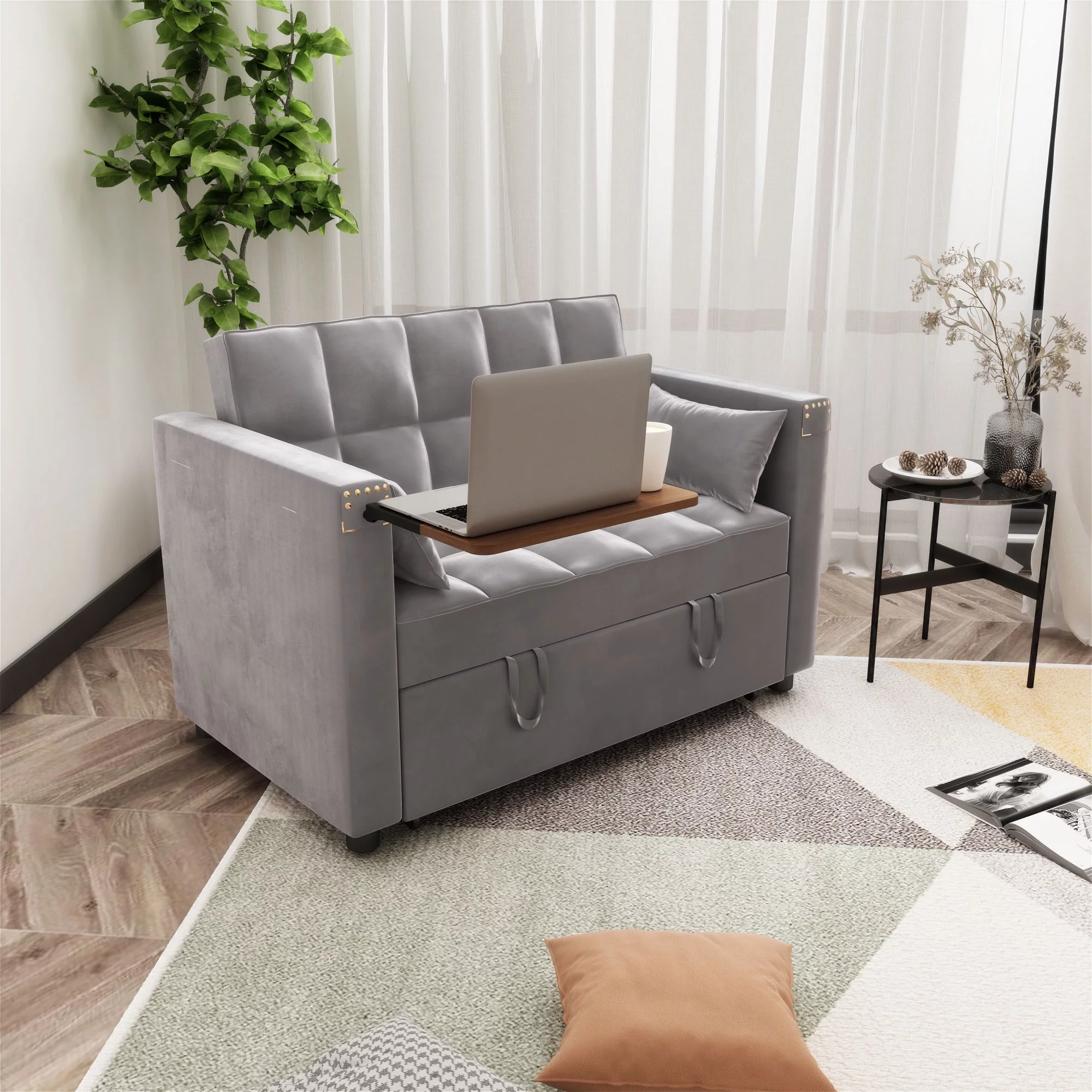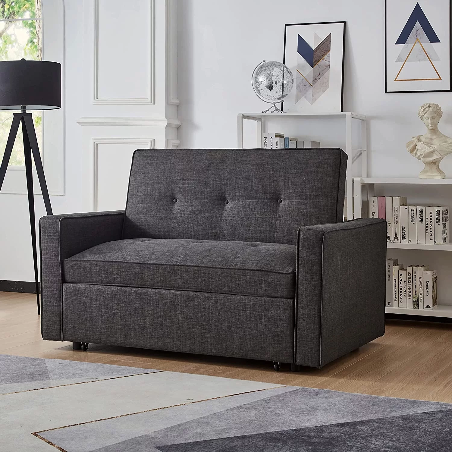 Convertible Sofa Bed, 3 in 1 Sleeper Sofa Couch Bed, 58” Love Seat,Dark Gray