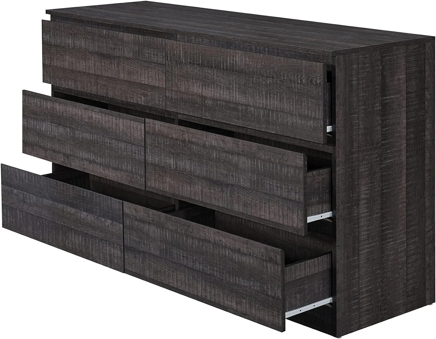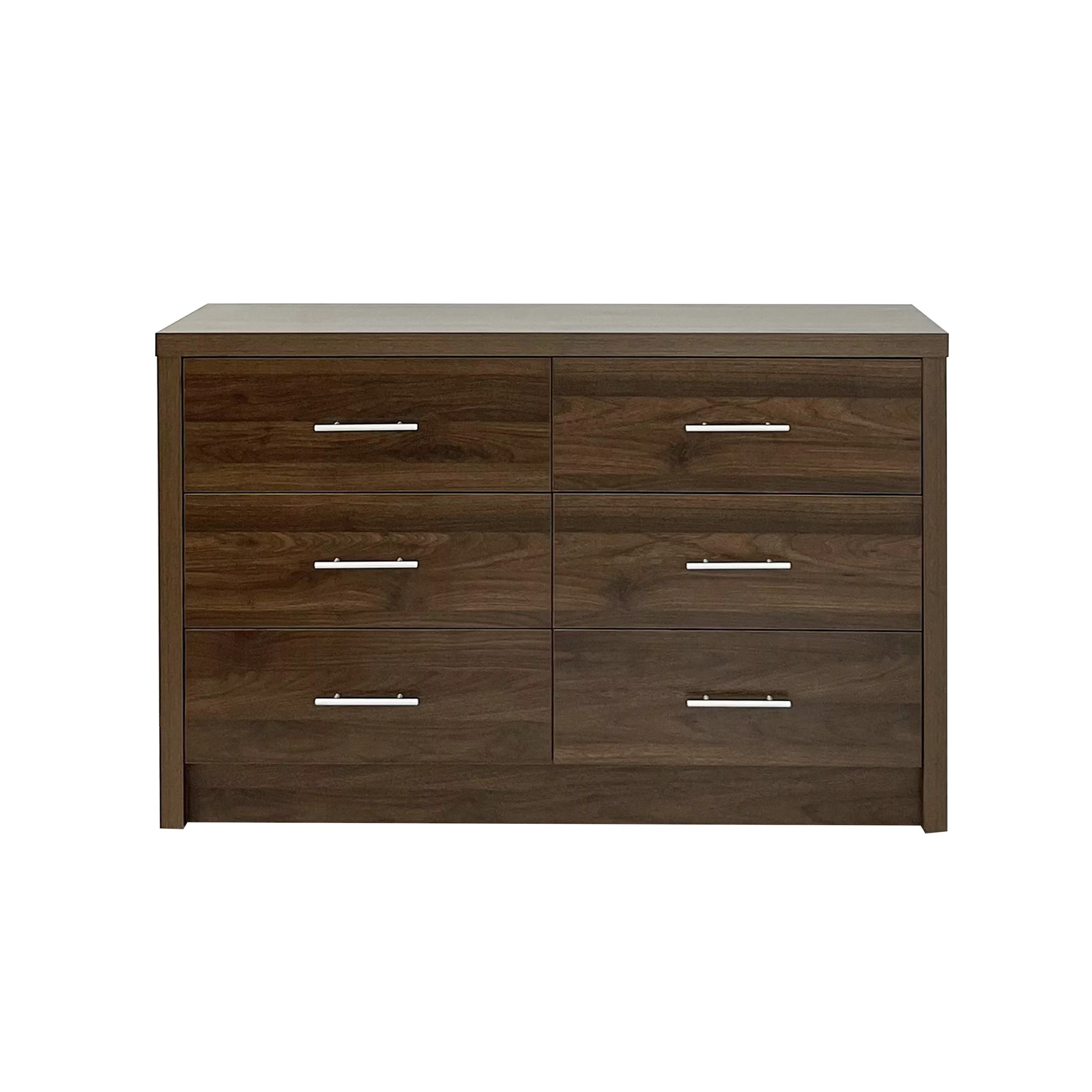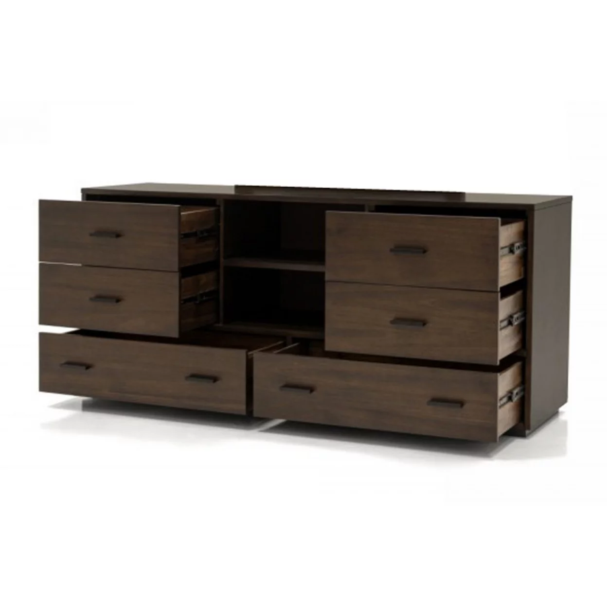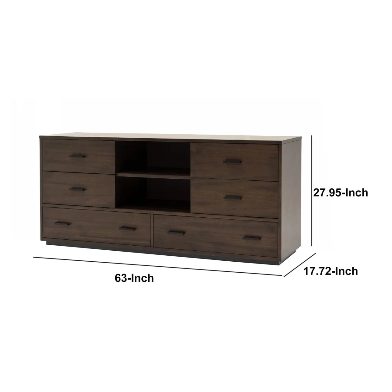Noe 63 Inch Solid Wood Dresser, 6 Drawers, 1 Shelf, Dark Walnut- Saltoro Sherpi