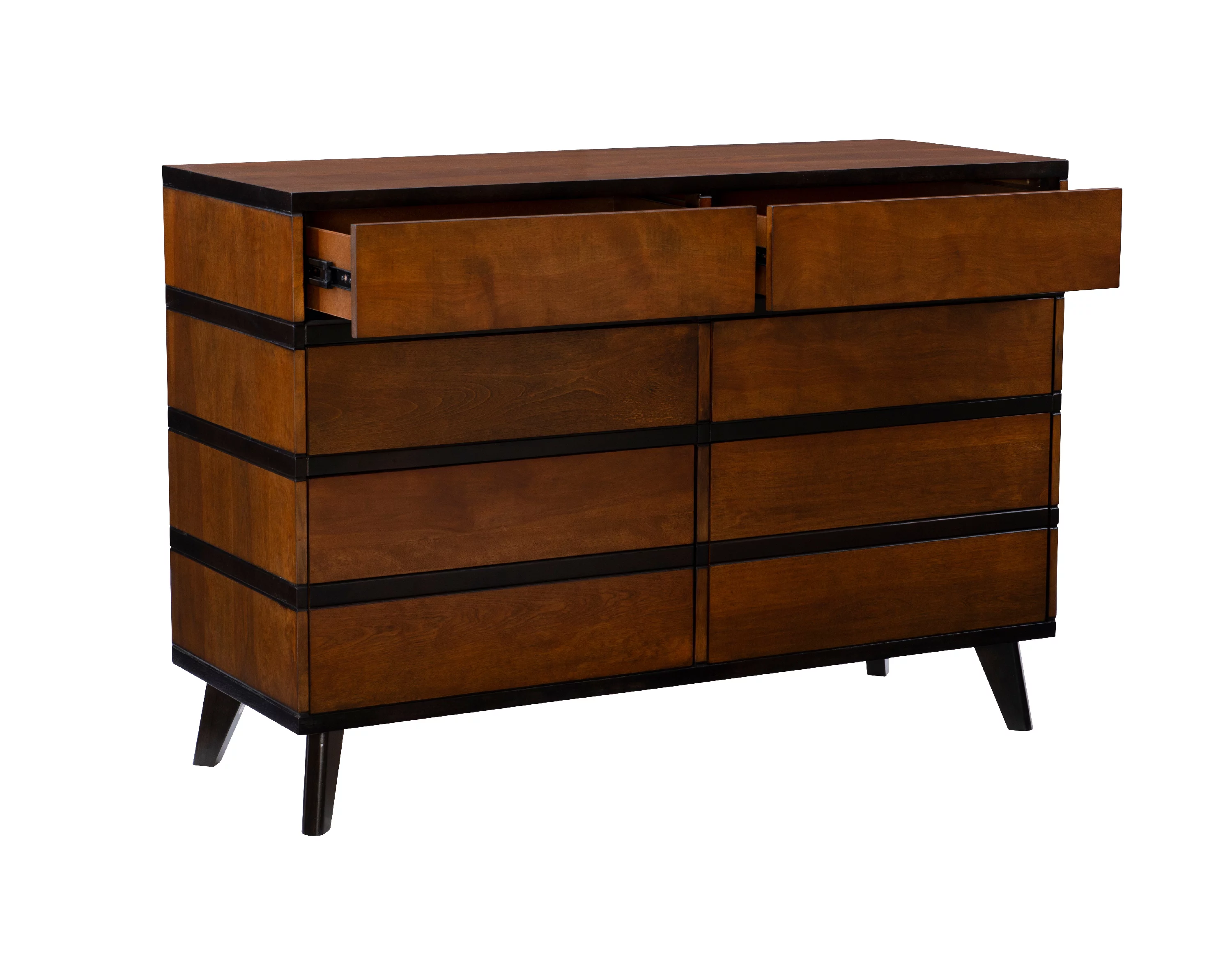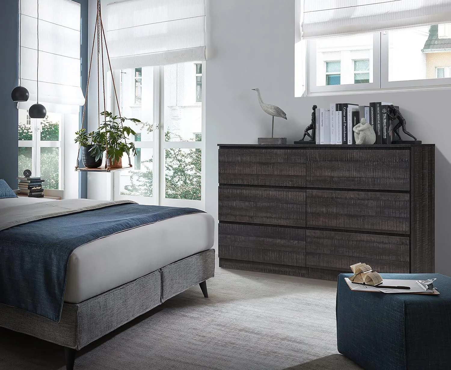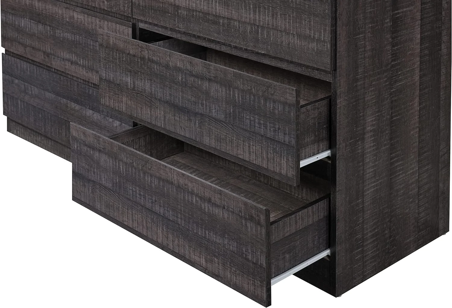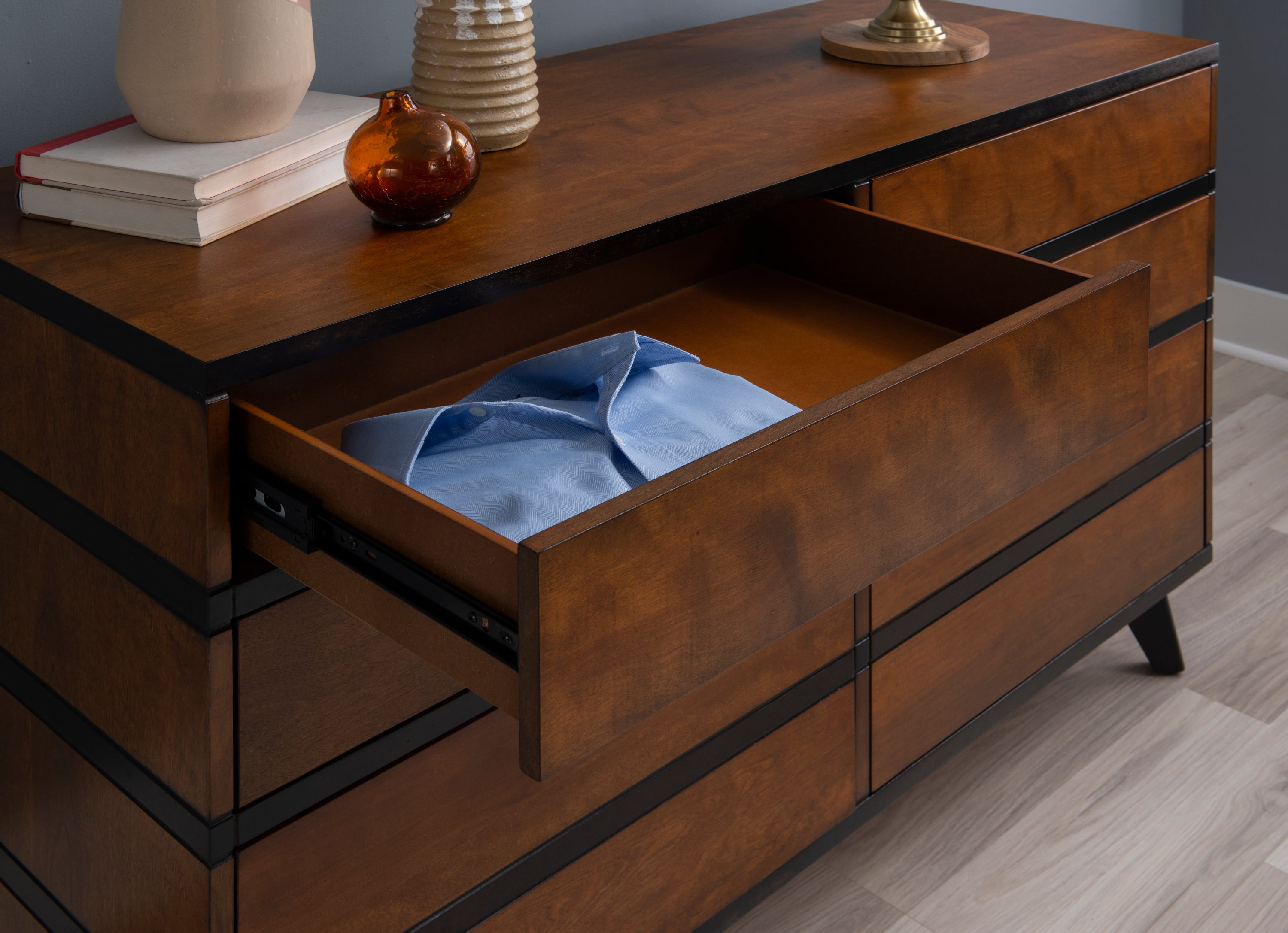 Noe 63 Inch Solid Wood Dresser, 6 Drawers, 1 Shelf, Dark Walnut- Saltoro Sherpi