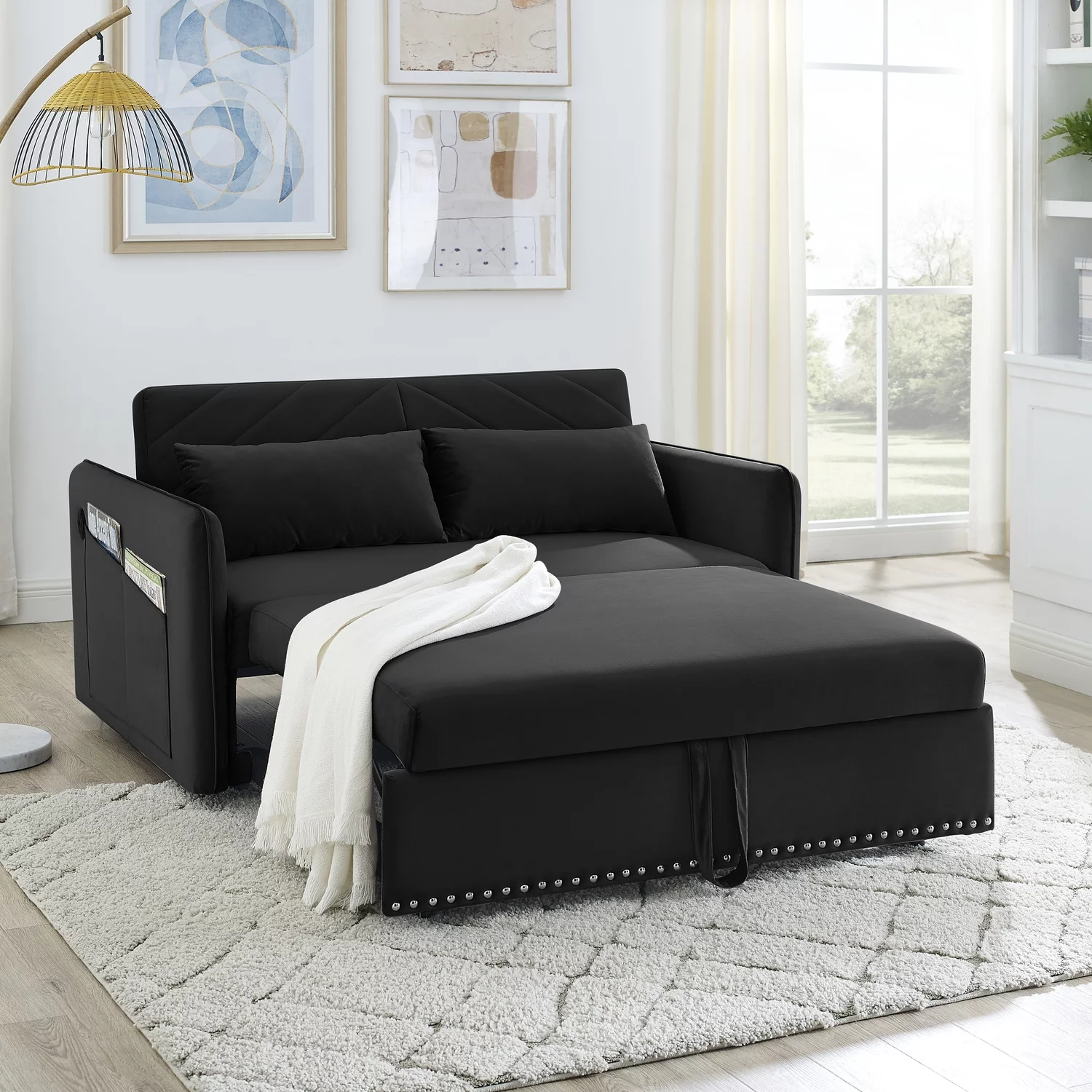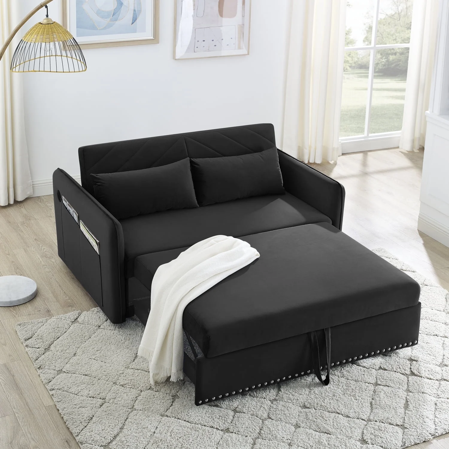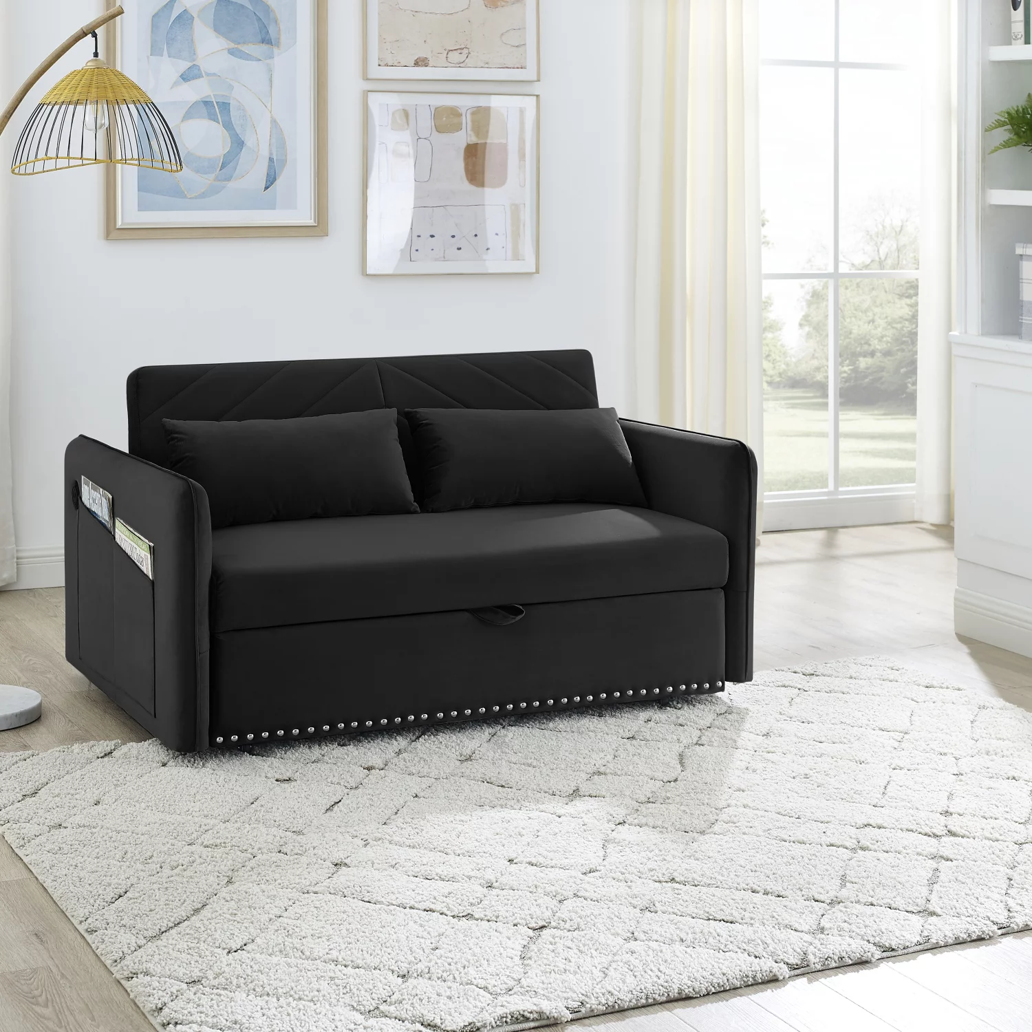 Airdown Convertible Sofa Bed, Modern Sleeper Sofa Couch for Living Rooms, Spare Rooms, Offices(Brown)