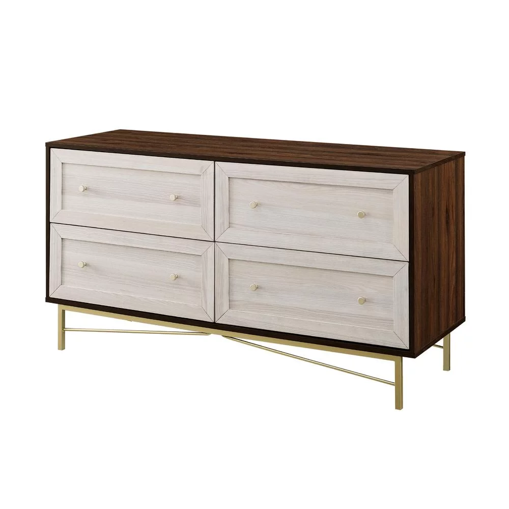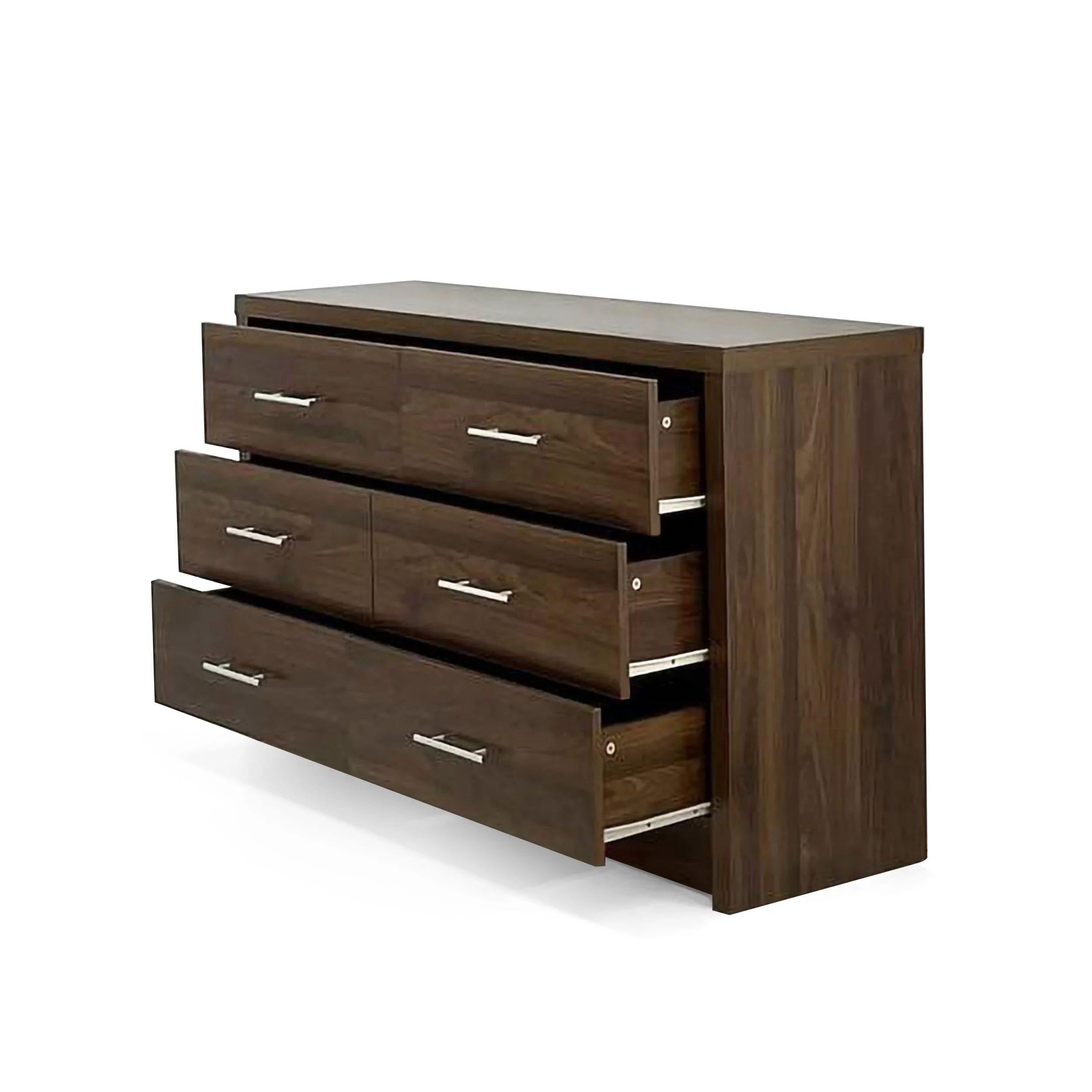 Benzara BM163644 Wooden Chest with 5 Drawers, Walnut & Espresso Brown